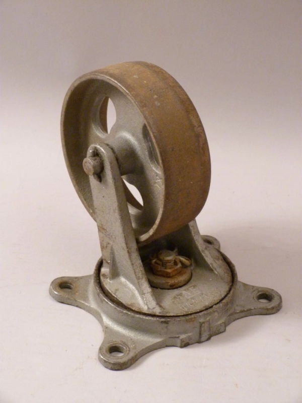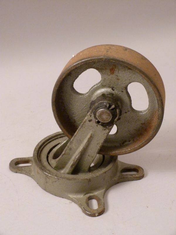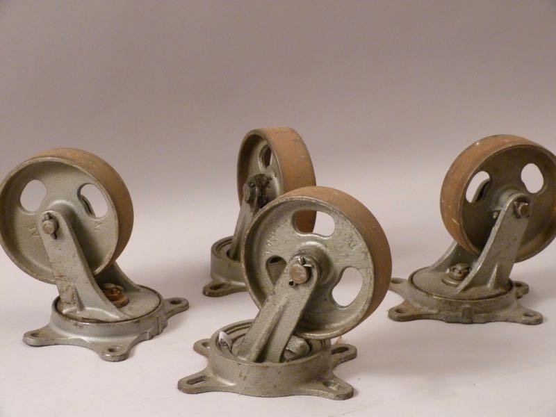 …..vier große SCHWERLAST-ROLLEN Ø 14cm….. große schwere Eisenrollen, Ø 14cm, Breite 5cm drehbar auf Kugellager Gestell 17 x 12.5cm, Gesamthöhe 20cm guter vintage Zustand verkauft/sold