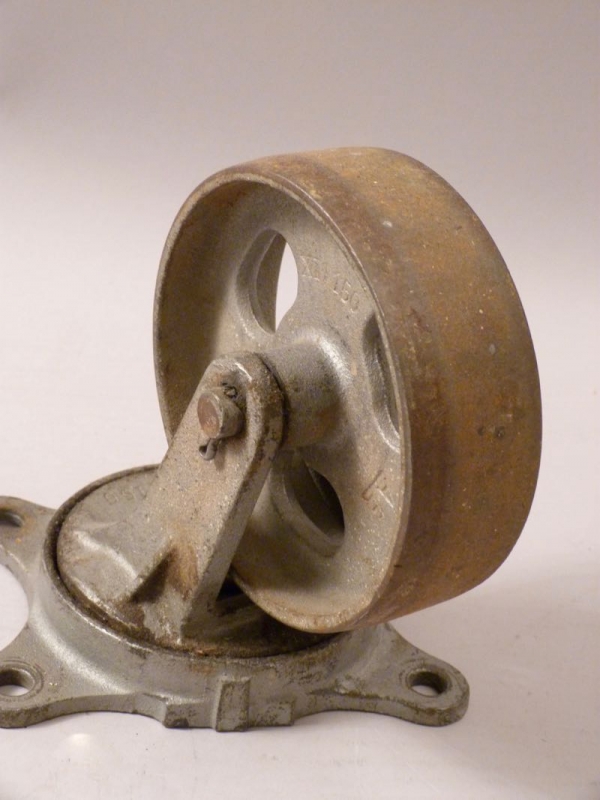 …..vier große SCHWERLAST-ROLLEN Ø 14cm….. große schwere Eisenrollen, Ø 14cm, Breite 5cm drehbar auf Kugellager Gestell 17 x 12.5cm, Gesamthöhe 20cm guter vintage Zustand verkauft/sold
