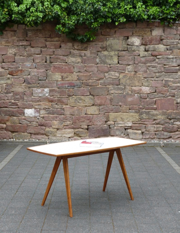 …..vintage FIFTIES TISCH, 50er Jahre….. Holzgestell, Platte resopalbeschichtet HxBxT: 59 x 125 x 55cm guter vintage Zustand verkauft/sold