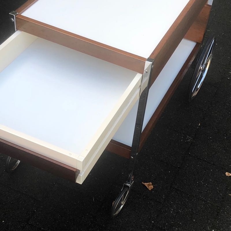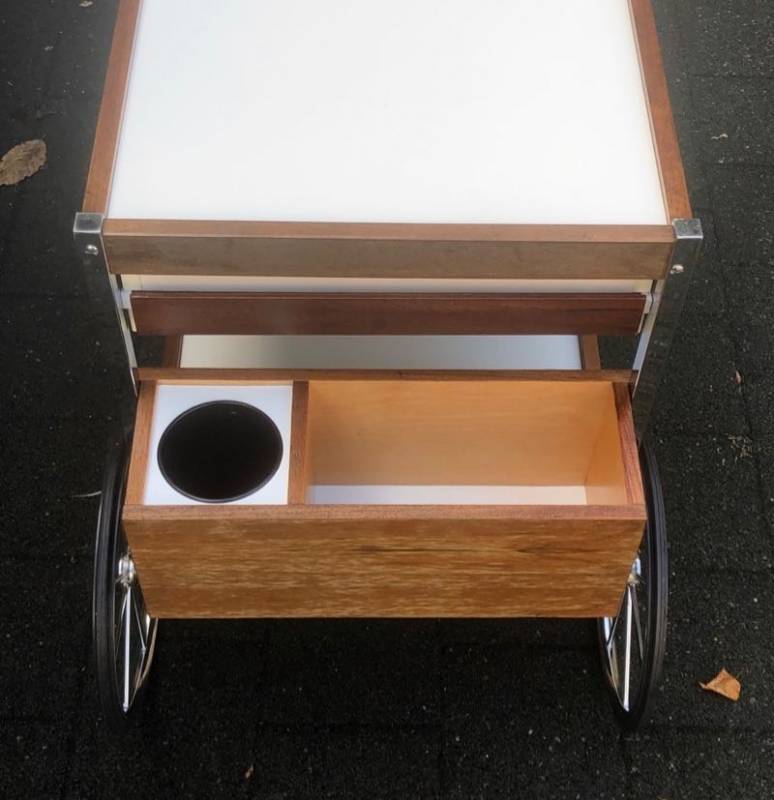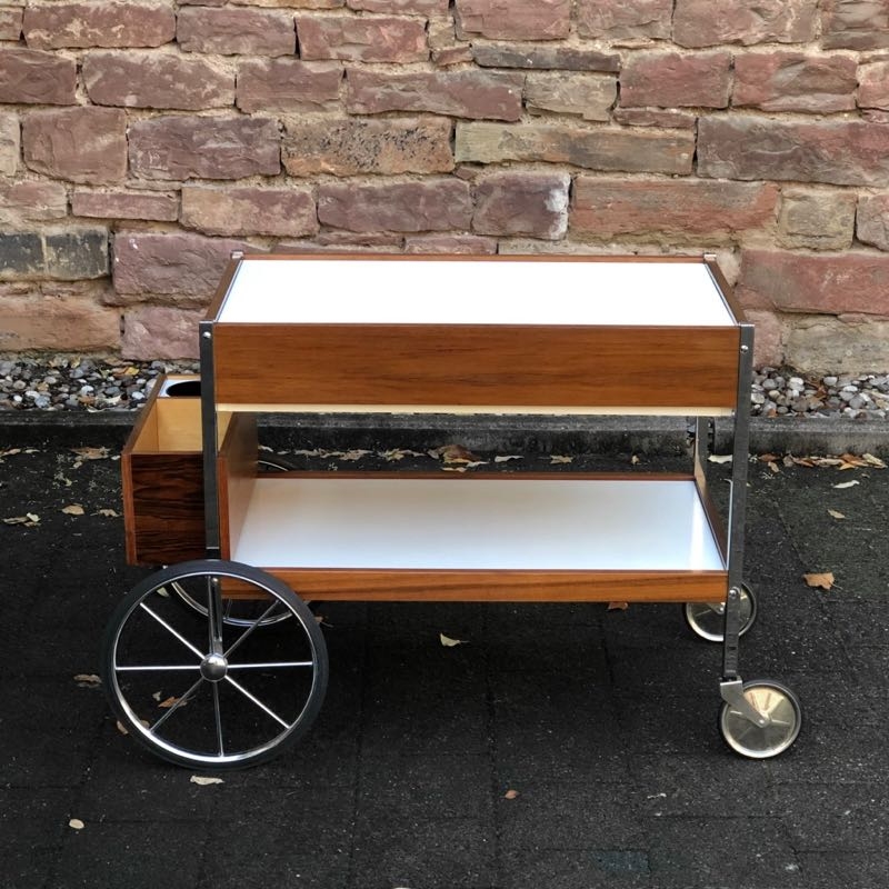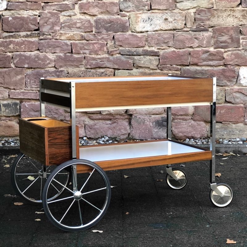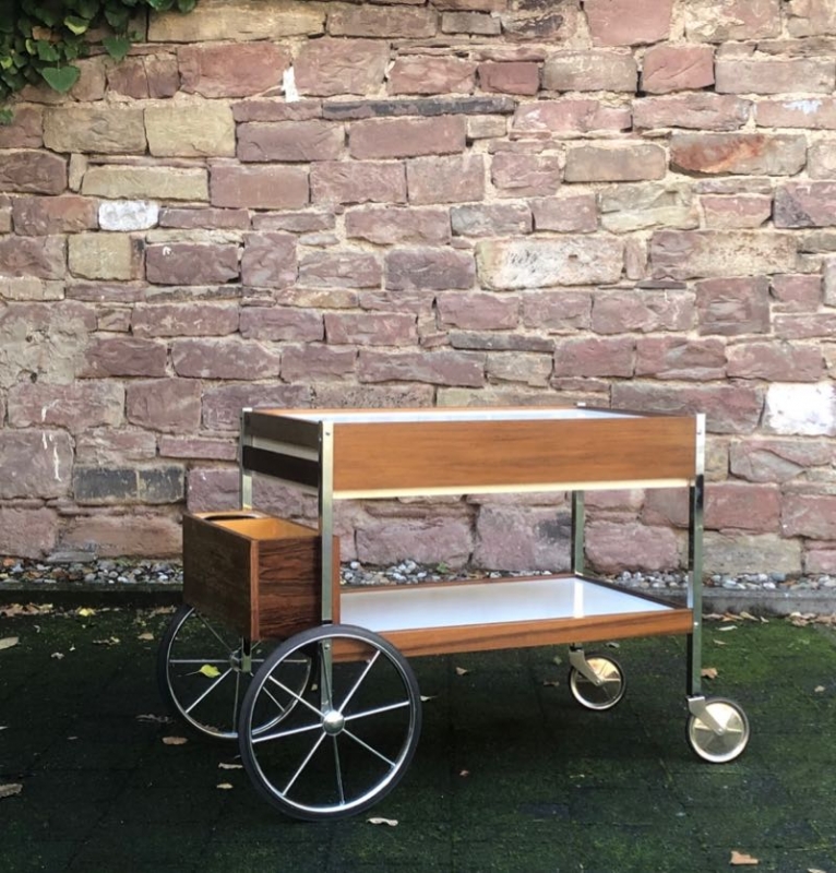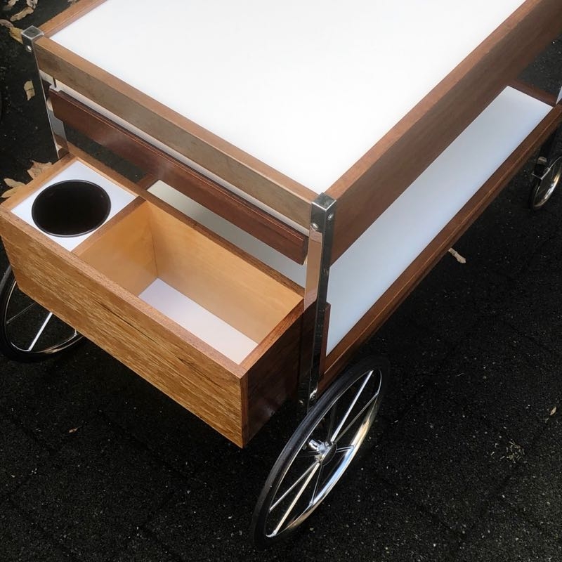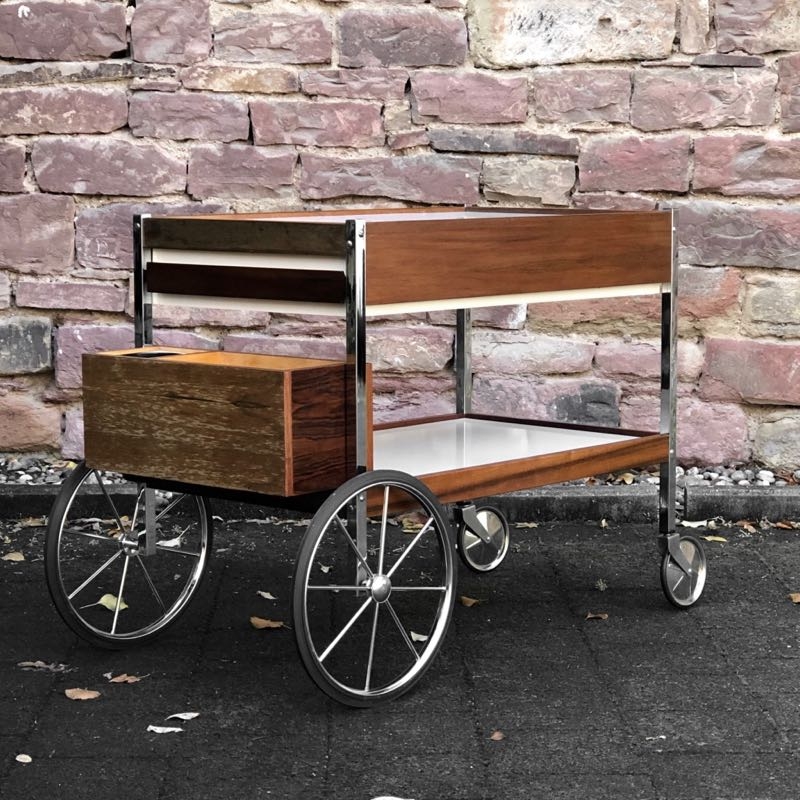 stylischer Barwagen aus Holz und Kunststoff