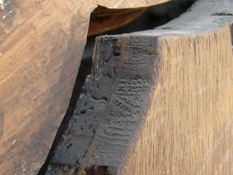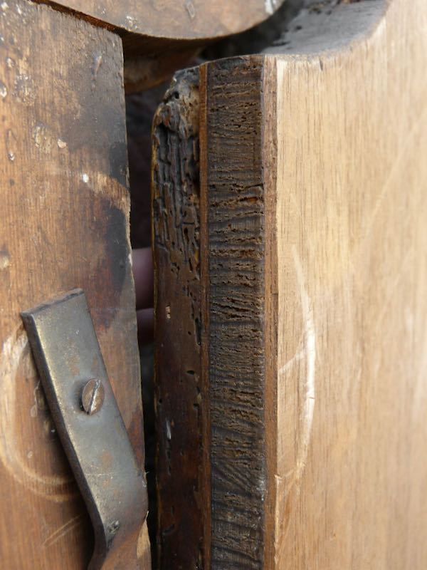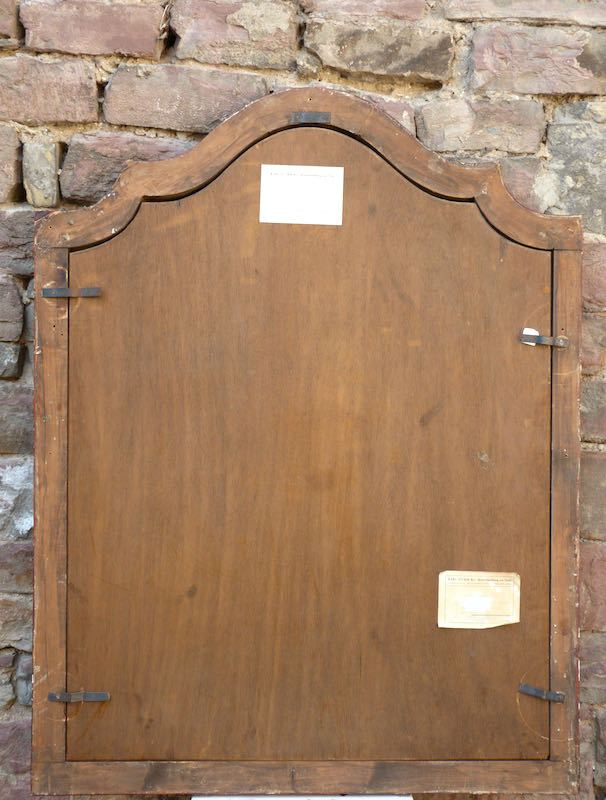 altrestauriert, retuschierte Schwundrisse zwischen den einzelnen Holzlatten, auf Holzplatte doubliert