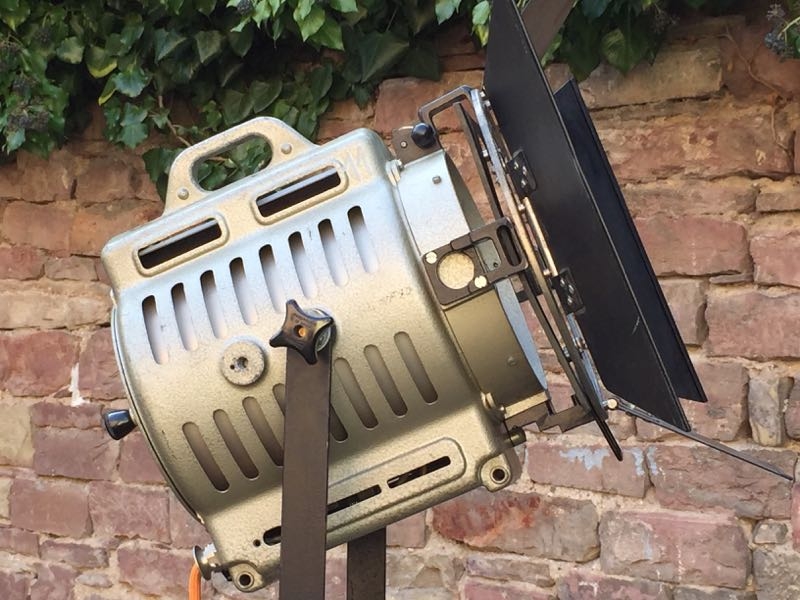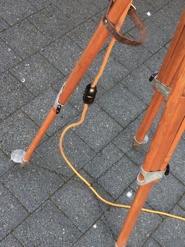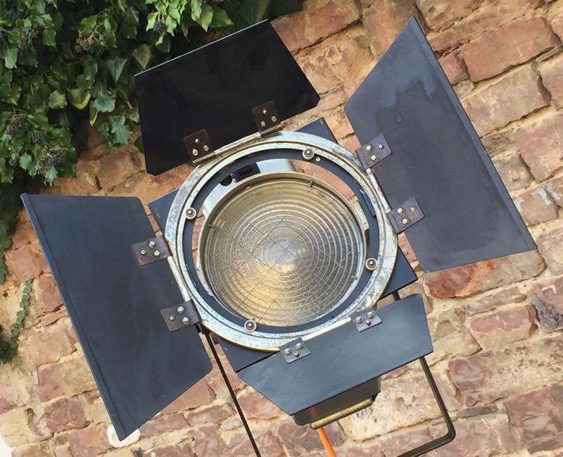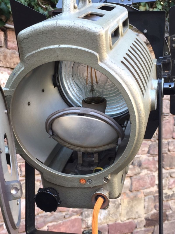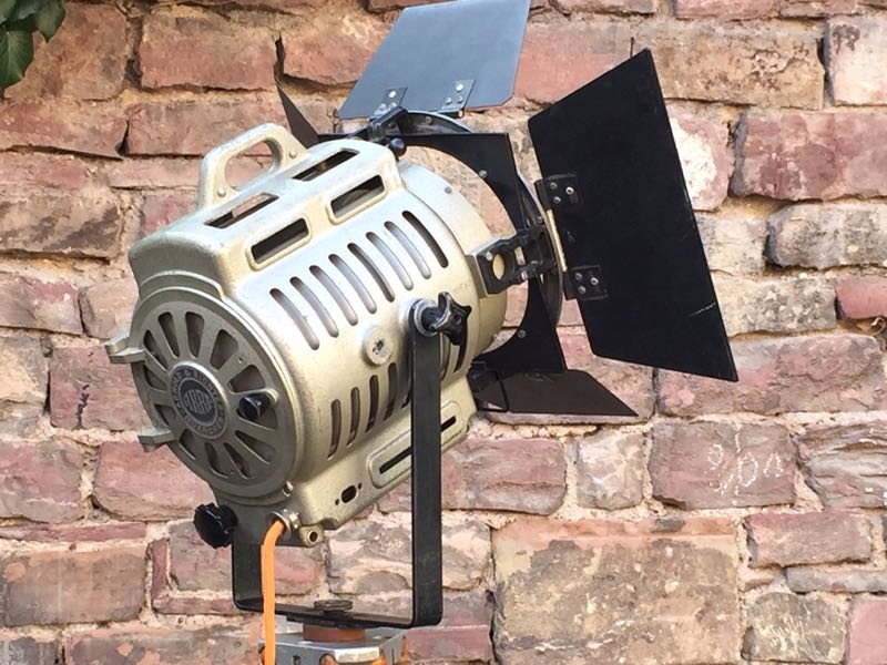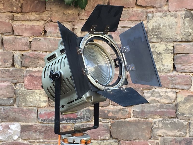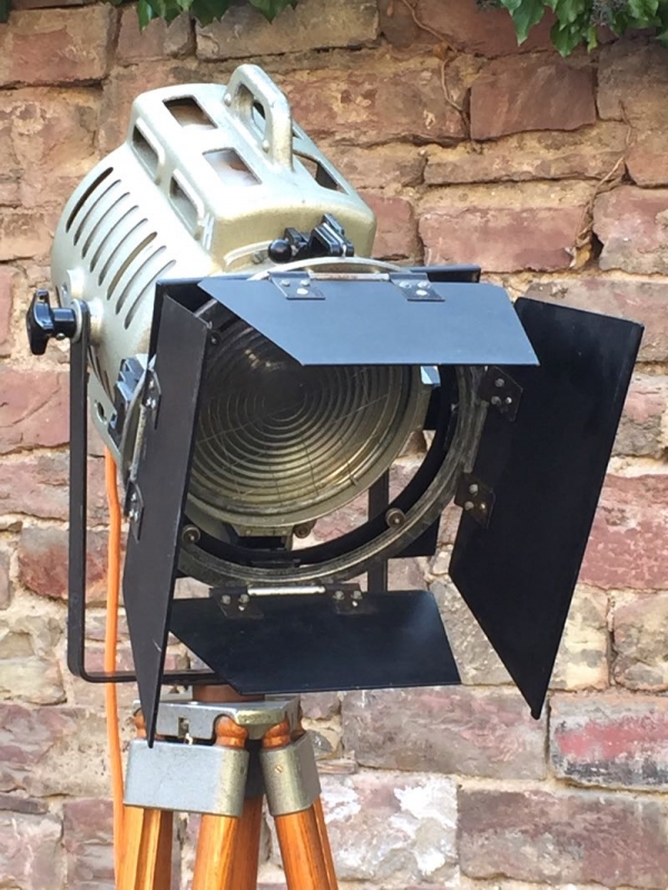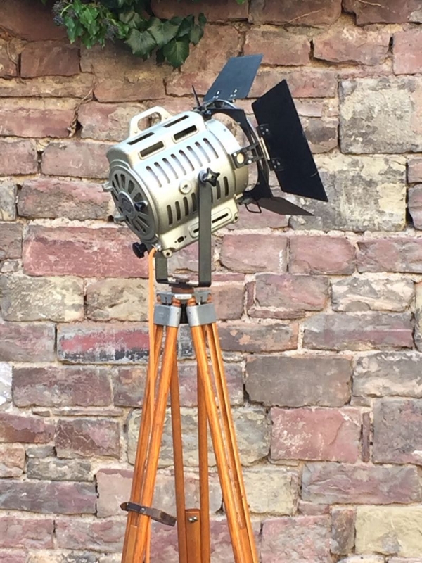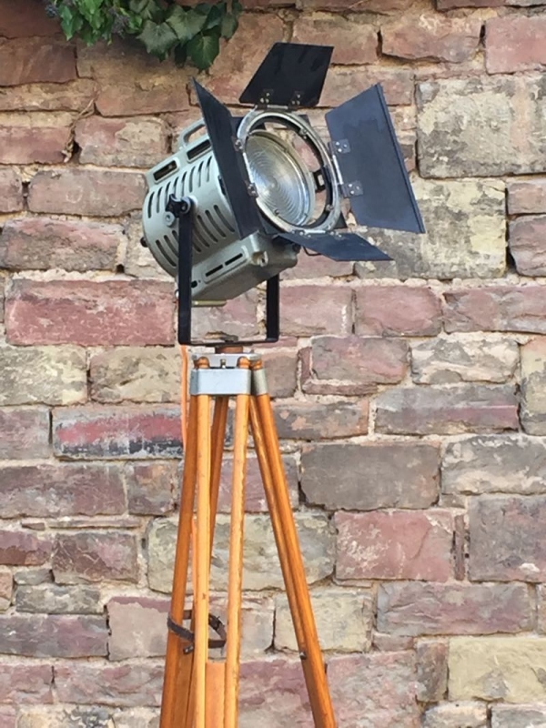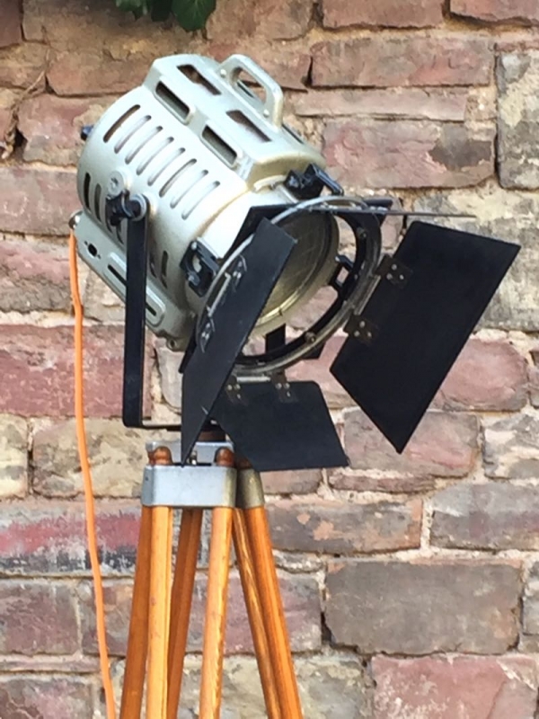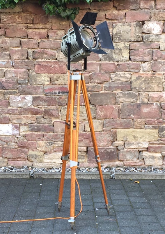 …..vintage TRIPOD LOFTLAMPE, Arri Bühnenstrahler auf Holzstativ…..