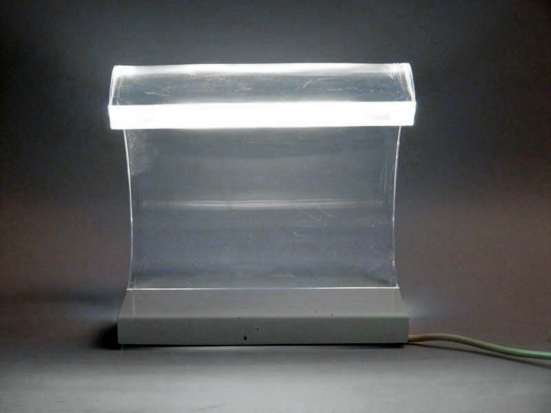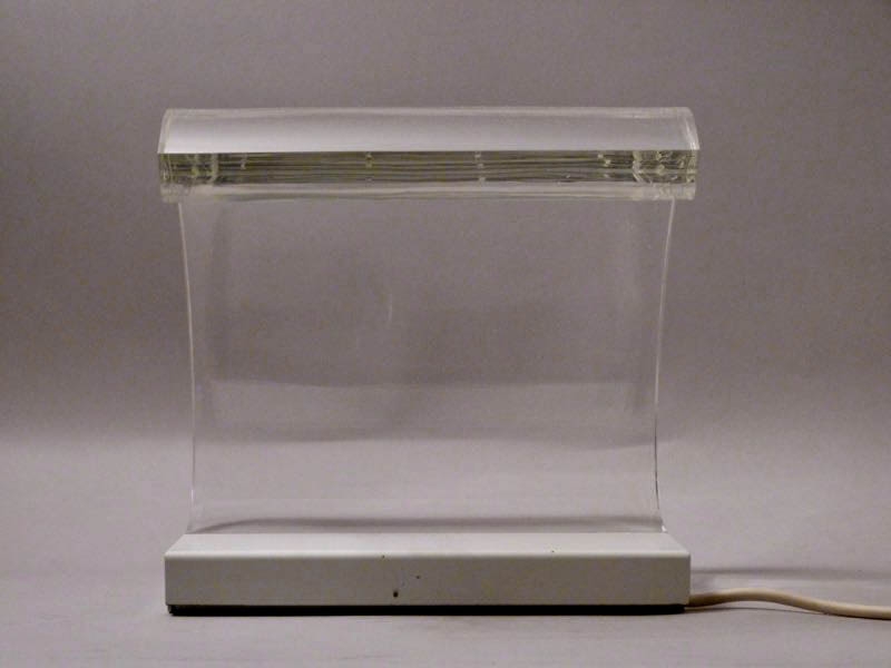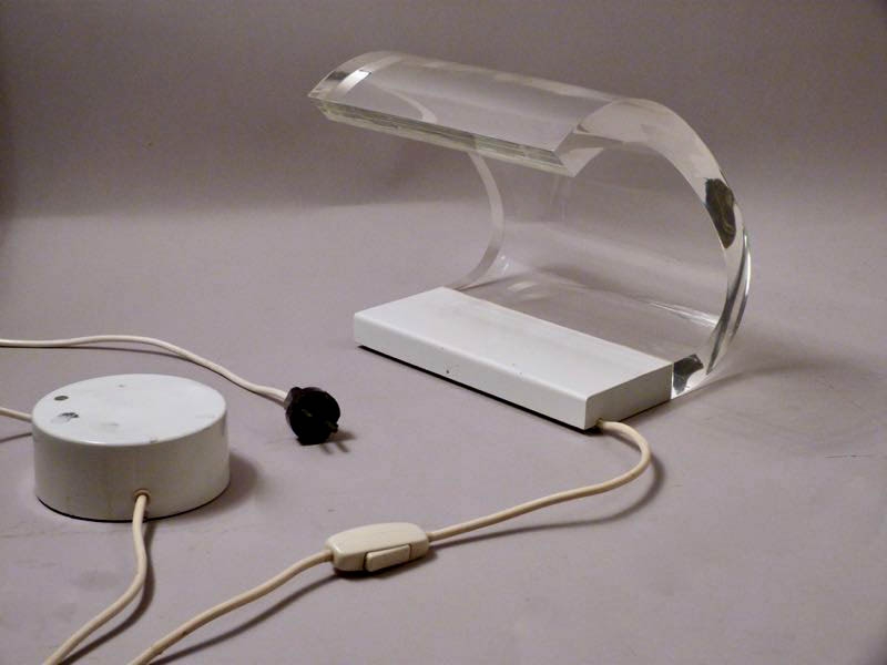 …..vintage „ACRILICA“ Tischlampe, Joe Colombo, Oluce Italy 60er Jahre….. HxBxT: ca. 24 x 24 x 24cm guter vintage Zustand, paar kleine Lackverluste am Metallsockel Transformator mit Lackverlusten und einer Druckstelle verkauft/sold