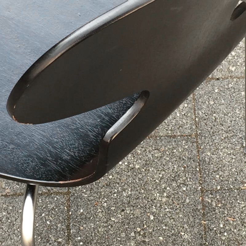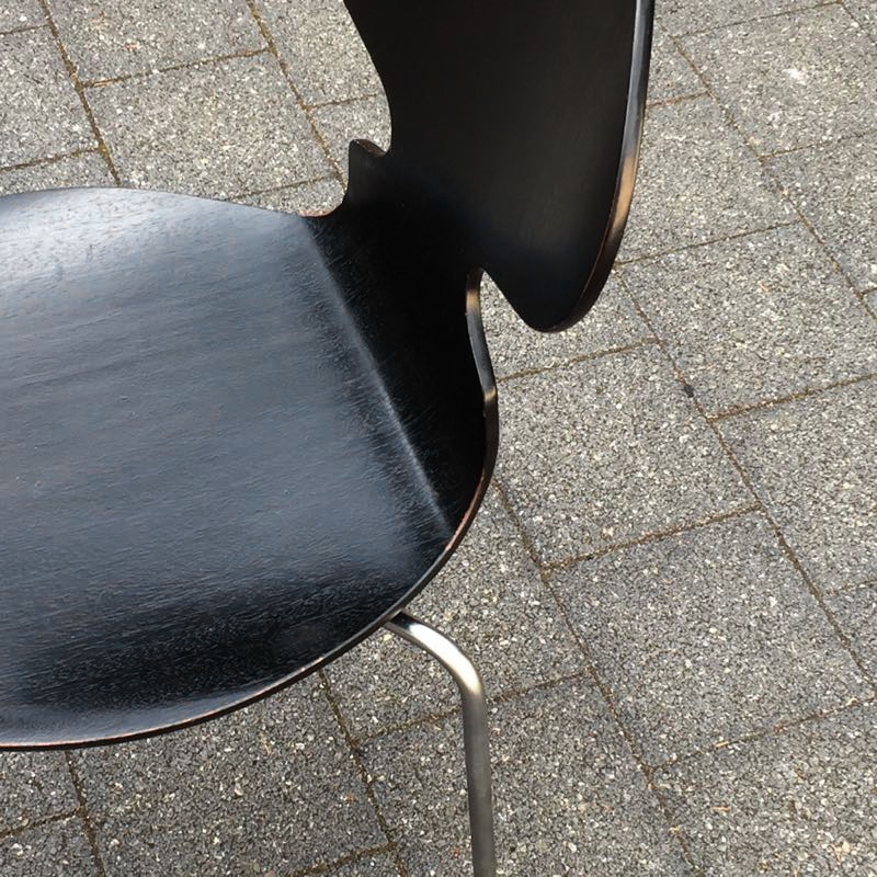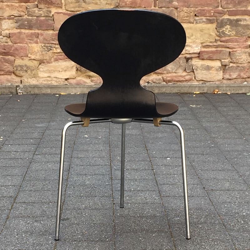 …..früher Stuhl “Ameise”, ARNE JACOBSEN, Fritz Hansen Dänemark 1967….. Esche, schwarz gebeizt Unterseite mit Firmenetikett guter vintage Zustand verkauft/sold