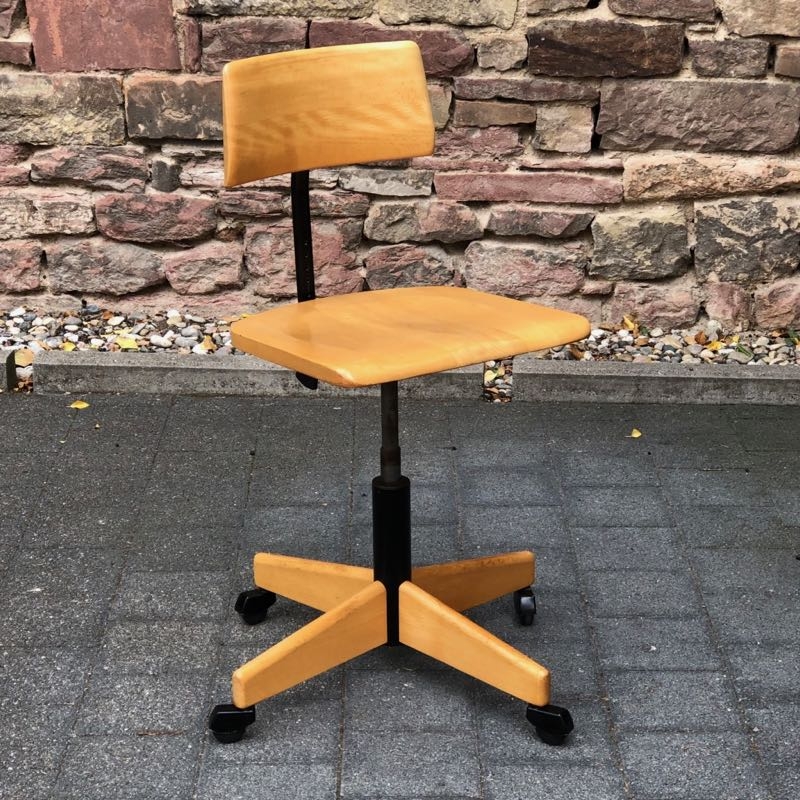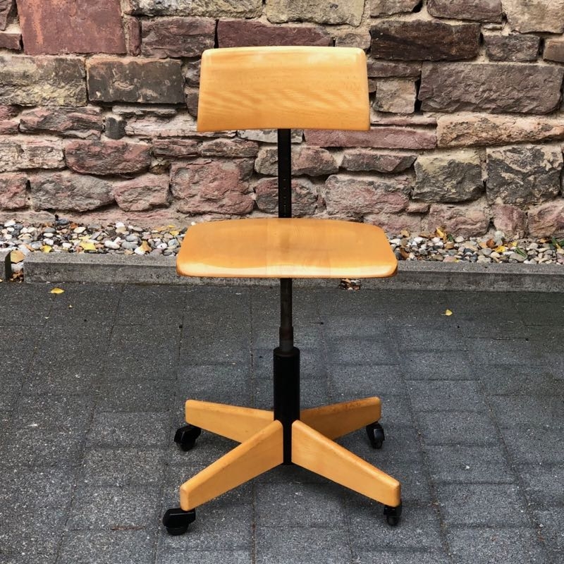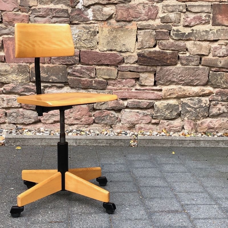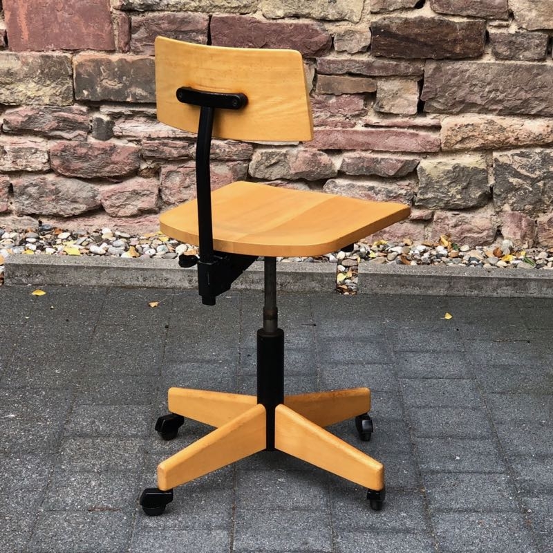 …..vintage Arbeitsstuhl, Stoll Giroflex 60er Jahre….. Sitzfläche und Rückenlehne aus Buchenholz Gestell aus Eisen, höhenverstellbar (stufenlos) sehr guter Zustand verkauft/sold