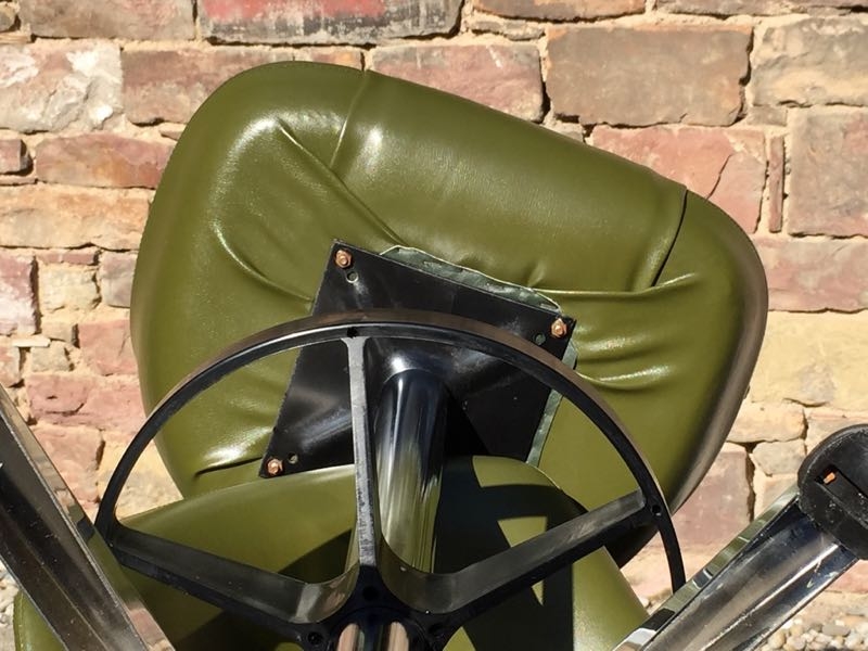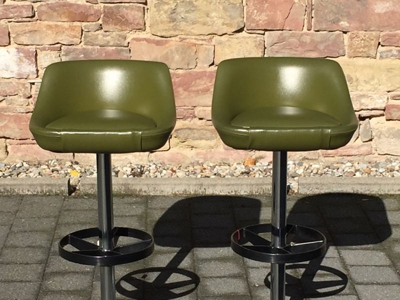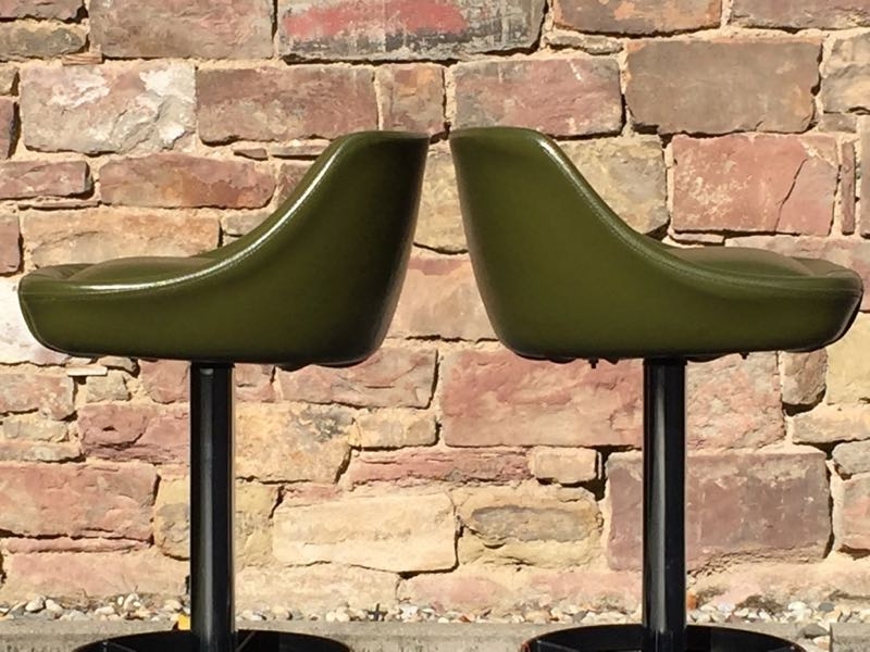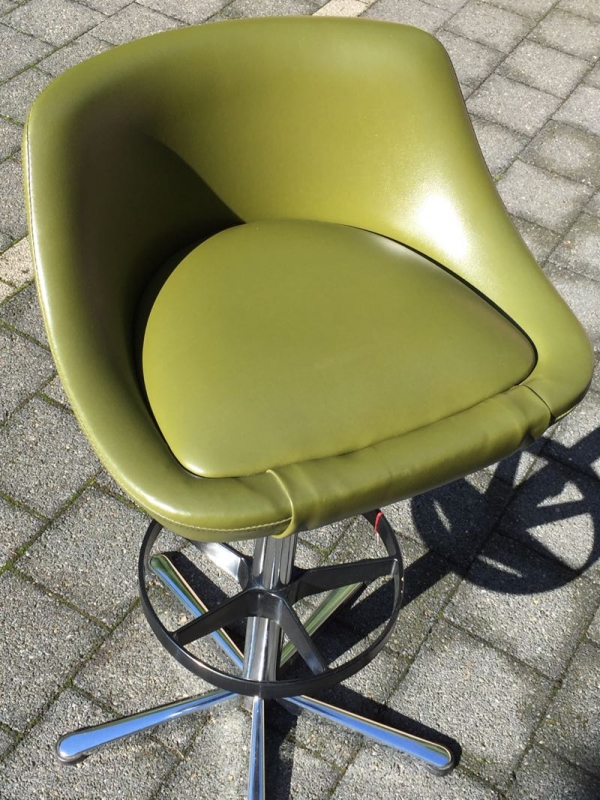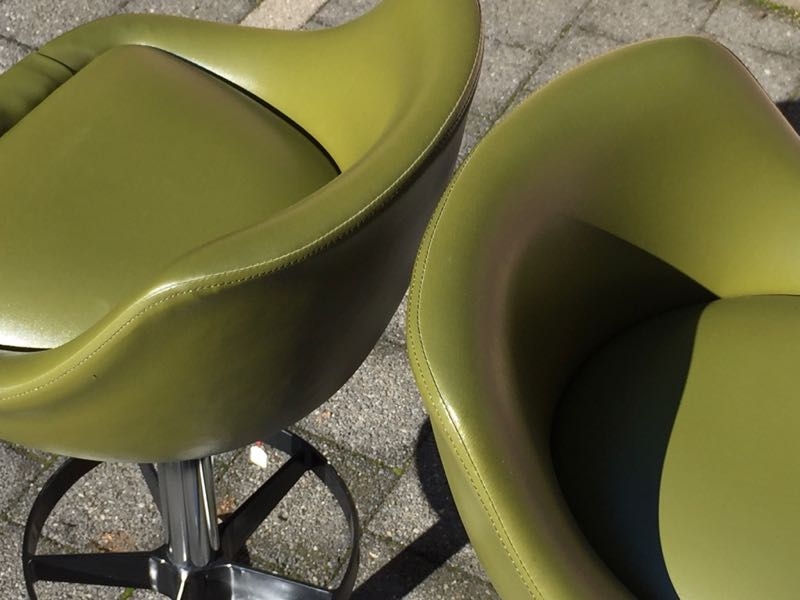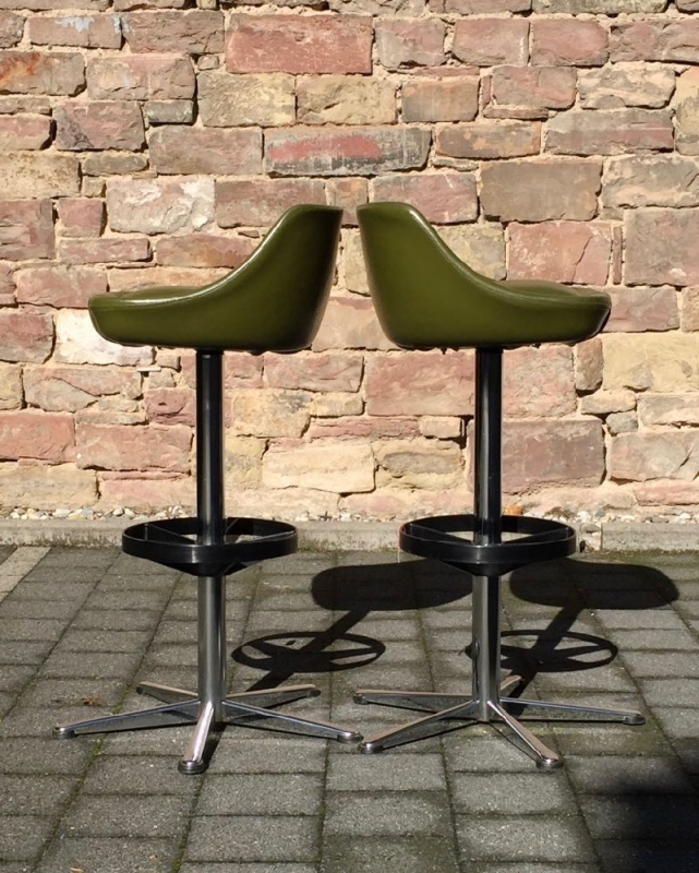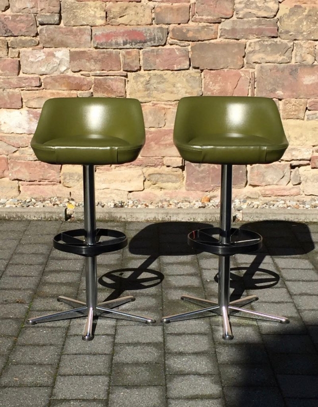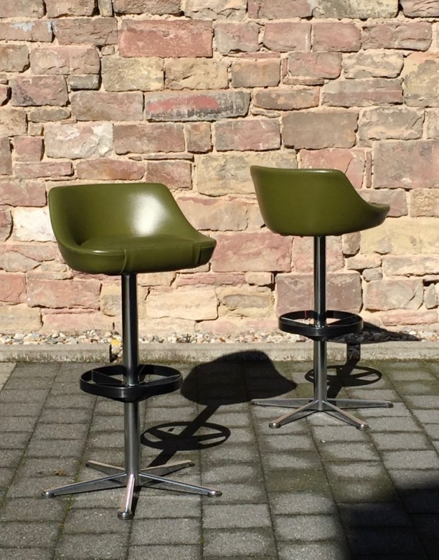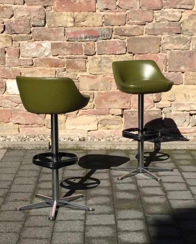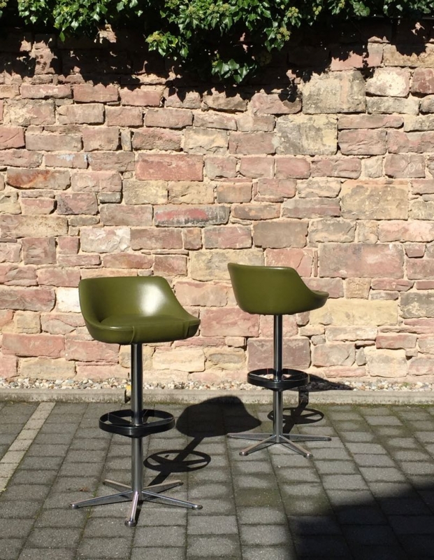 …..zwei vintage FIFTIES BARHOCKER, 50er Jahre….. olivegrüner Kunstlederbezug HxBxT 93.5 x 46.5 x 44cm, Sitzhöhe 79cm drehbar guter vintage Zustand verkauft/sold