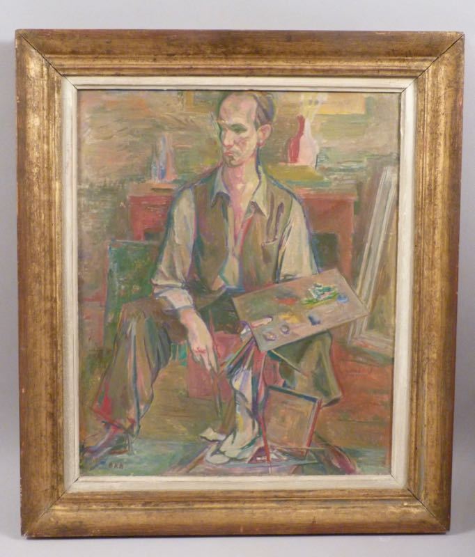 qualitätvolles Gemälde aus den 50er Jahren, Portrait des Malers Max Eichin