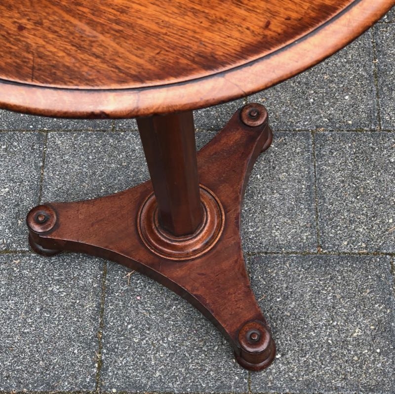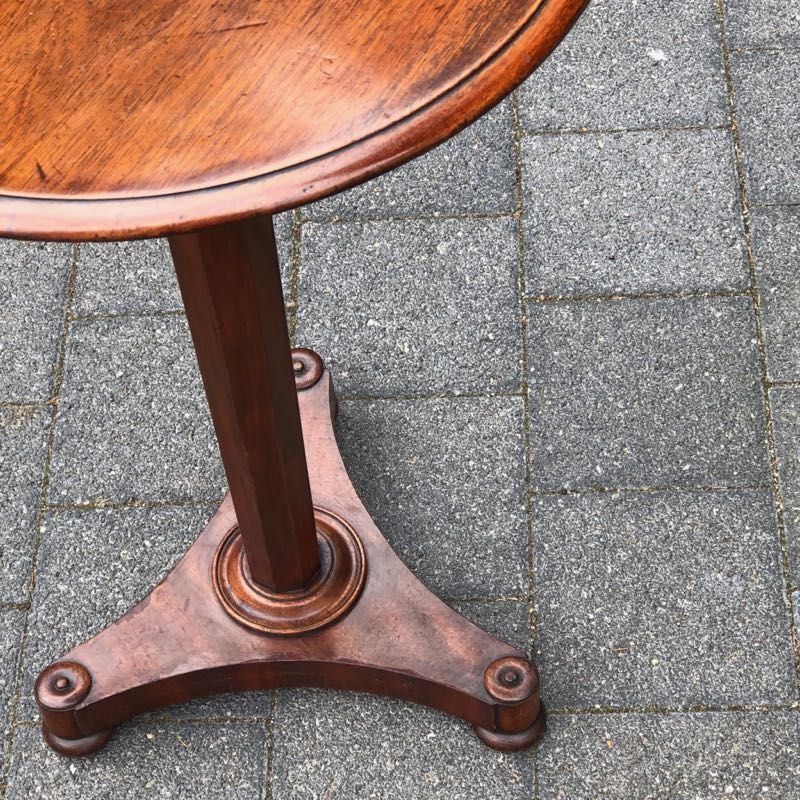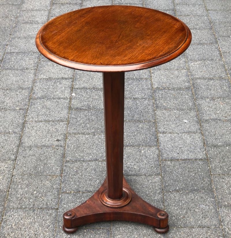 …..kleiner Biedermeier Beistelltisch, England 19. Jahrhundert….. Mahagoni Höhe 72cm, Ø 48.5cm sehr guter Zustand, schöne Patina verkauft/sold