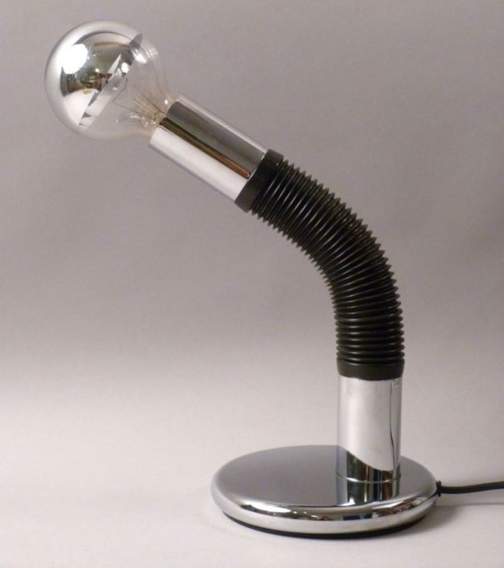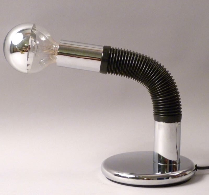 …..vintage Table Lamp “Brendy”, Targetti Sankey Italy 70s….. stylische Lampe aus Chrom mit schwarzem Biegeschlauch eine E 27 Fassung bezeichnet mit Firmenetikett sehr guter Zustand verkauft/sold