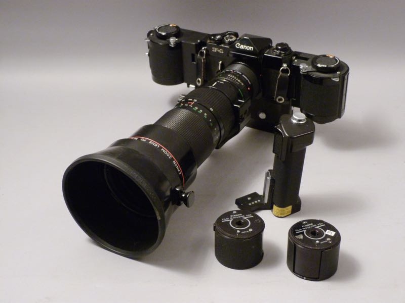 ◄ 1 2 …..vintage CANON F-1 Spiegelreflex-Kamera, Profi-Ausrüstung 70s/80s….. Objektiv: Canon Zoom FD 50-300mm 1:4,5 L Tele-Converter: Soligor C/D 7 Canon Motor Drive MF + Grip MF Canon Film Chamber 250 + Magazine verkauft/sold