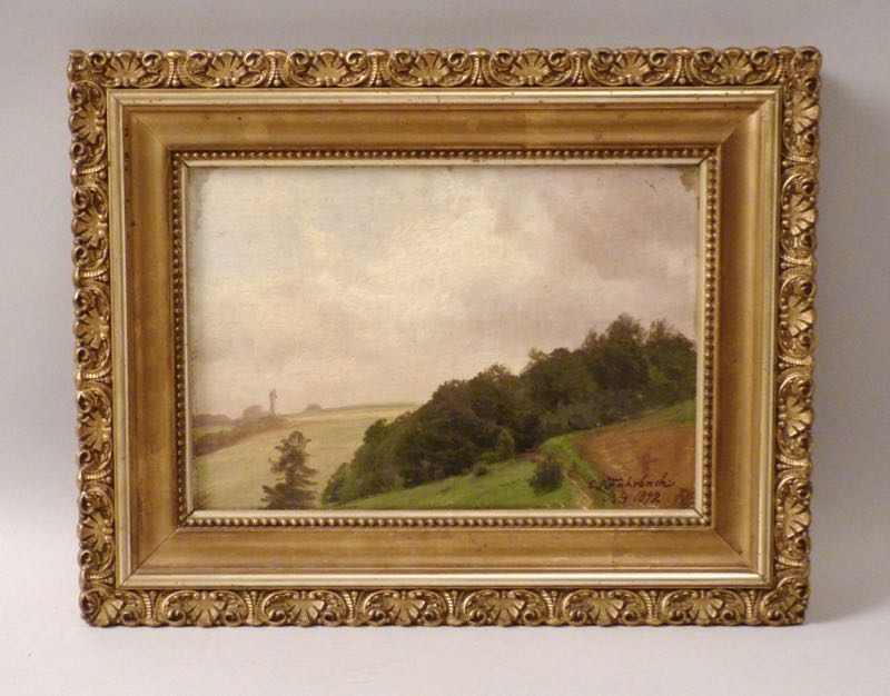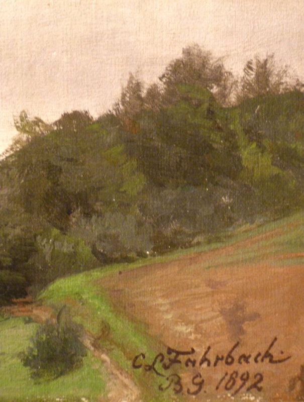 …..CARL LUDWIG FAHRBACH, kleine Ölstudie 1892….. * 1835 in Heidelberg – † 1902 in Düsseldorf 18 x 26cm rechts unten signiert und datiert Rahmen, 27 x 34.5cm verkauft/sold