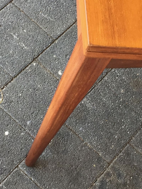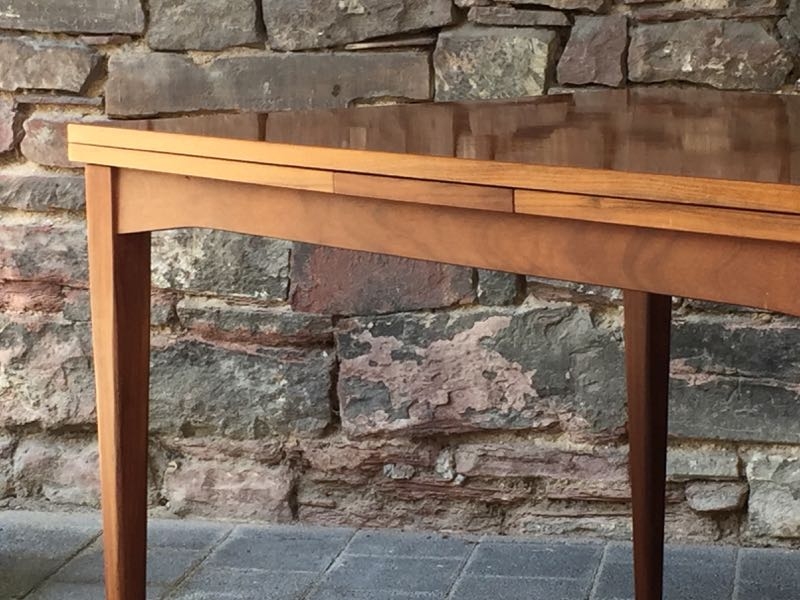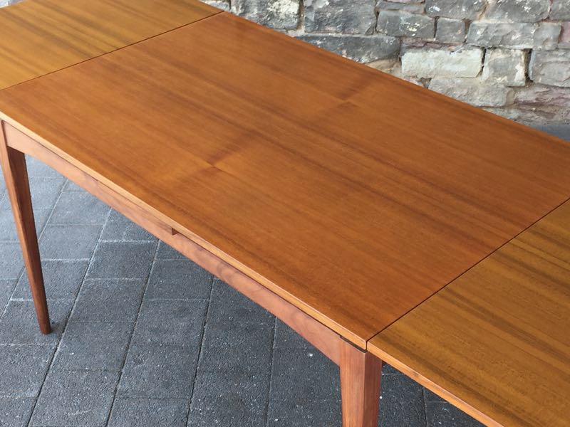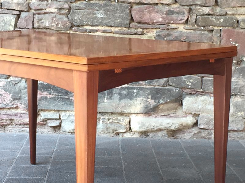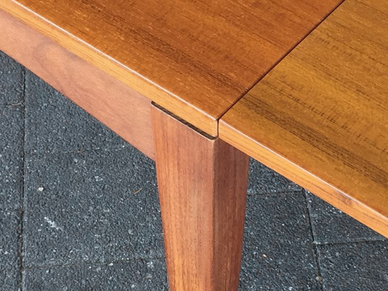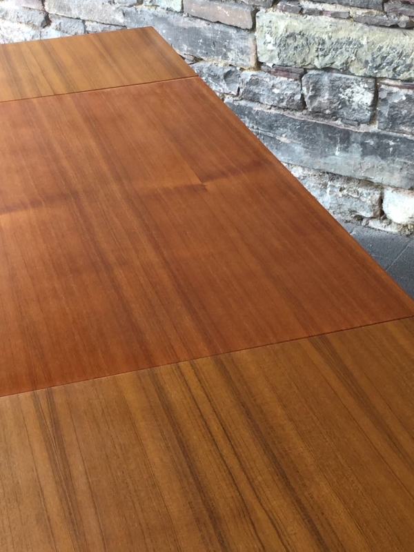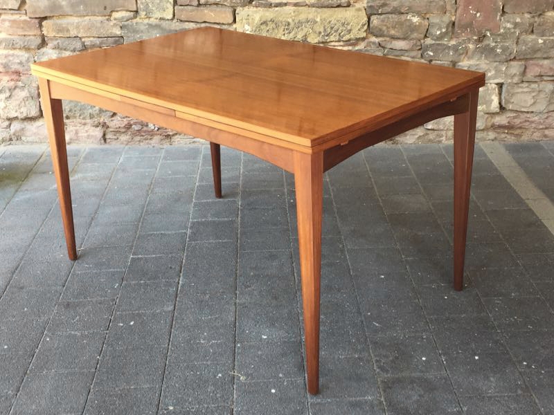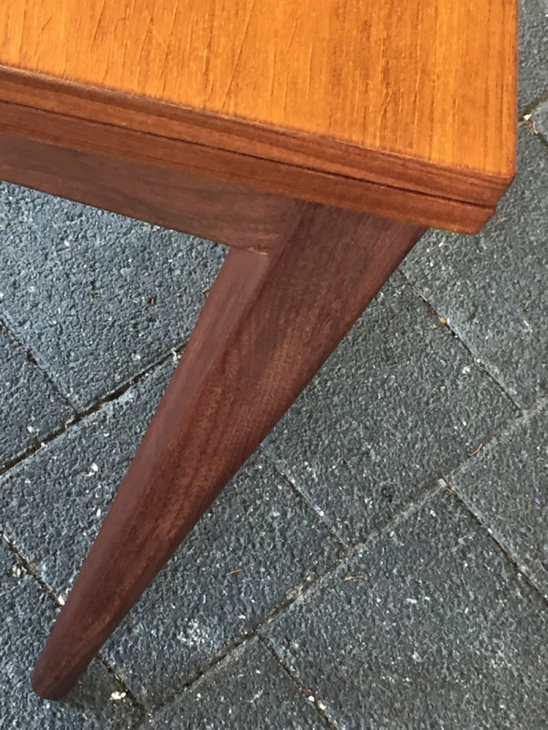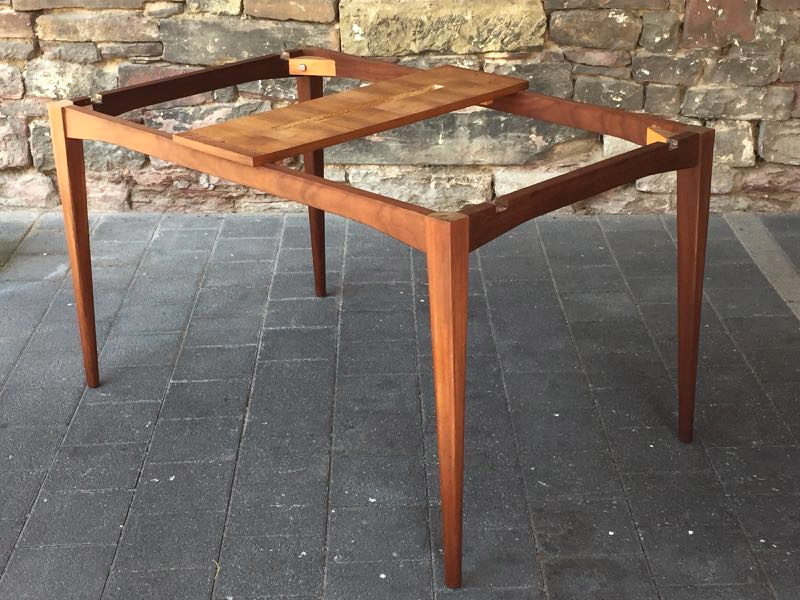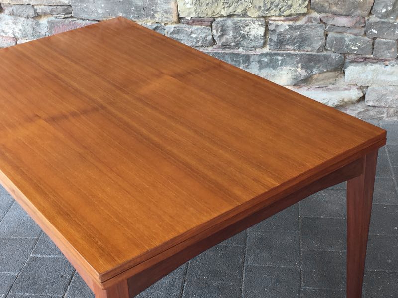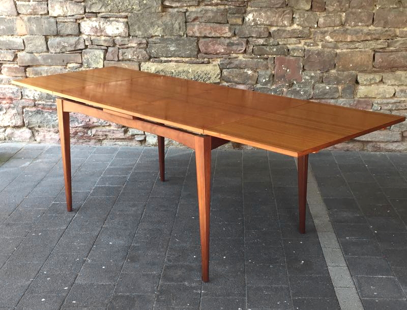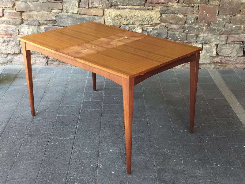 …..vintage Esstisch, ausziehbar, 50er/60er Jahre….. Teakholz, Gestell dunkel, Platten lackiert Höhe 75cm, Breite 77.5cm, Länge 124cm/174cm/224cm sehr guter Zustand verkauft/sold