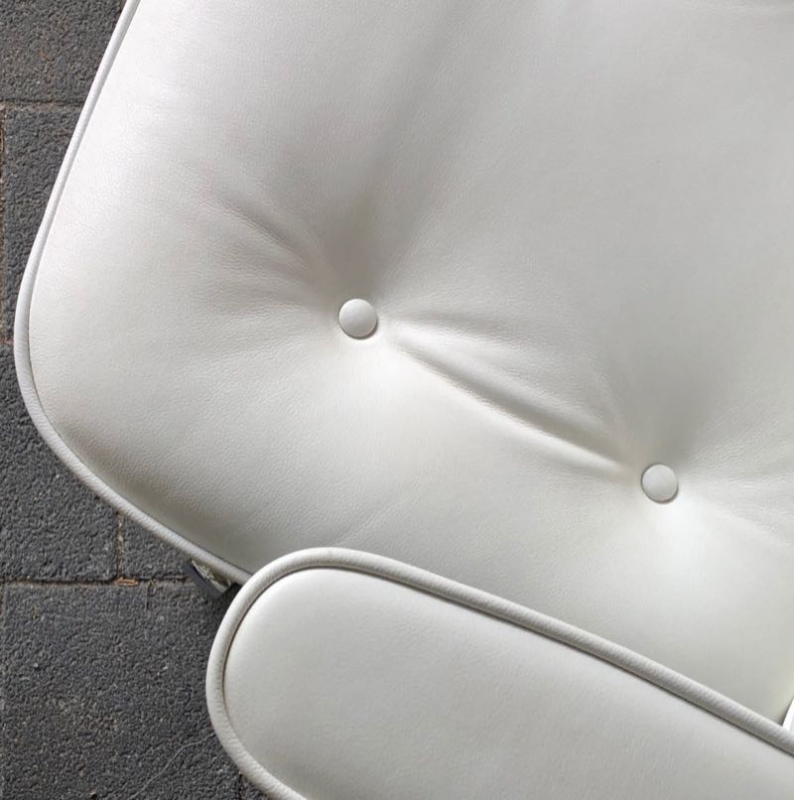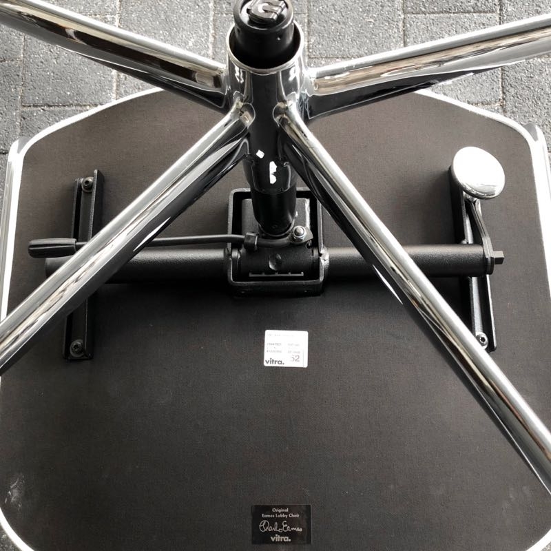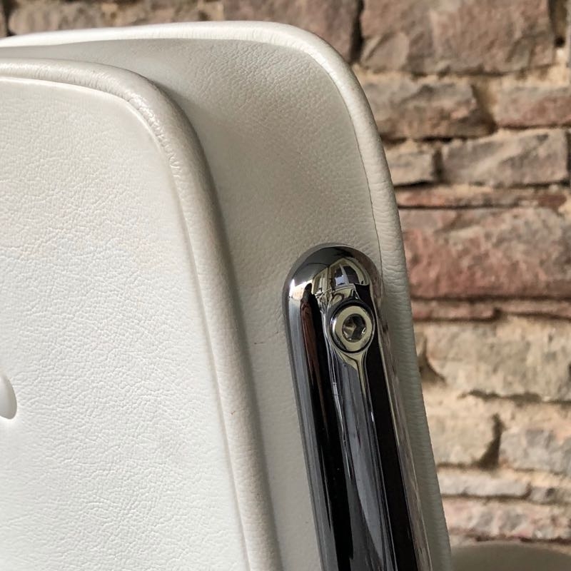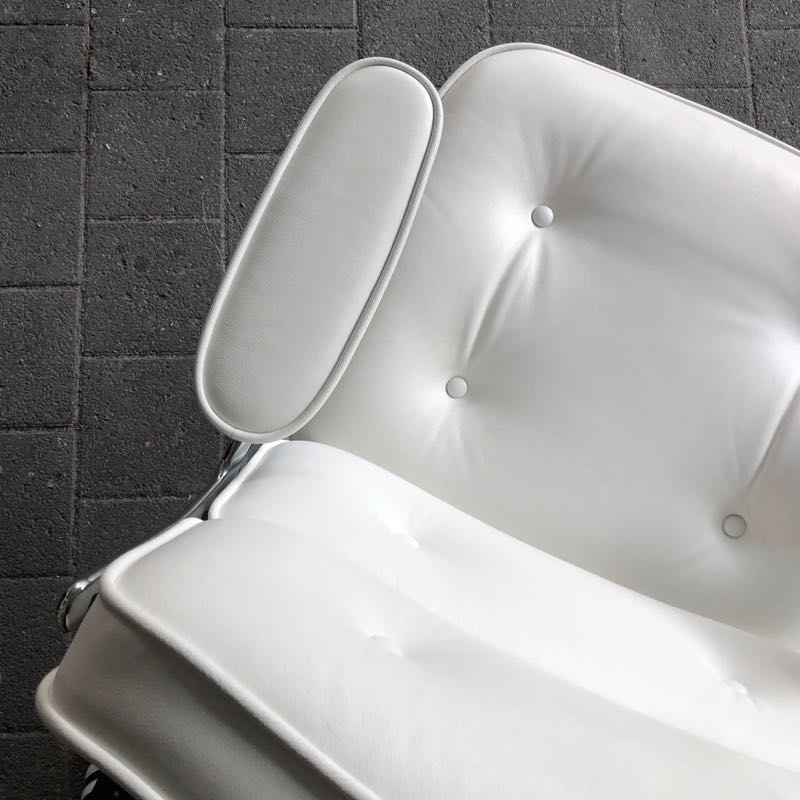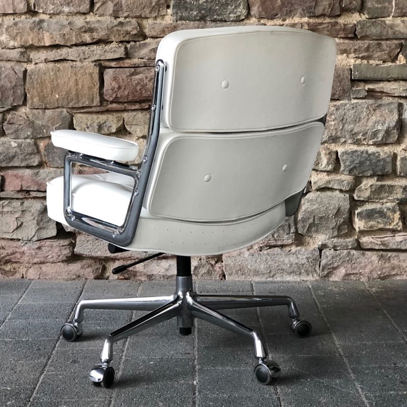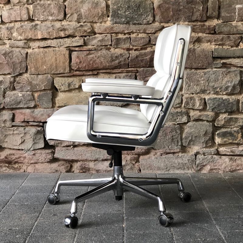 …..Lobby Chair ES 104, Vitra 2008….. Design: Charles & Ray Eames Chromgestell, Leder weiß höhenverstellbar, rollbar, einstellbarer Wippmechanismus top Zustand, minimalste Patina verkauft/sold