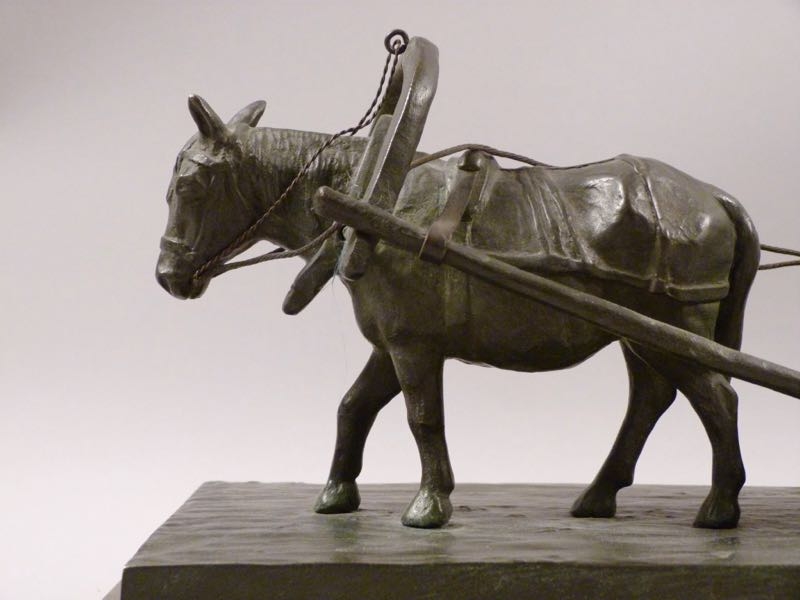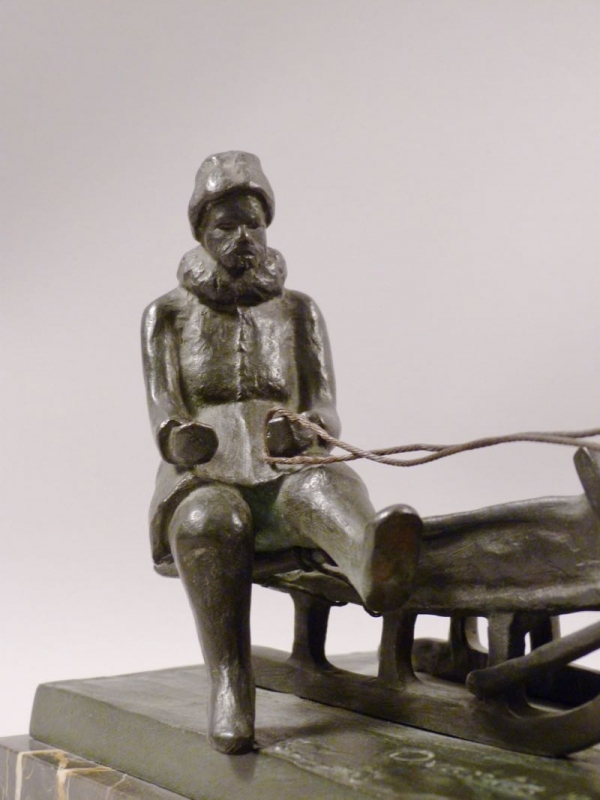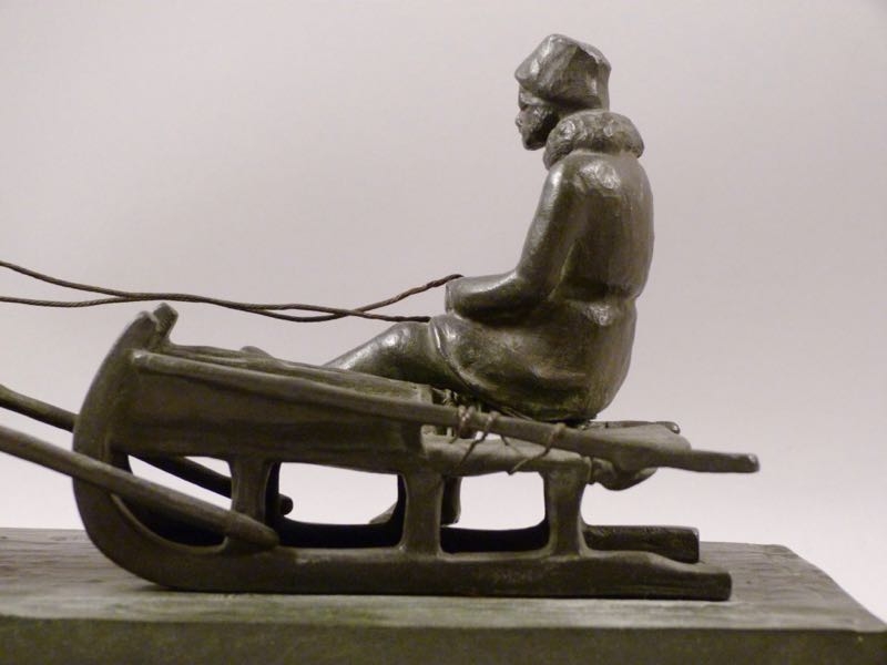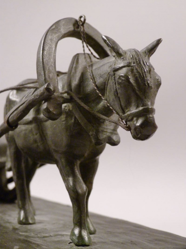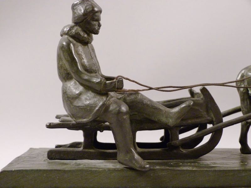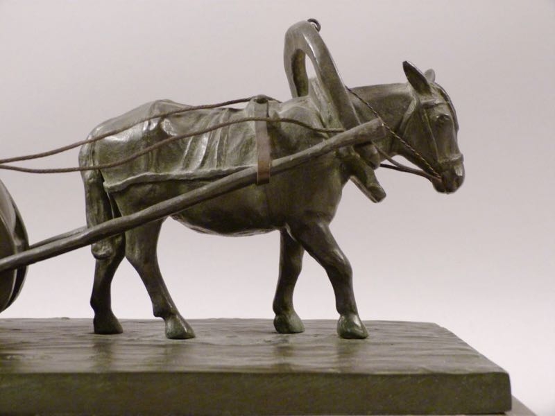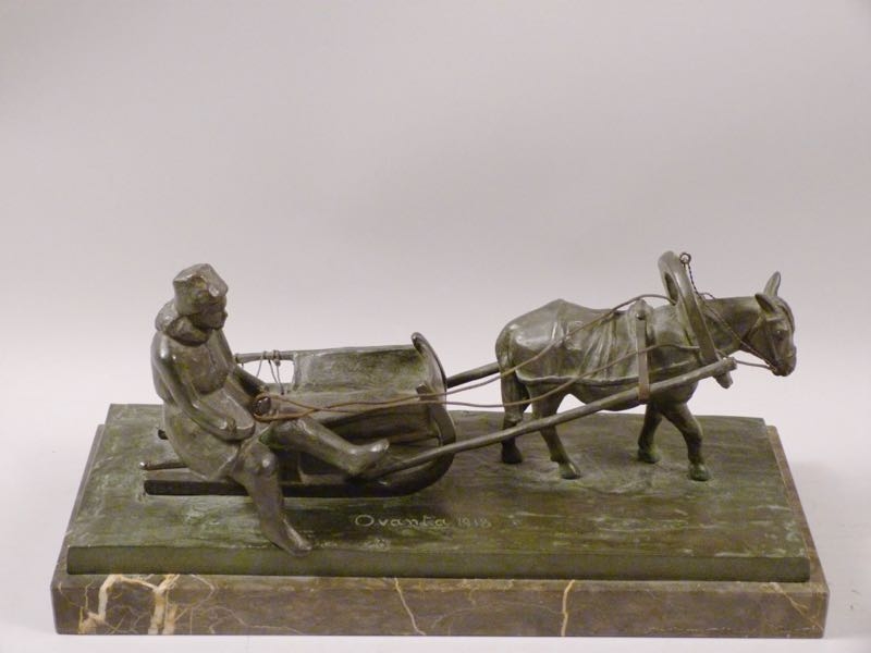 qualitätvolle Bronze von 1918, Schlittengespann mit Esel