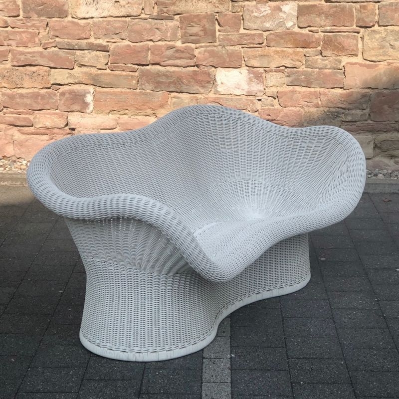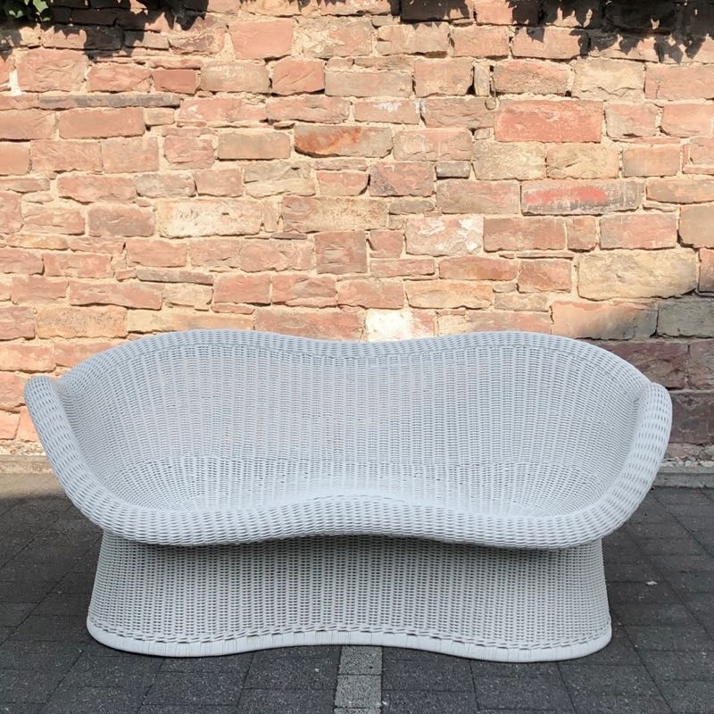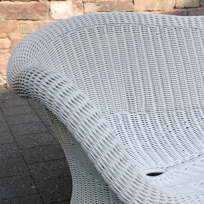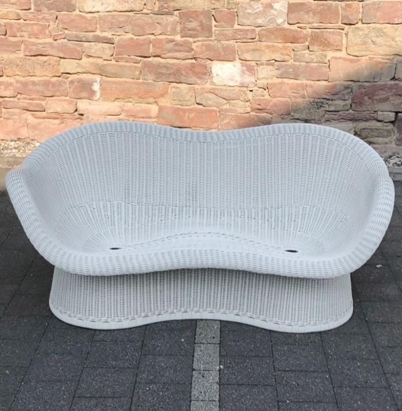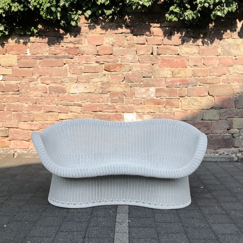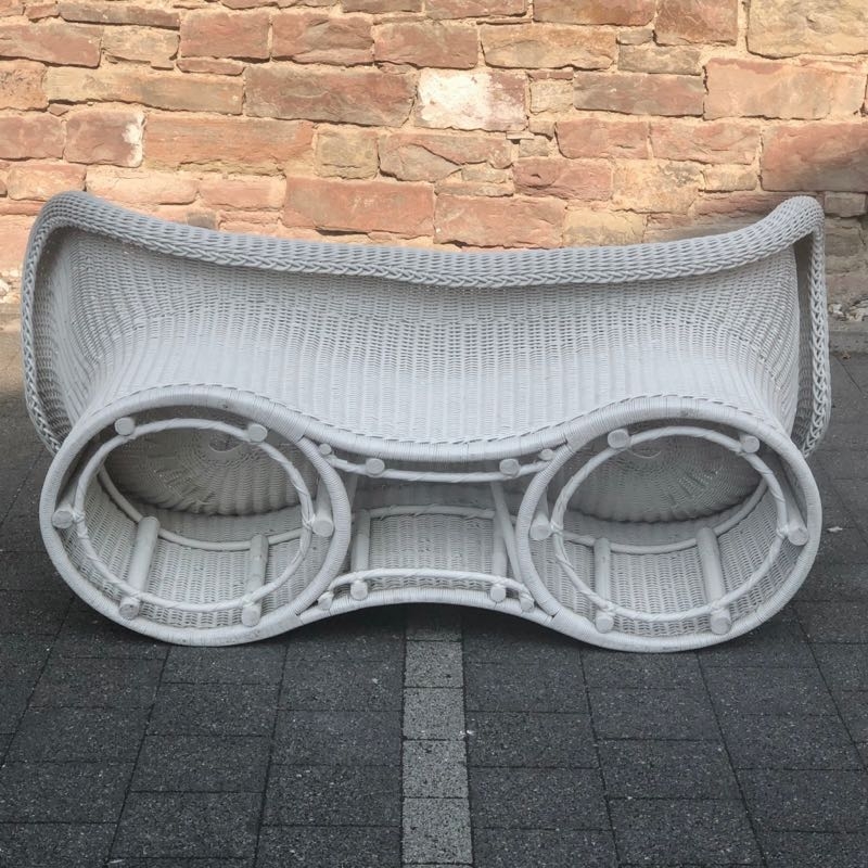 …..seltene Korbbank E 17, EGON EIERMANN, 50er/60er Jahre….. Ausführung von Heinrich Murmann um 1960 Peddingrohr, weiß lackiert HxBx>T: 70 x 145 x 75cm, Sitzhöhe ca. 37cm sehr guter vintage Zustand, stabil, benutzbar verkauft/sold