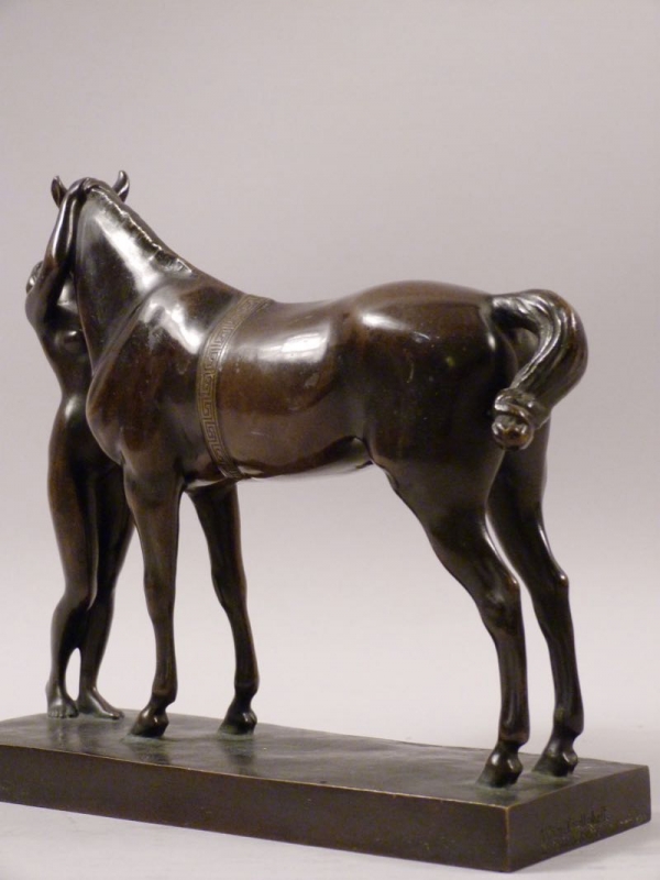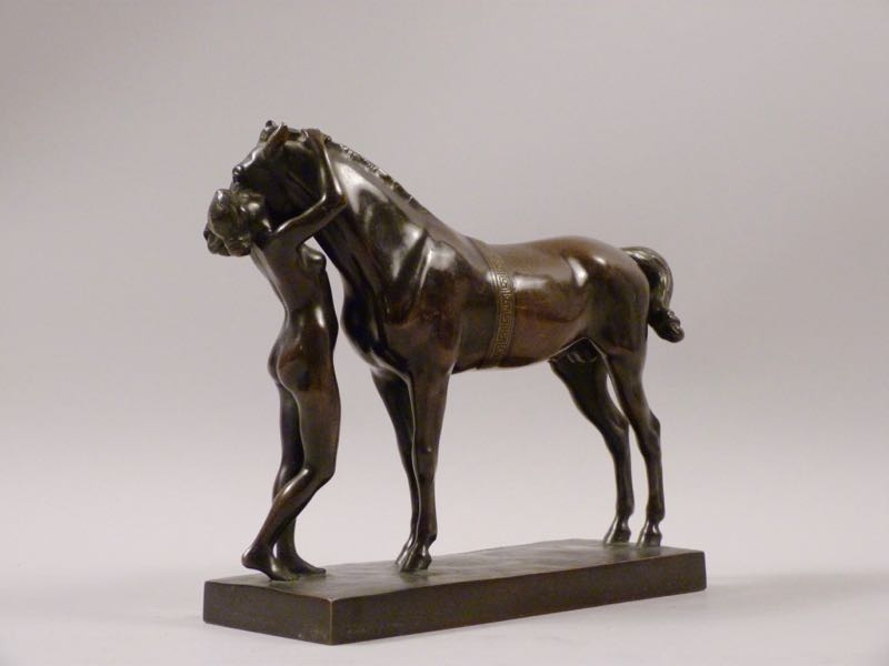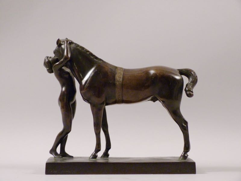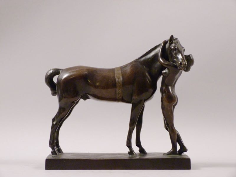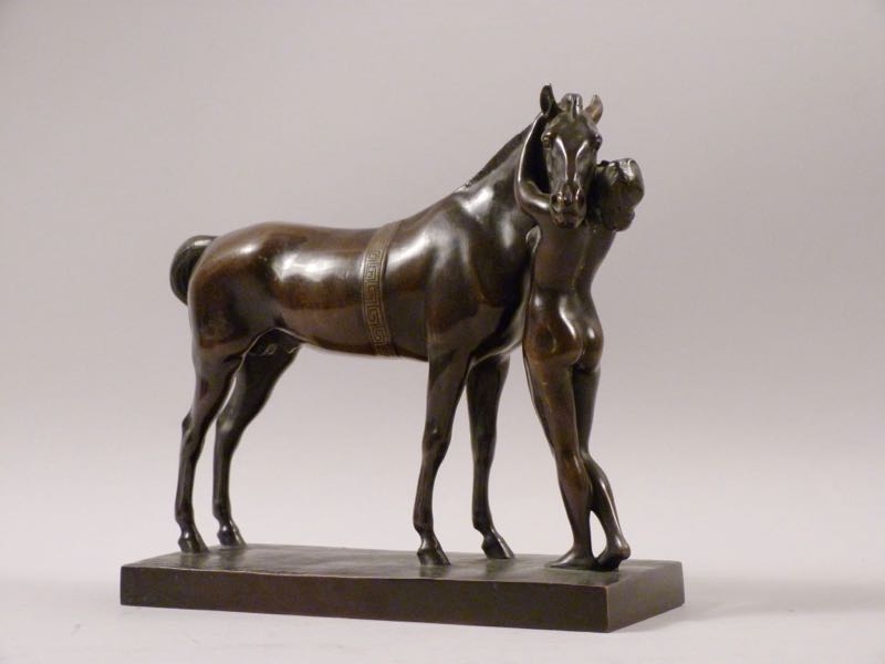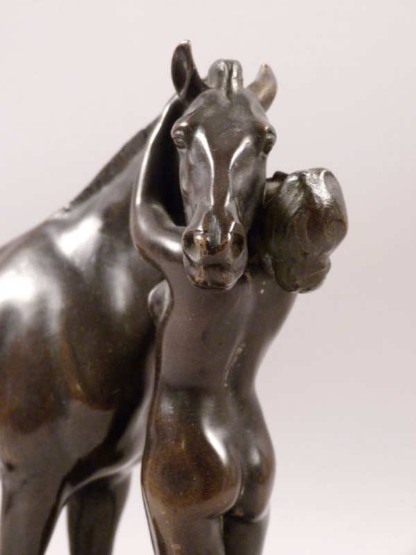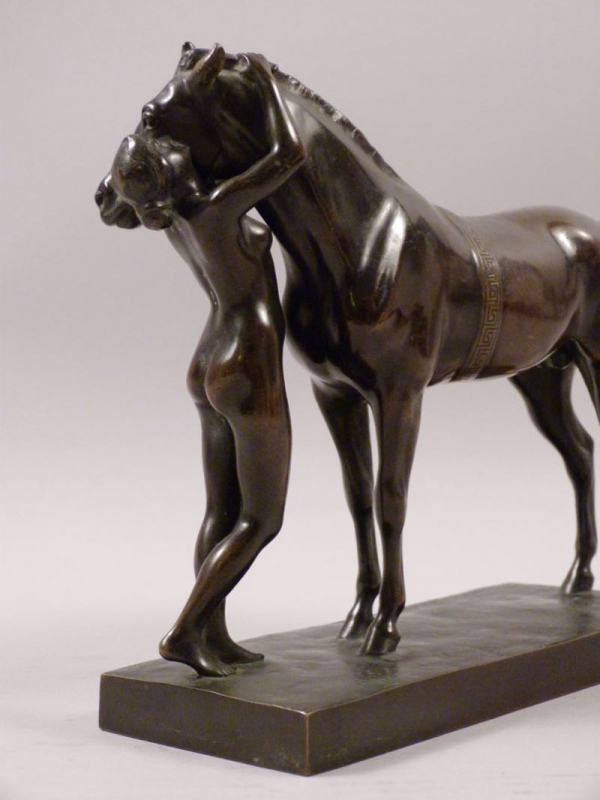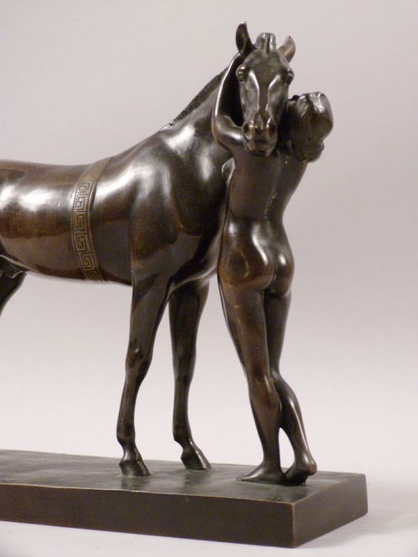 qualitätvolle Bronze um 1910/20, Amazone mit Pferd