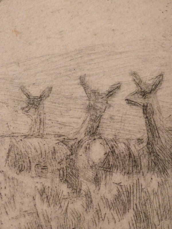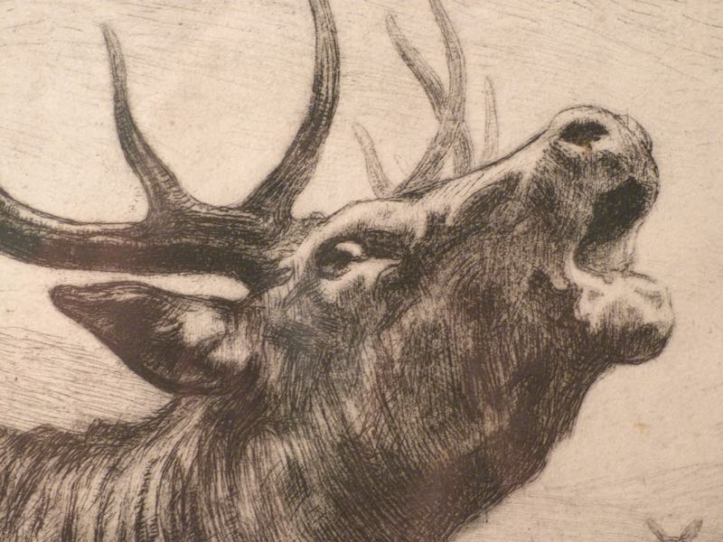 …..FERDINAND SCHULZ-WETTEL, Radierung ~ 1900, Röhrender Hirsch…..