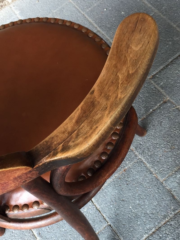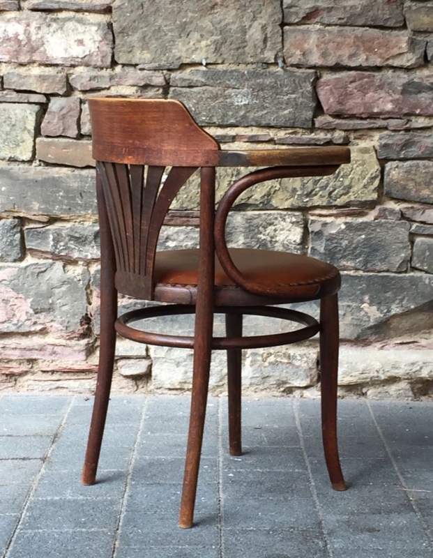 …..alter THONET FAUTEUIL Nr. 23, Wien ~ 1900….. dunkel gebeiztes Buchenholz, Sitzfläche Leder (erneuert) HxBxT: 85 x 63 x 48cm, Sitzhöhe 48cm guter Zustand, schöne Patina verkauft/sold
