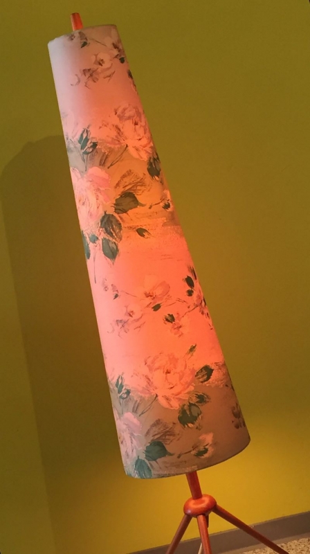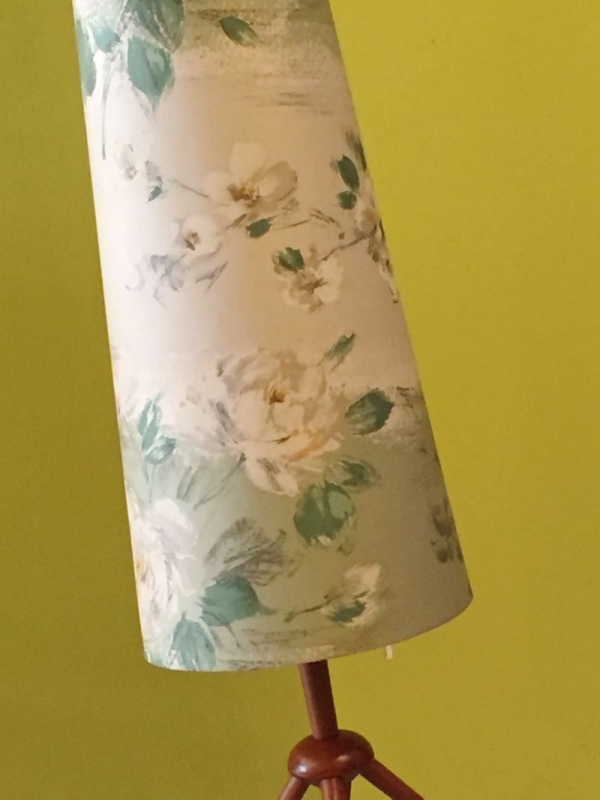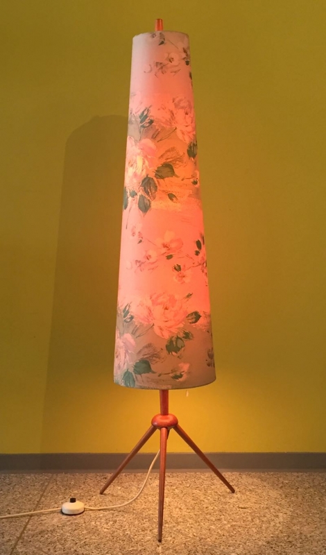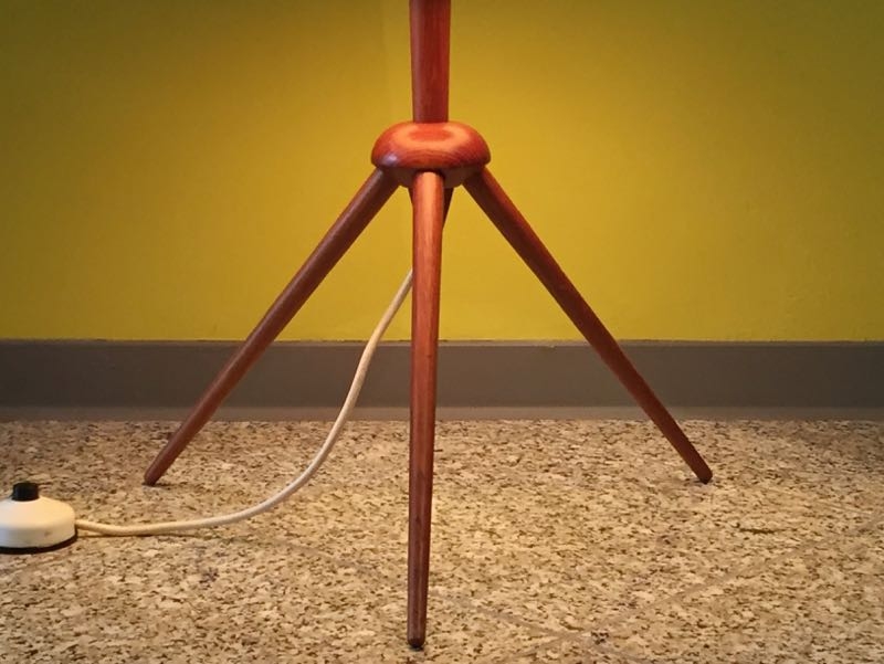 …..stylische FIFTIES STEHLAMPE, Teakholz, Originalschirm, 50er Jahre….. Höhe 130cm, Ø 27cm verkauft/sold