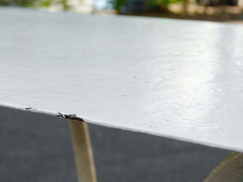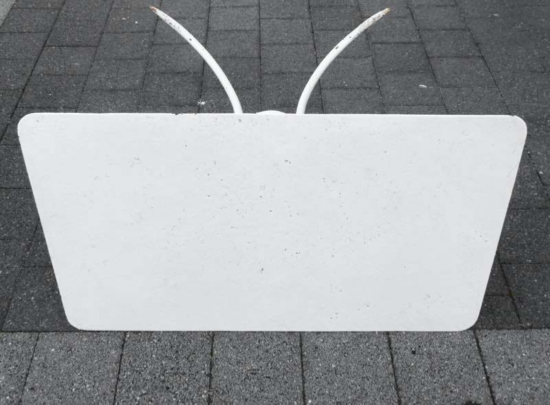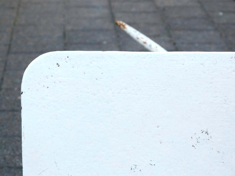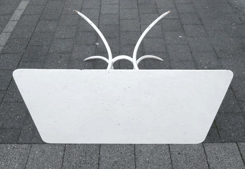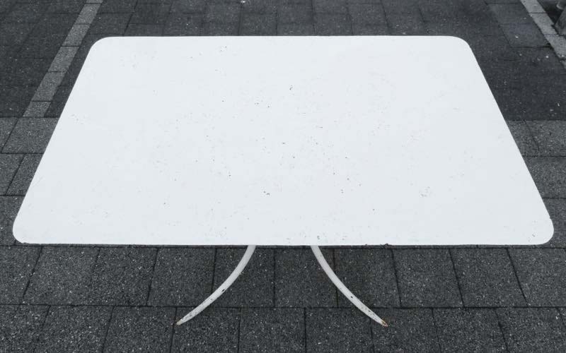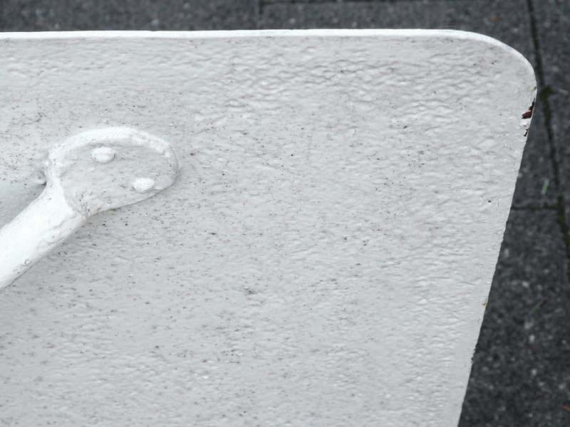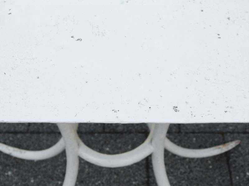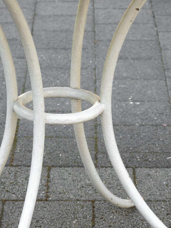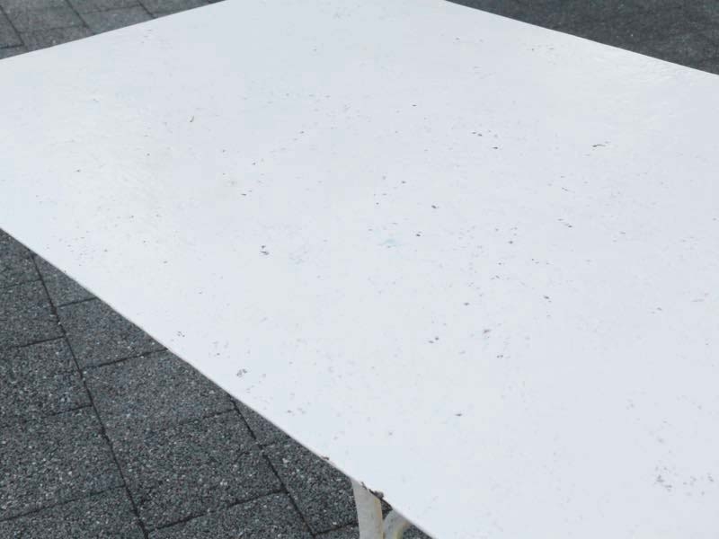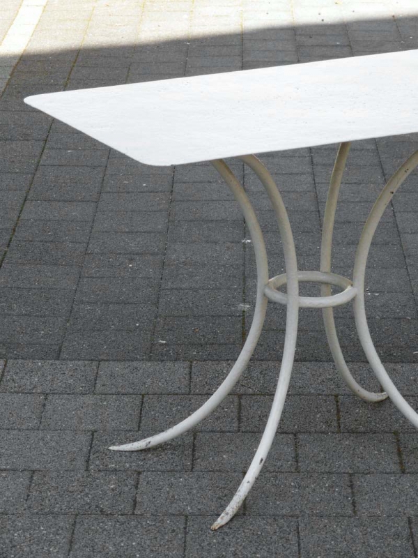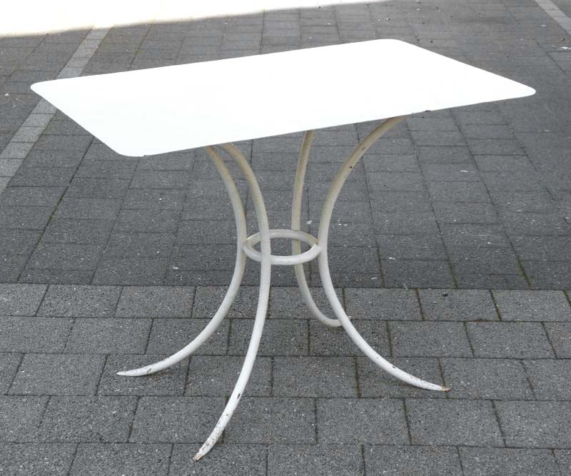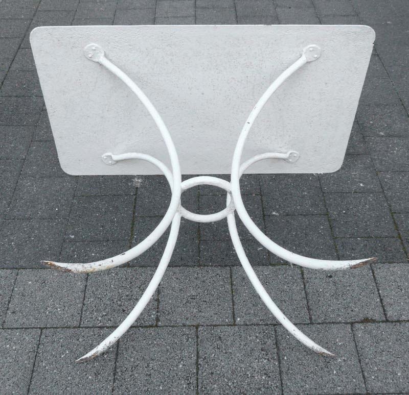 …..schwerer alter GARTENTISCH, Metall weiß lackiert….. Oberfläche mit leichtem Hammerschlag HxBxT: cm altersübliche Gabrauchsspuren, bzw. Patina verkauft/sold