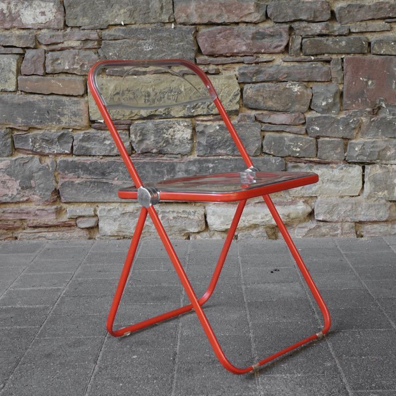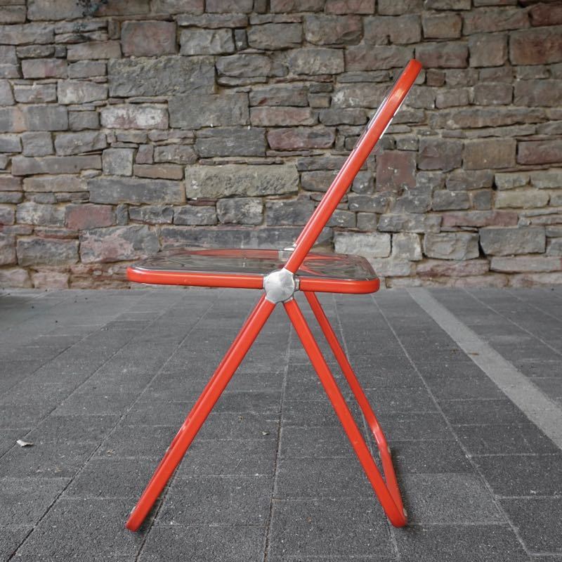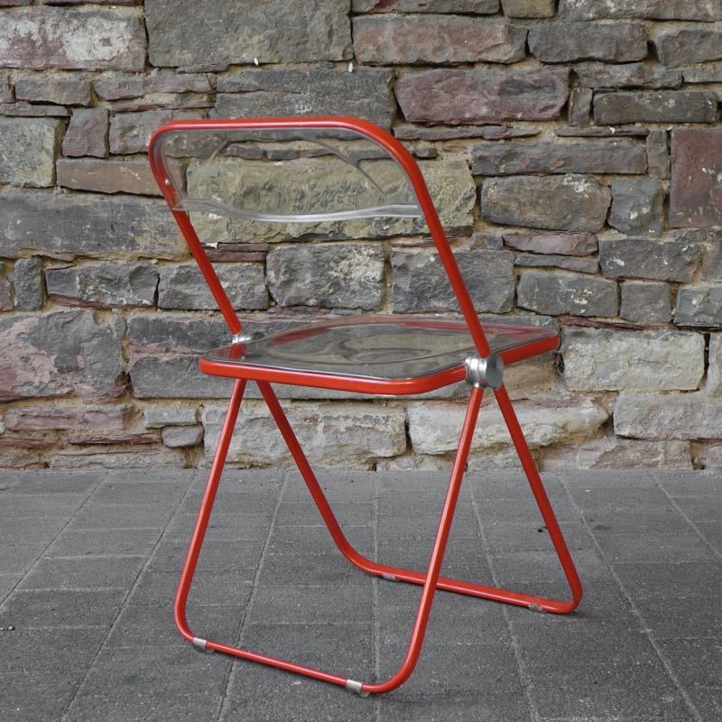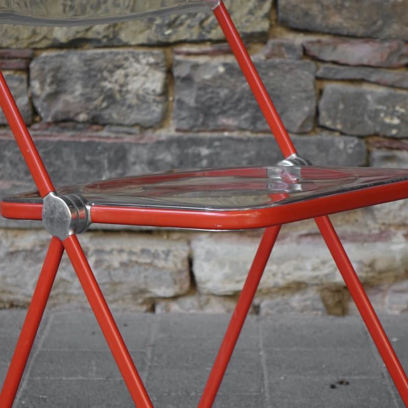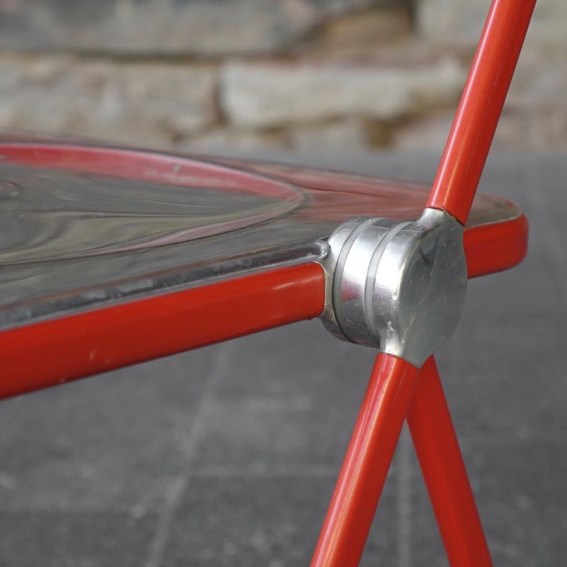 …..vintage Folding Chair “Plia”, Anomina Castelli Italy 60s….. Design: Giancarlo Piretti Gestell rot, Schalen transparent HxBxT: 75 x 46.5 x 48cm, Sitzhöhe 44cm bezeichnet mit Firmenmarke sehr guter vintage Zustand verkauft/sold