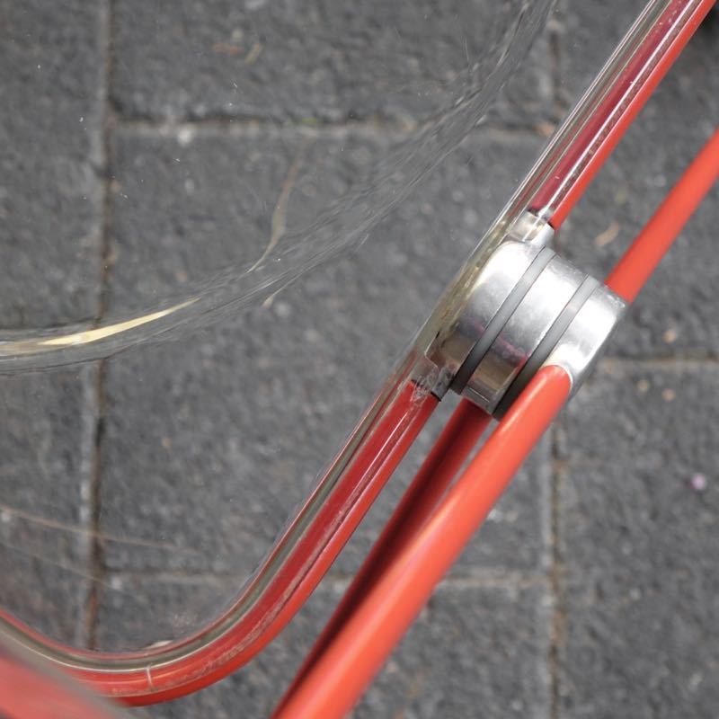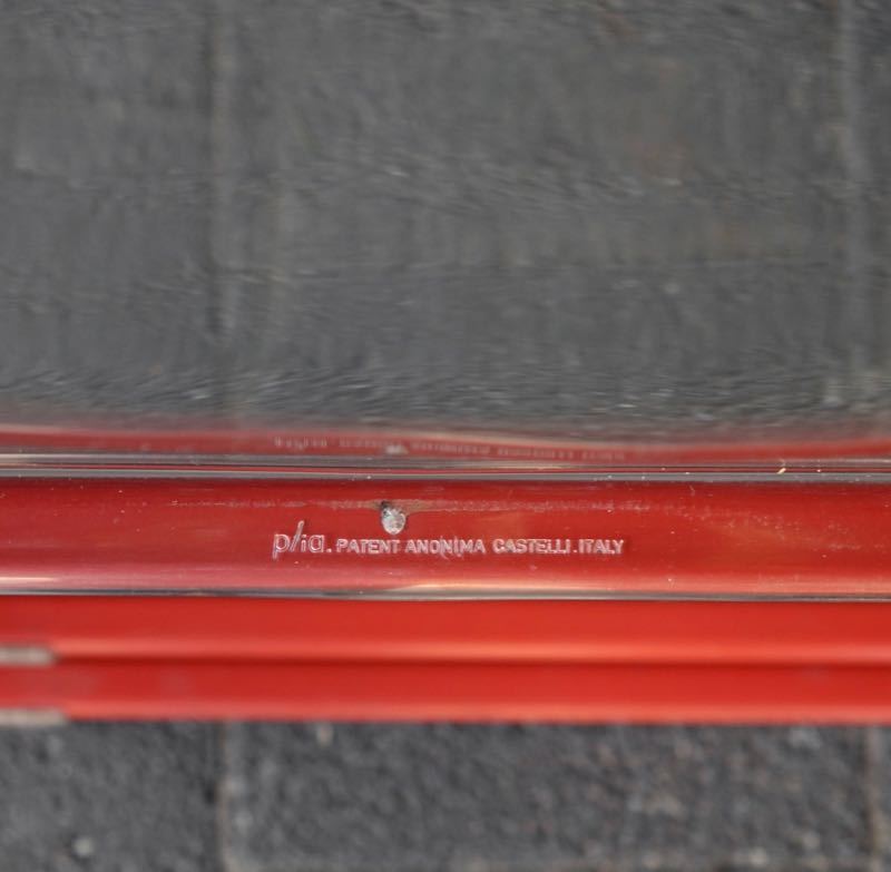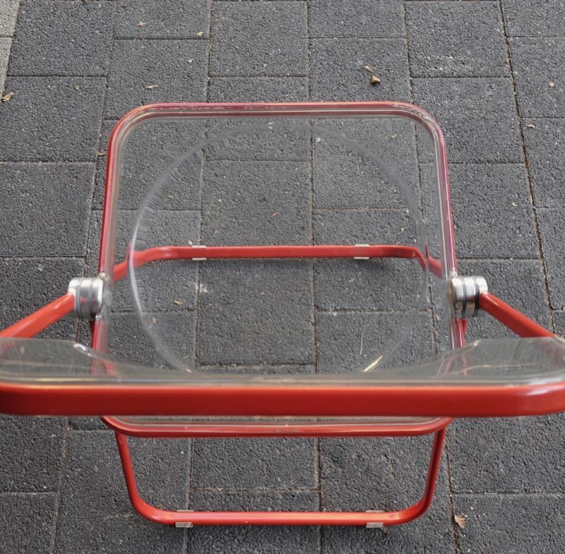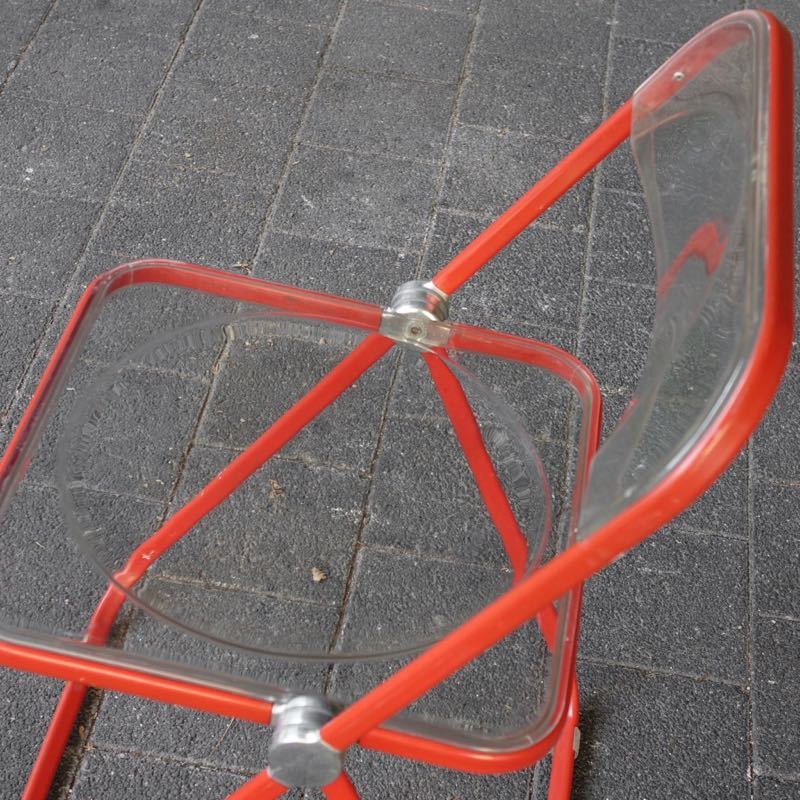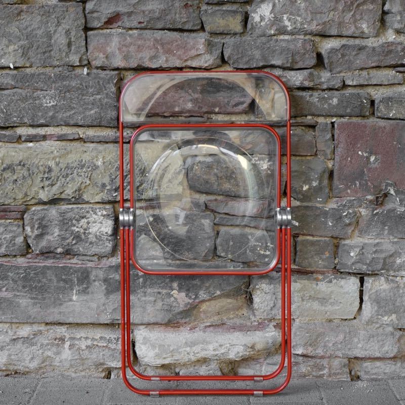 …..vintage Folding Chair “Plia”, Anomina Castelli Italy 60s….. Design: Giancarlo Piretti Gestell rot, Schalen transparent HxBxT: 75 x 46.5 x 48cm, Sitzhöhe 44cm bezeichnet mit Firmenmarke sehr guter vintage Zustand verkauft/sold