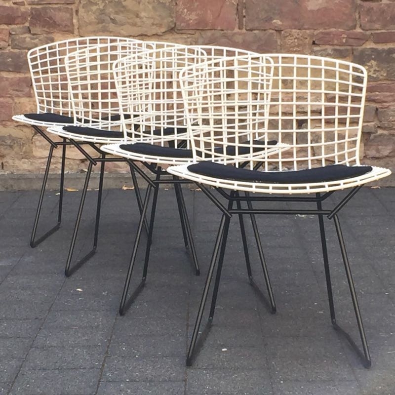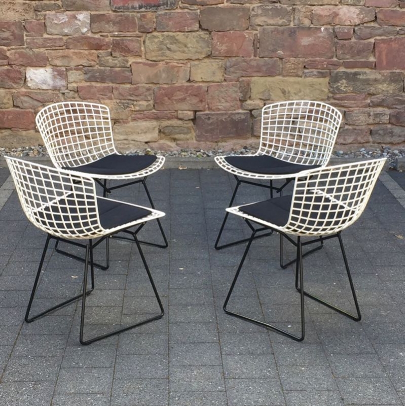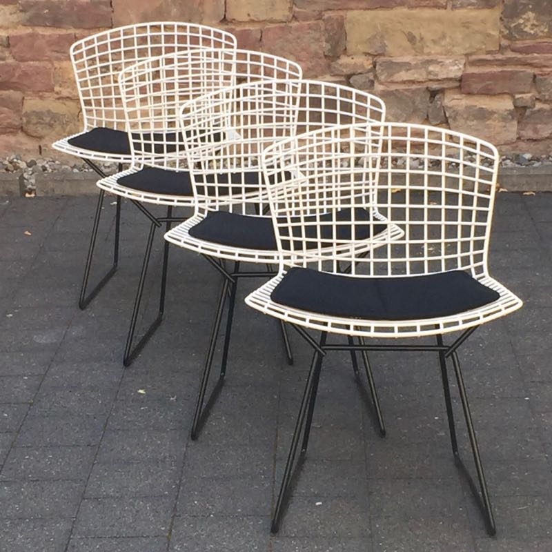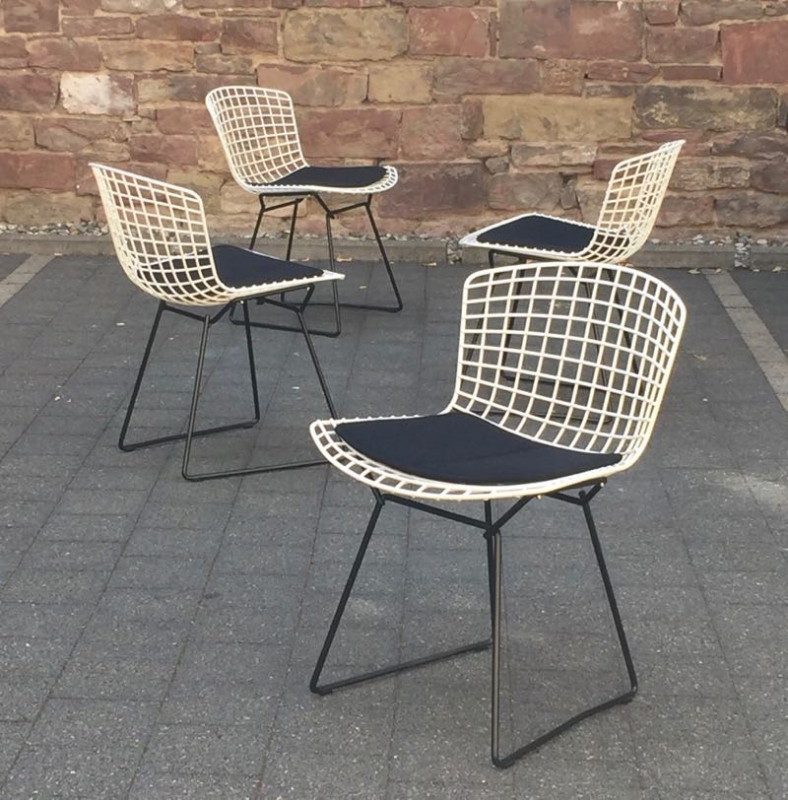 …..Set von 4 vintage HARRY BERTOIA Side Chairs, Knoll International….. weiß/schwarz, originale Polster alle in top Zustand verkauft/sold