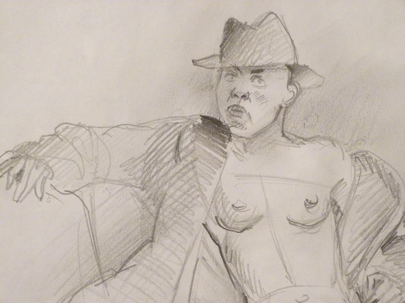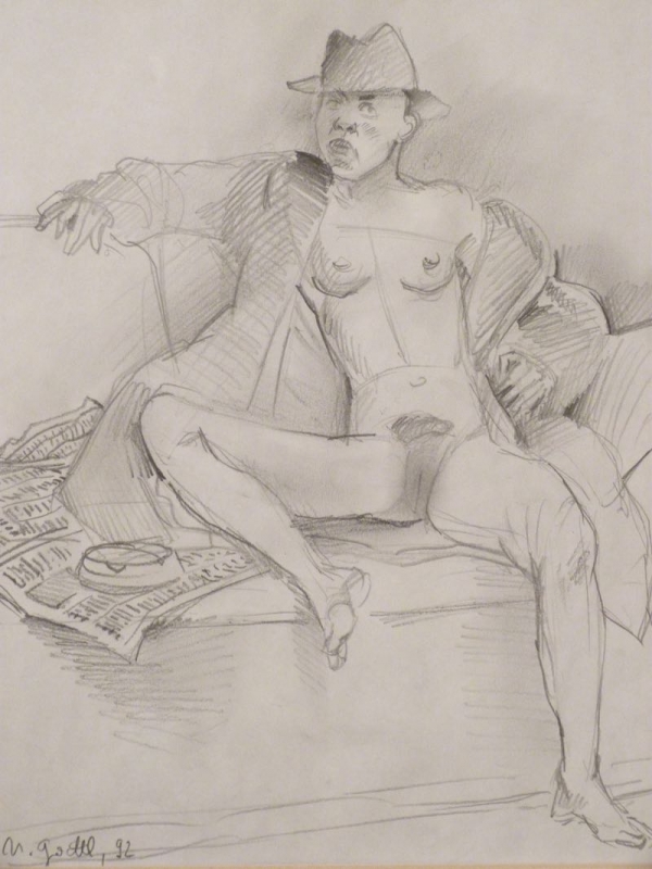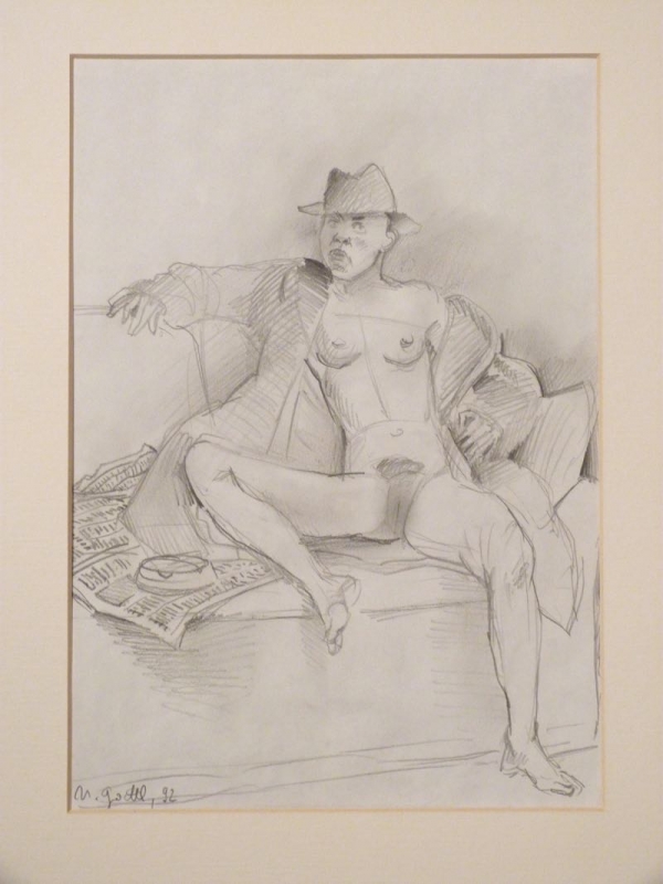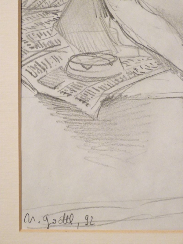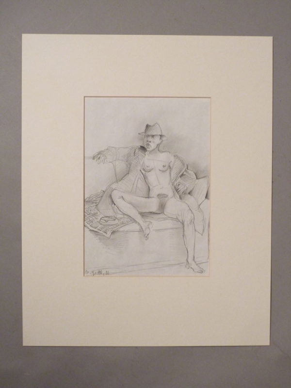 …..HELMUT GOETTL, Handzeichnung von 1992, sitzender Frauenakt mit Hut…..