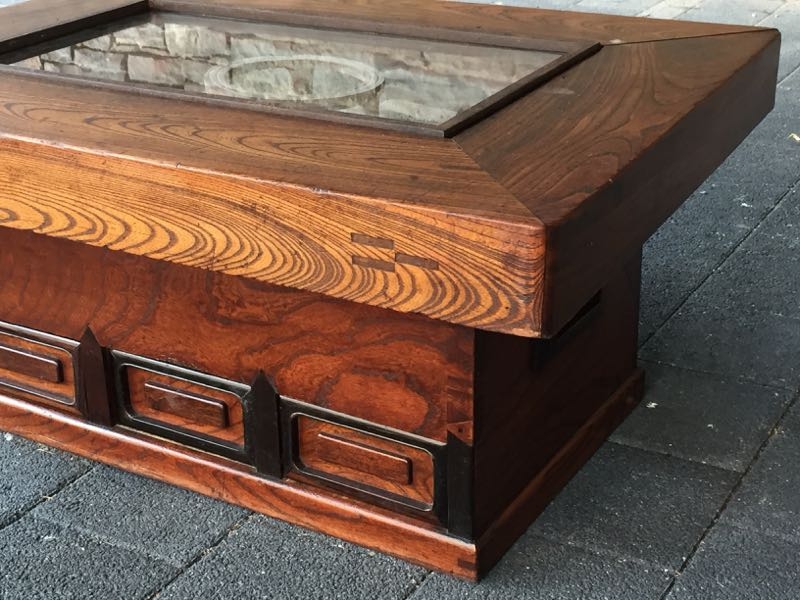 durch eine ergänzte Glasplatte als Couchtisch verwendbar