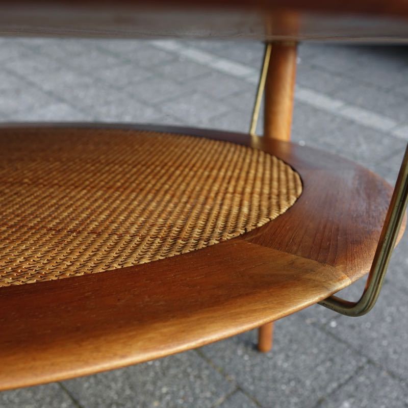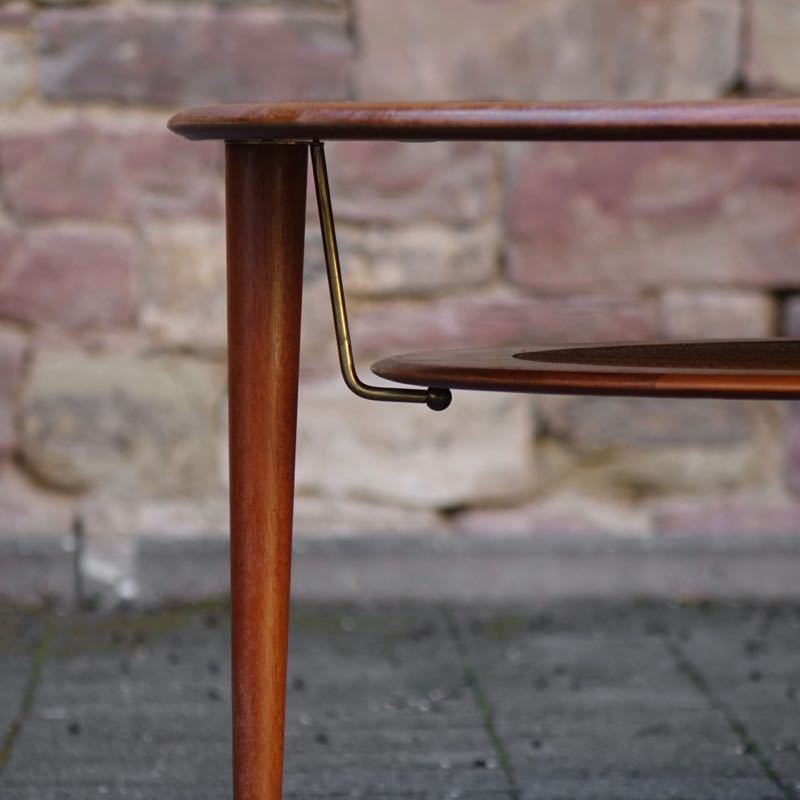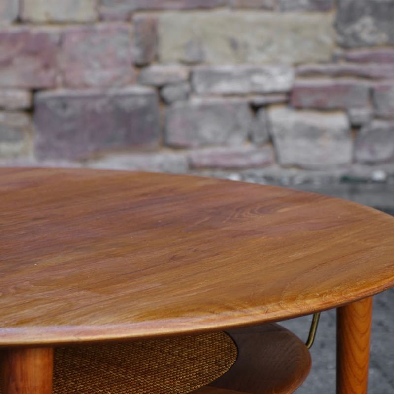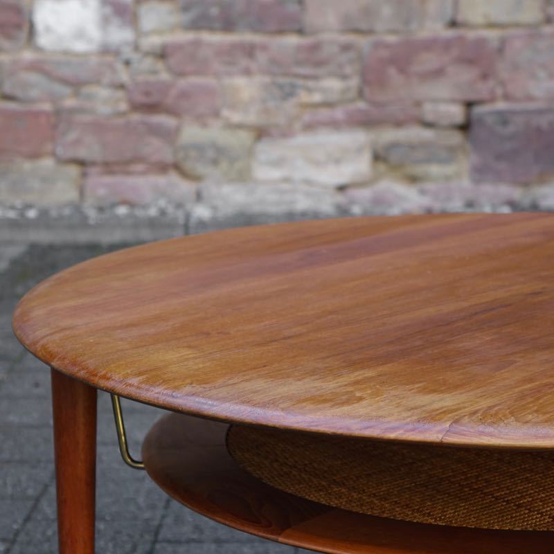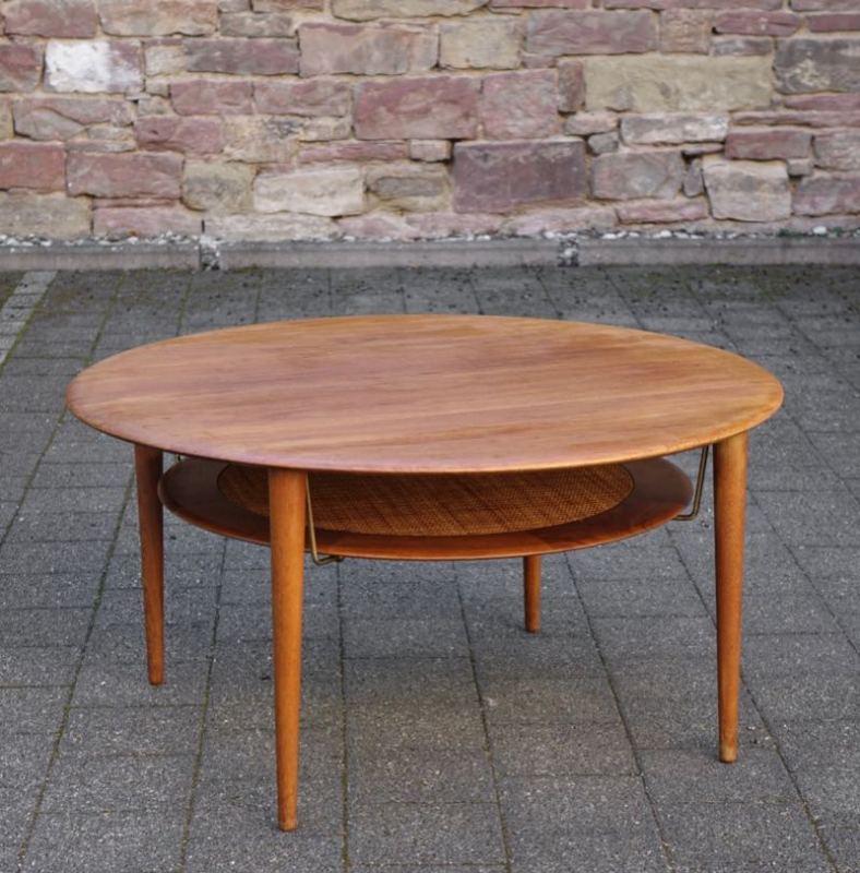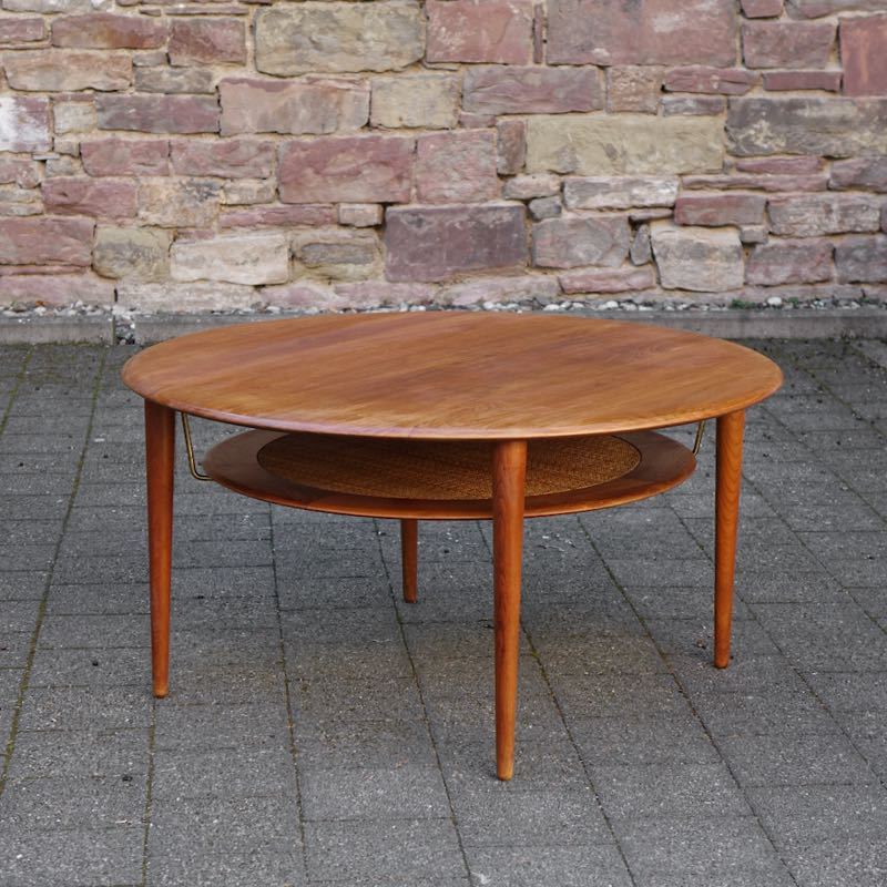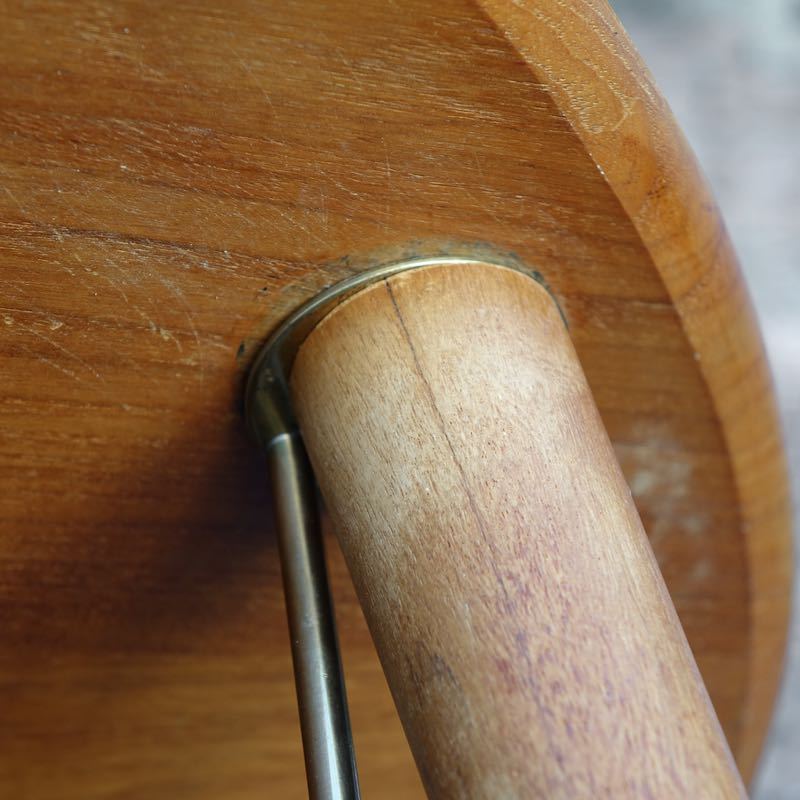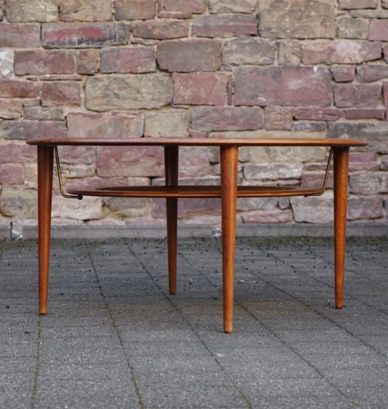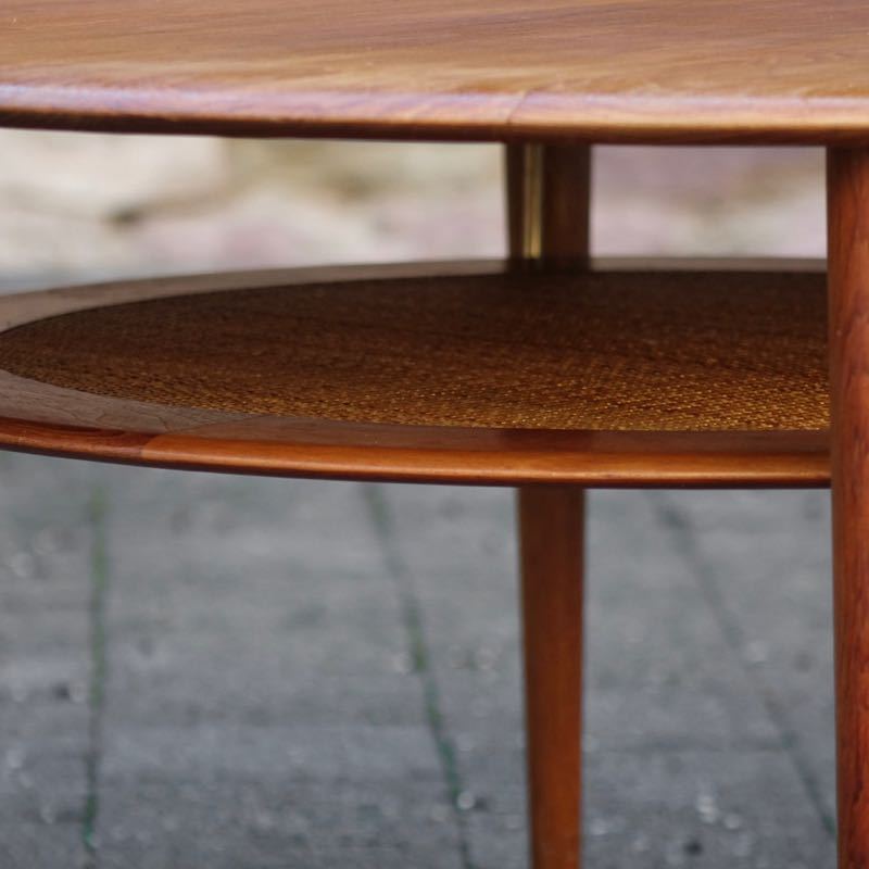 …..vintage Coffee table, France & Daverkosen Denmark 50s….. Design: Peter Hvidt & Orla Mølgaard-Nielsen Teakholz Höhe 50cm, Ø 99.5cm Firmenplakette an der Unterseite guter vintage Zustand verkauft/sold
