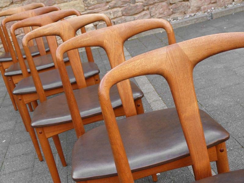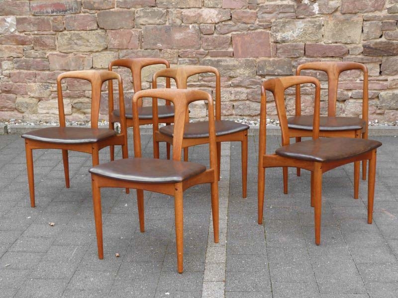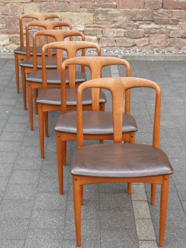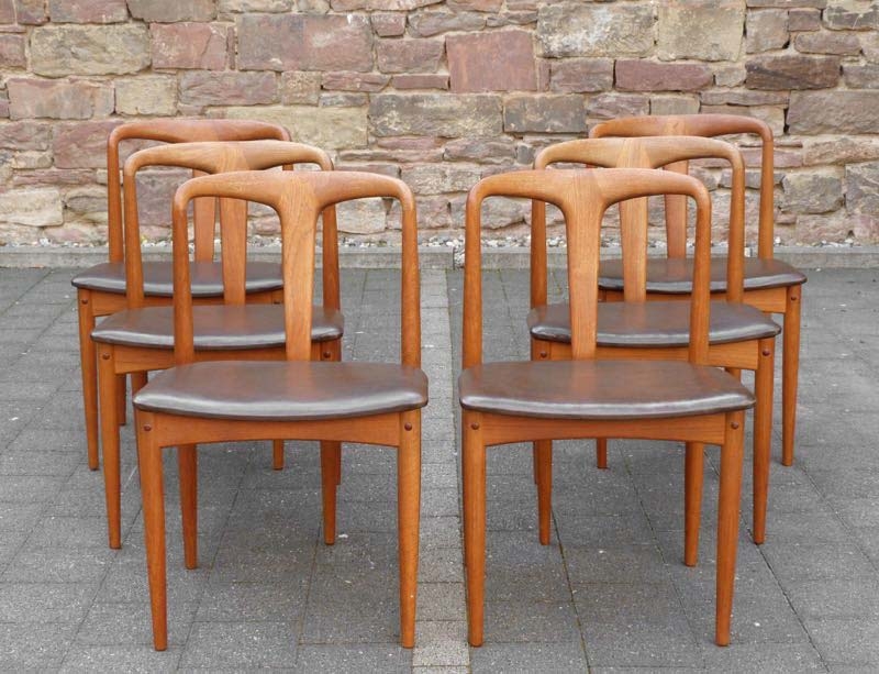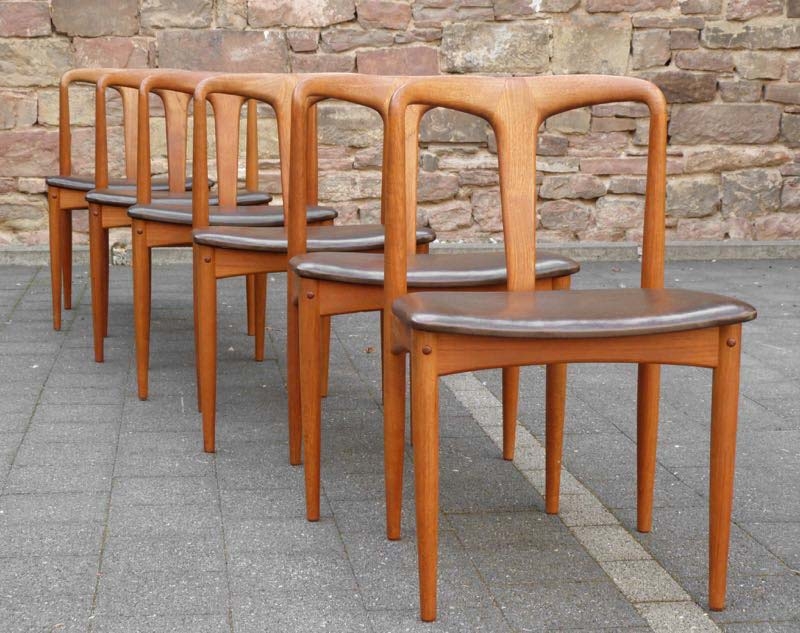 …..6 vintage Dining Chairs “Juliane”, Johannes Andersen, Uldum Møbelfabrik Denmark 60s….. Teakholz HxBxT: 77 x 50 x 48cm, Sitzhöhe 45cm ein Stuhl mit Reparaturstellen (Fotos) verkauft/sold