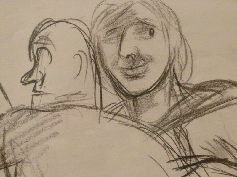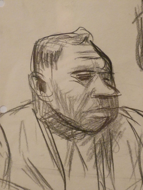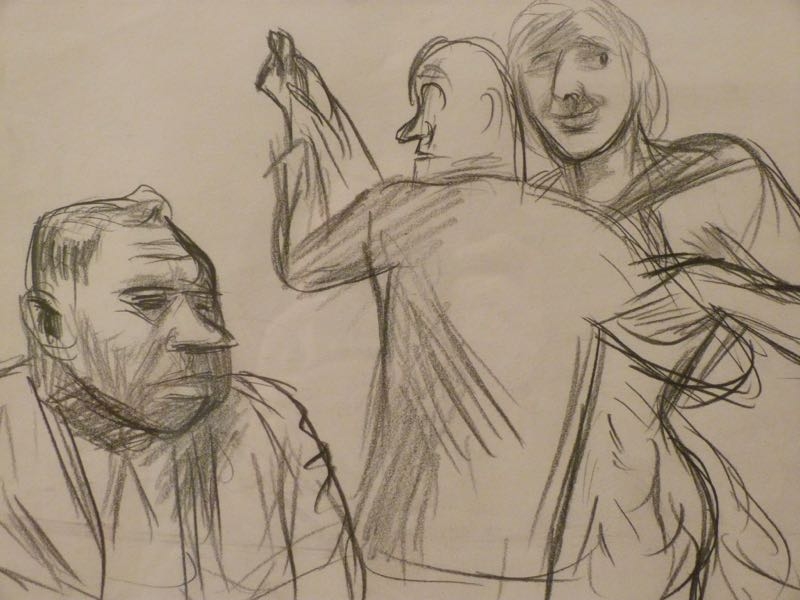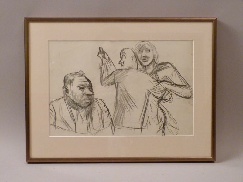 …..KARL HUBBUCH, originale Bleistiftskizze, tanzendes Paar mit Mann…..