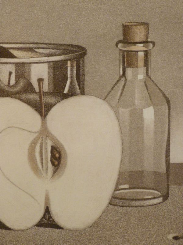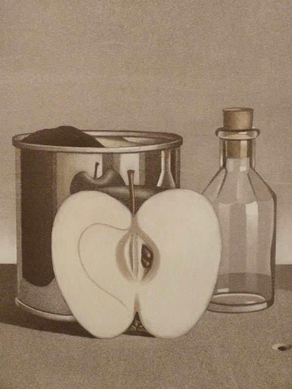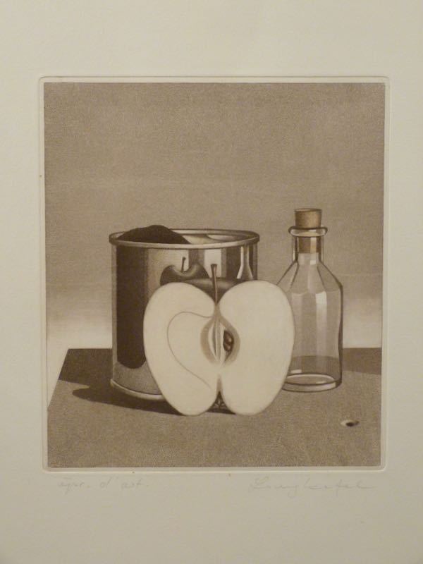 KLAUS LANGKAFEL 1941 Oberhausen – 2007 Karlsruhe Farbradierung, Stillleben mit Apfel Darstellung 19.5 x 17cm Blattgröße 37.8 x 33.8cm rechts unten handsigniert links „epr. d’art” Rahmen, 51 x 41cm guter Zustand verkauft/sold