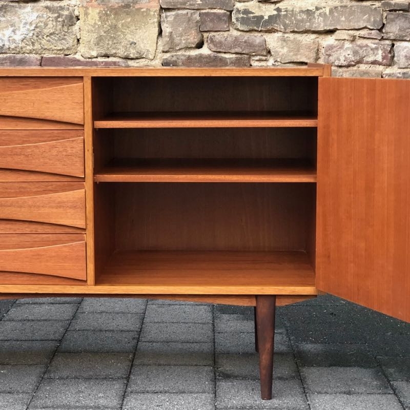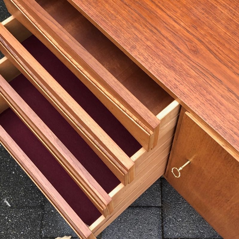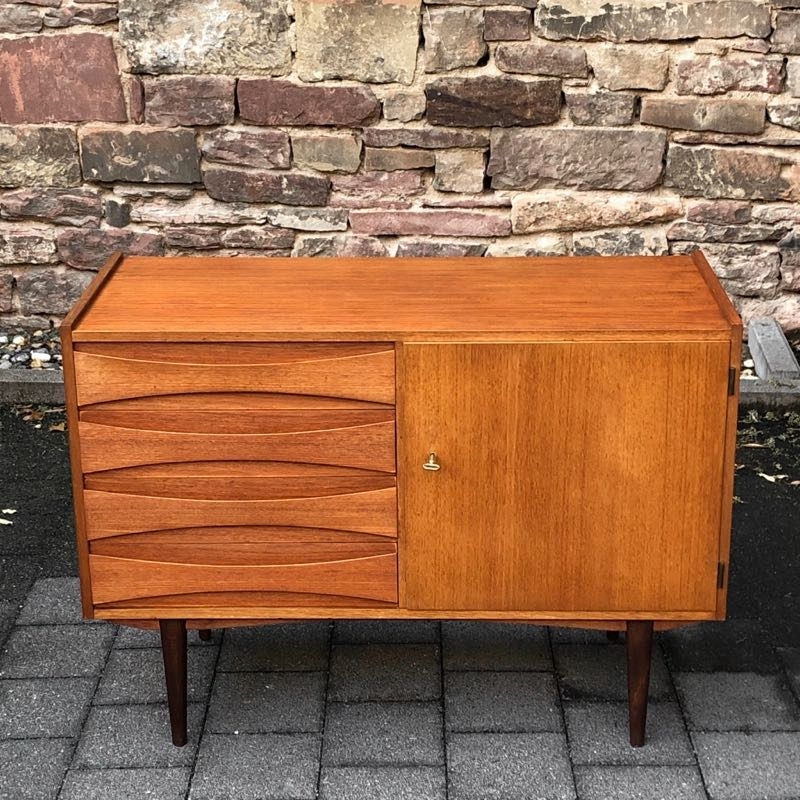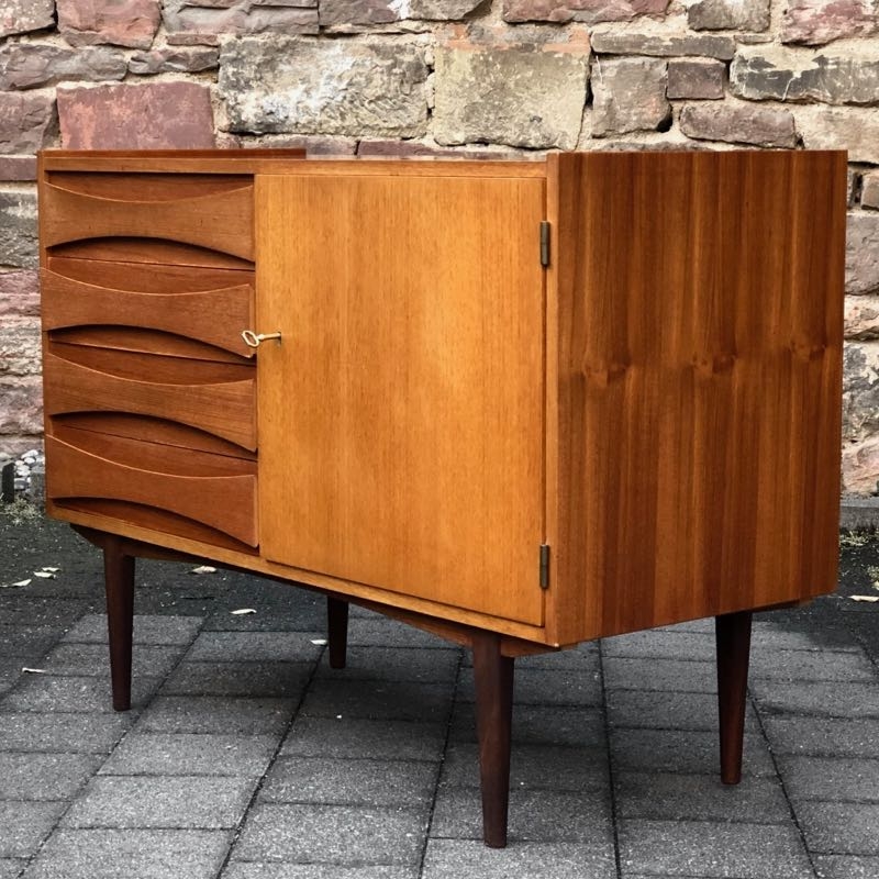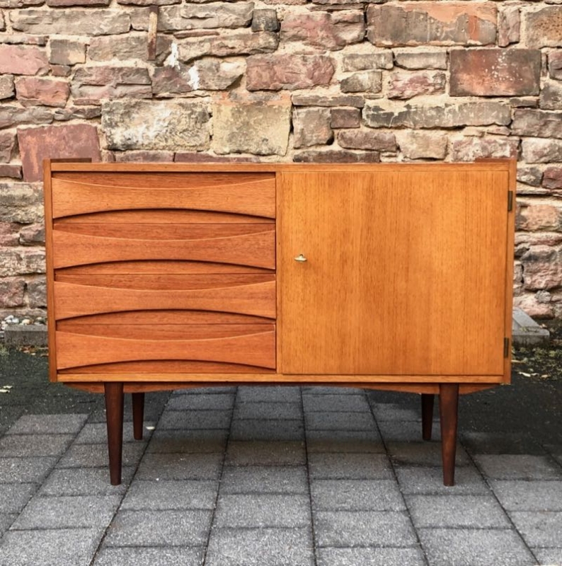 …..kleines Teak-Sideboard, deutsch Matthias Koch 50s/60s….. im dänischen Stil aus Teakfurnier HxBxT: 72 x 100 x 42cm guter vintage Zustand verkauft/sold