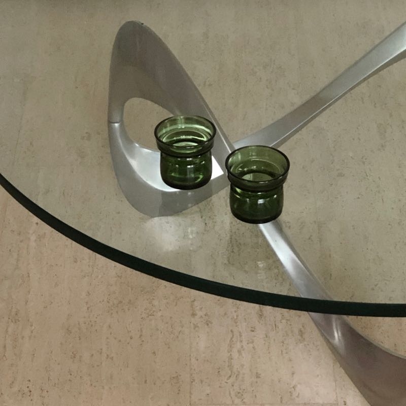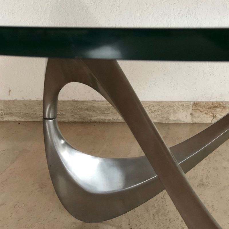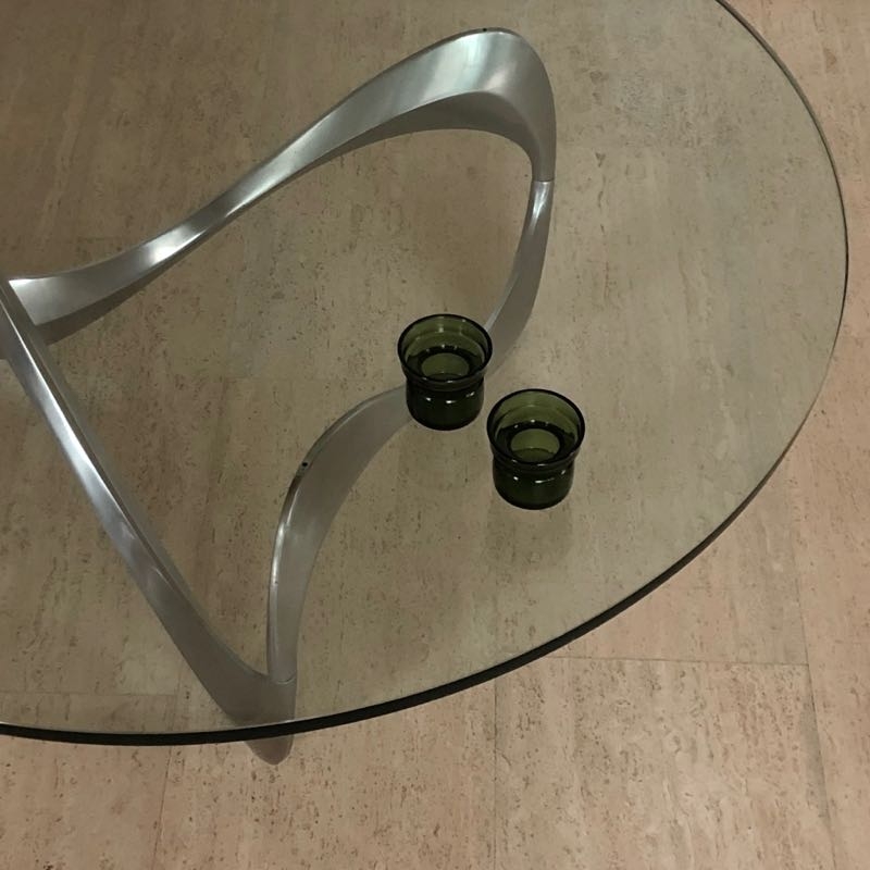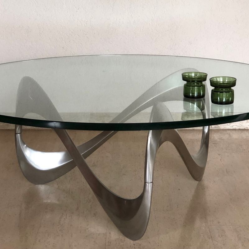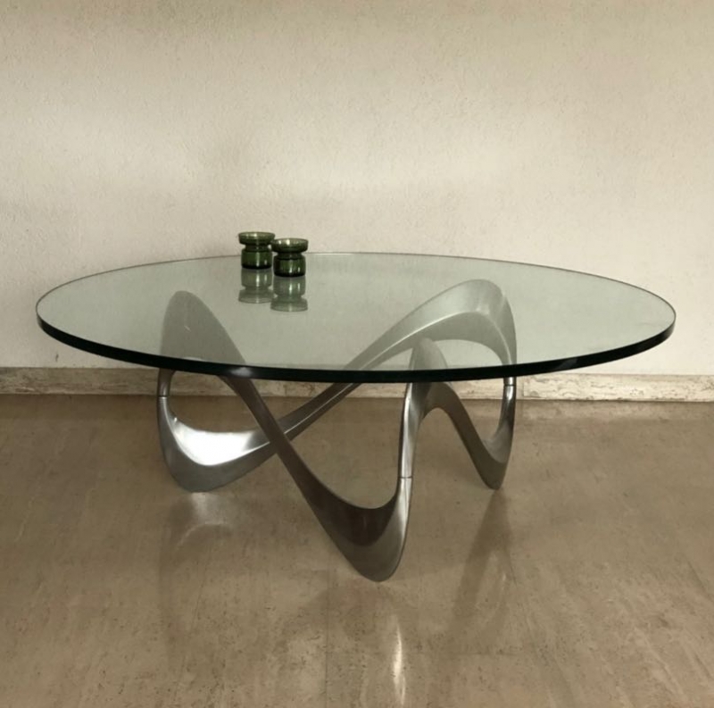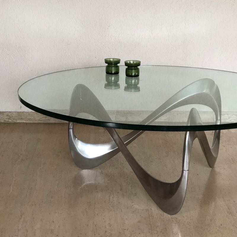 …..Couchtisch “SNAKE”, Design Knut Hesterberg, Ronald Schmitt 60er Jahre….. Aluminiumgestell, runde Glasplatte Ø 110cm, Stärke 19mm Gesamthöhe 40cm guter vintage Zustand, Platte mit wenigen feinen Kratzspuren verkauft/sold
