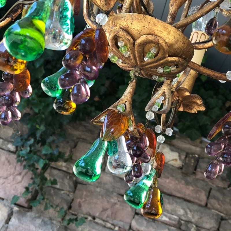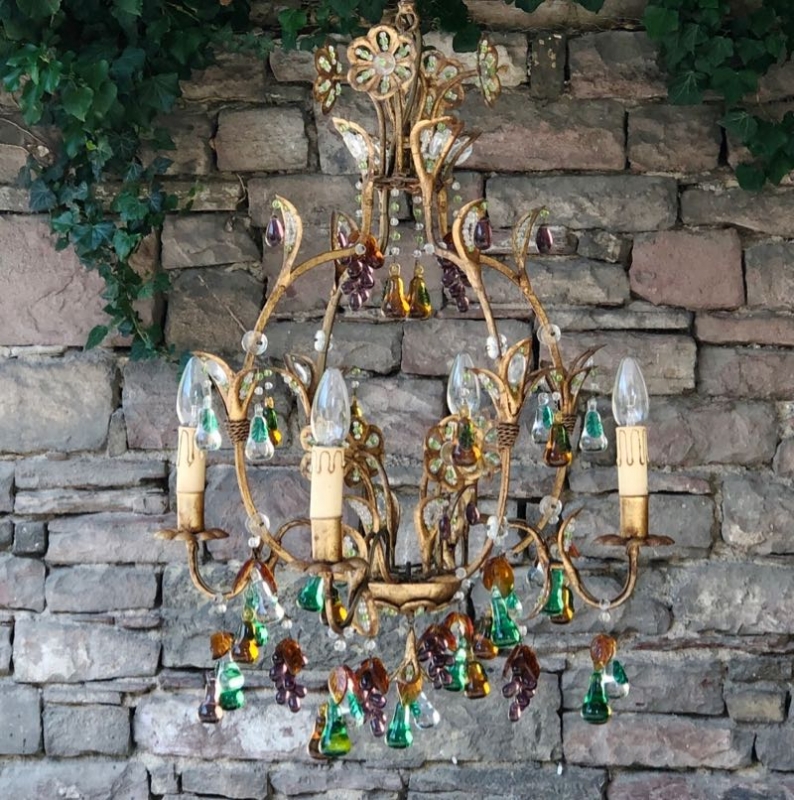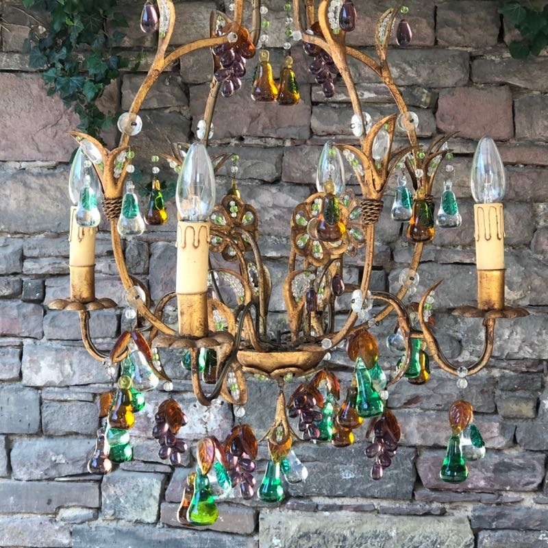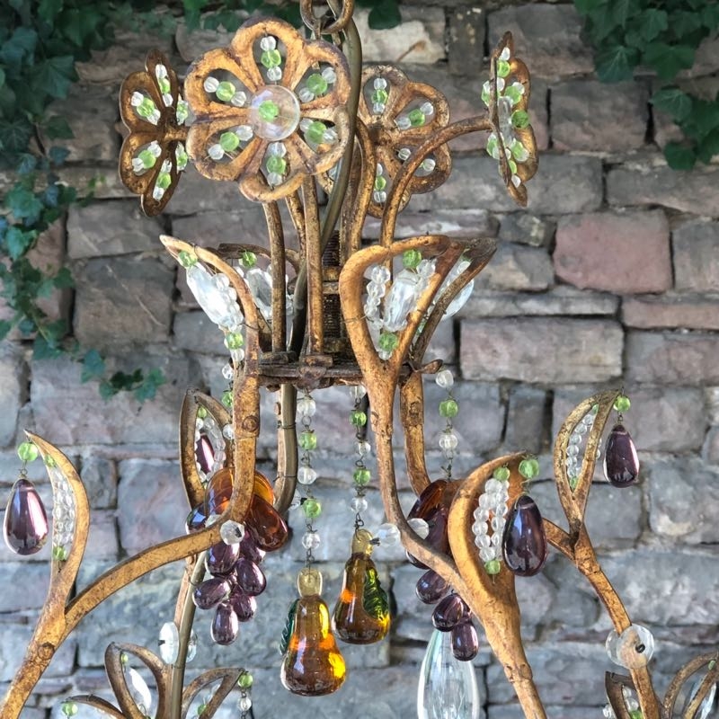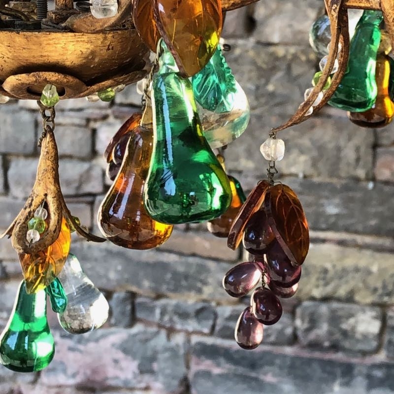 …..alter Kronleuchter, Italien 50er/60er Jahre….. Glasbehang in Form von Früchten Gesamthöhe 90cm, Ø 50cm 4x E14 Fassungen sehr guter vintage Zustand verkauft/sold