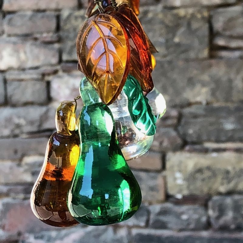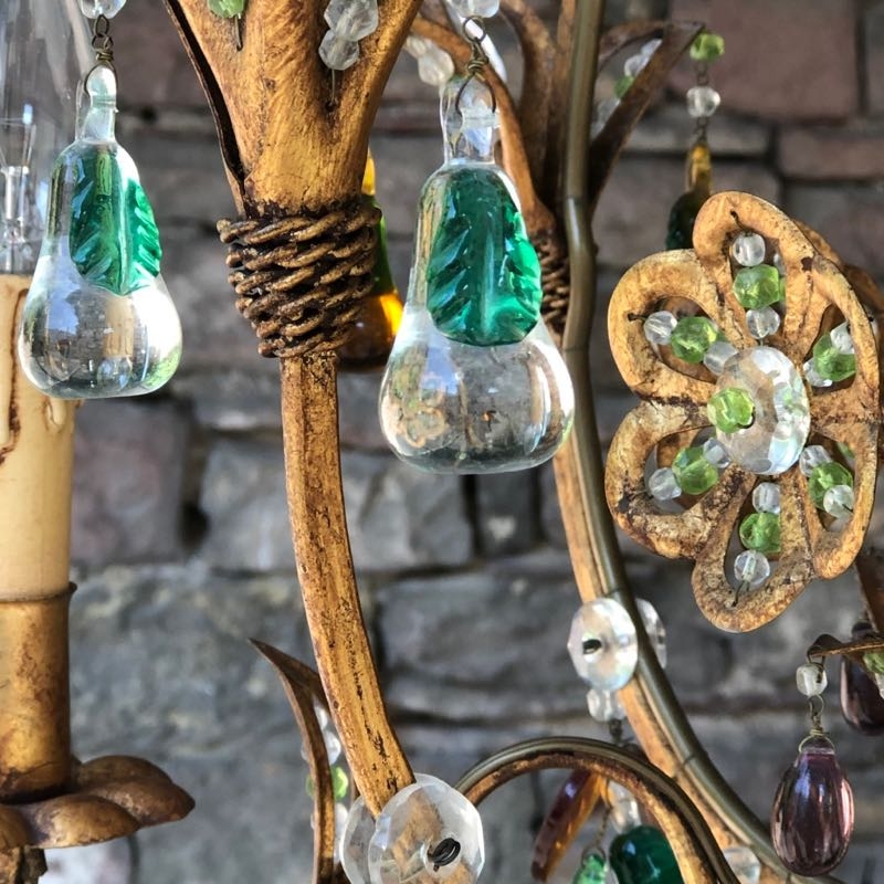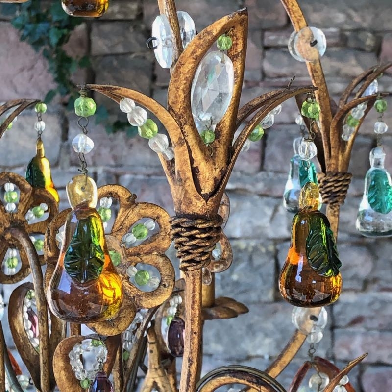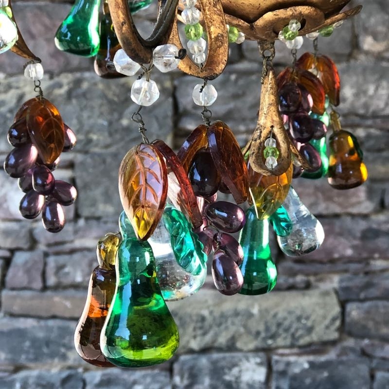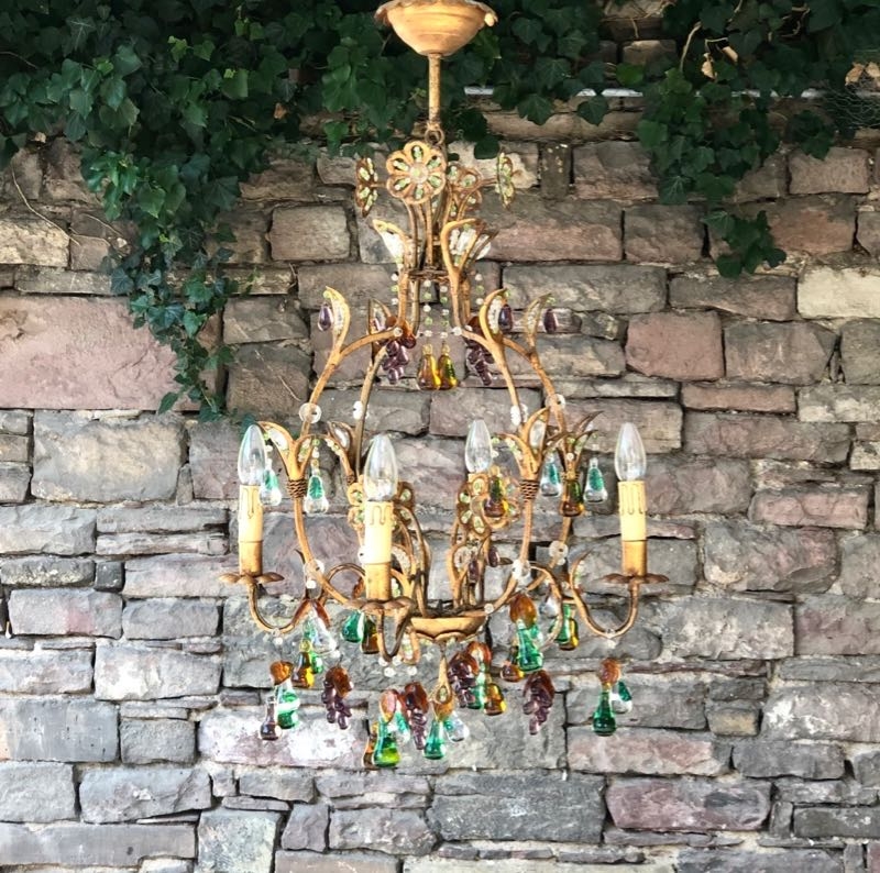 …..alter Kronleuchter, Italien 50er/60er Jahre….. Glasbehang in Form von Früchten Gesamthöhe 90cm, Ø 50cm 4x E14 Fassungen sehr guter vintage Zustand verkauft/sold
