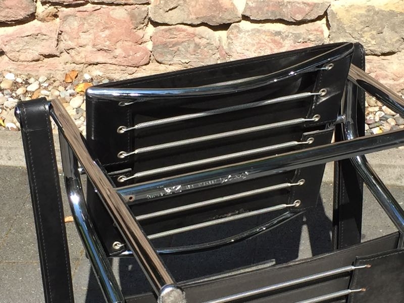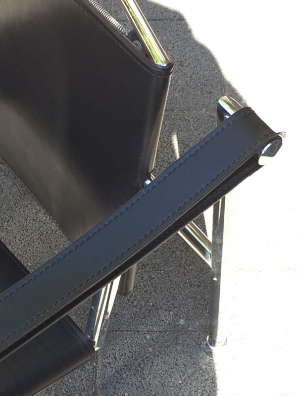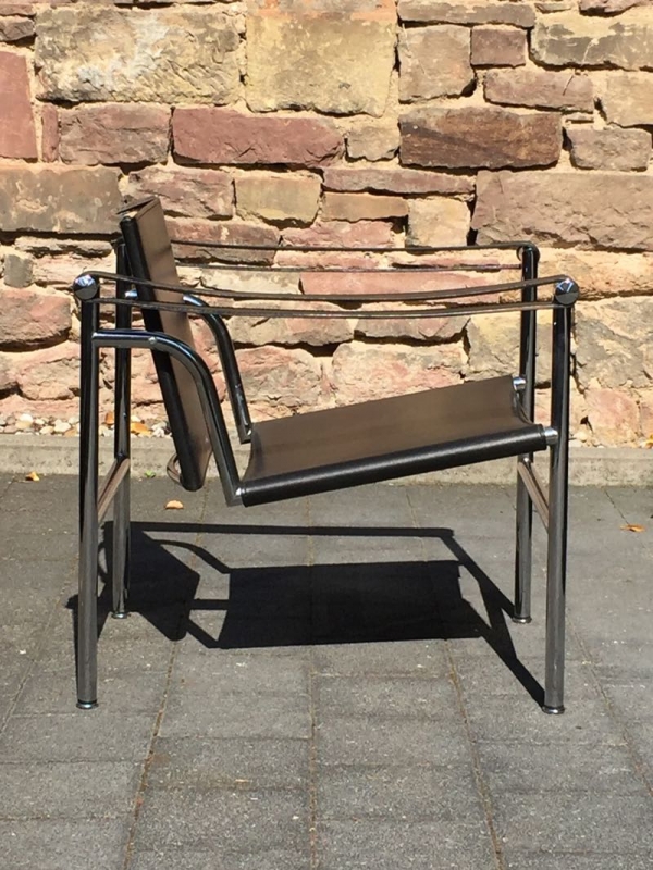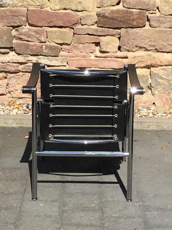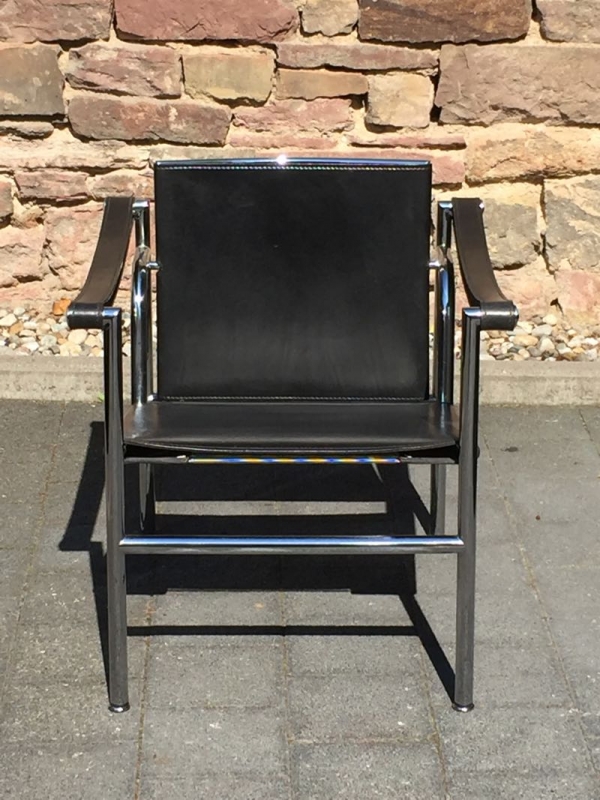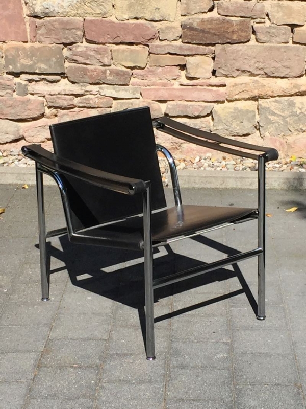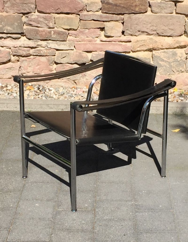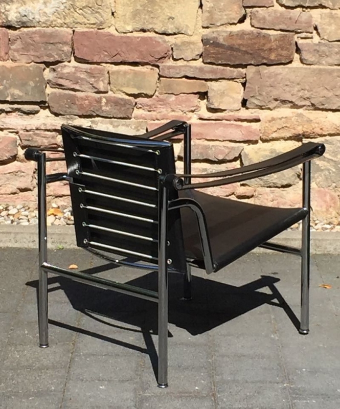 …..vintage LC1 ARMLEHNSESSEL, Cassina 90er Jahre….. Design: Le Corbusier, Pierre Jeanneret, Charlotte Perriand, 1928 Stahlrohr, verchromt, schwarzes Leder HxBxT: 65 x 60 x 65cm guter vintage Zustand verkauft/sold