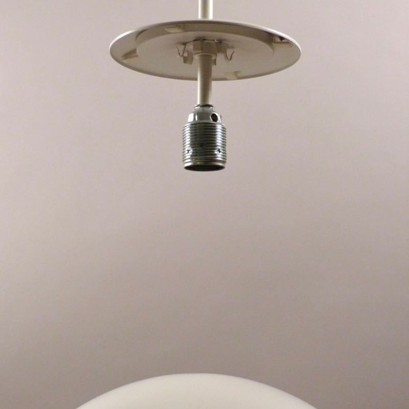…..vintage Sixties Deckenleuchte, Limburg 60s….. Kunststoff-Kugel weiße Metallfassung Ø 40cm eine E27 Fassung sehr guter vintage Zustand 2 Exemplare vorhanden 169.00 Euro (pro Stück)