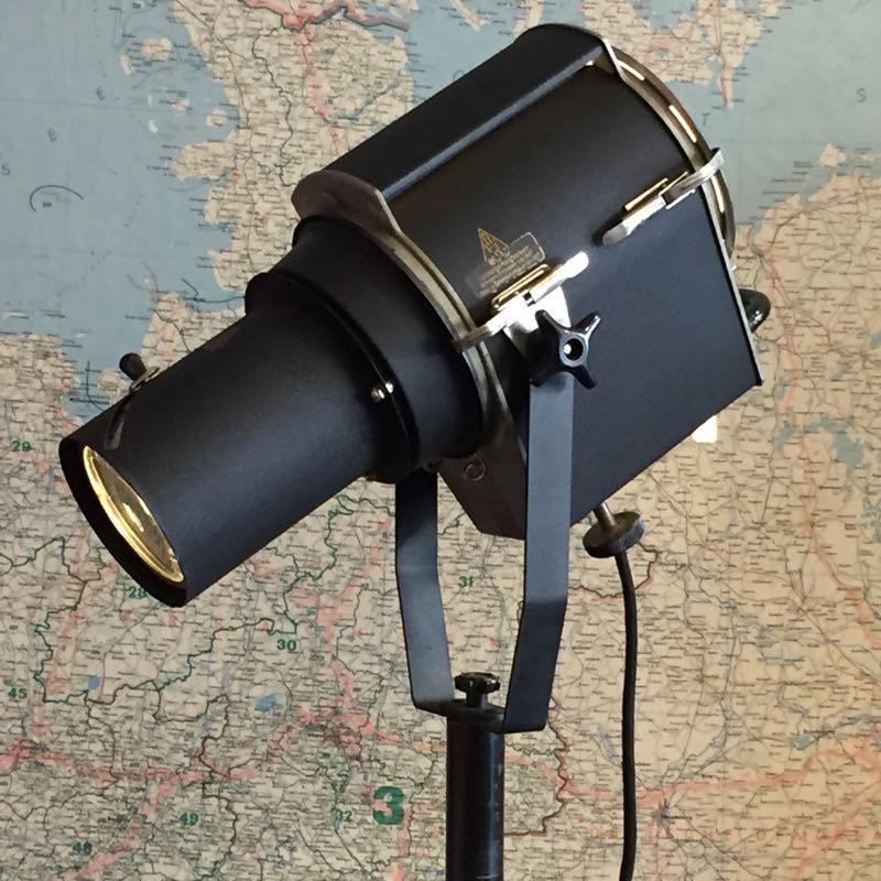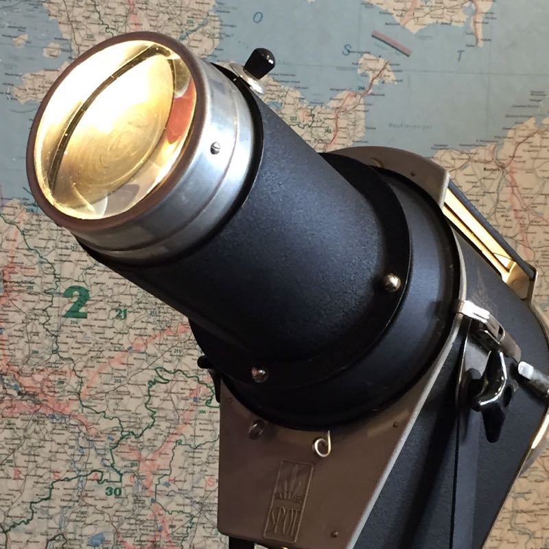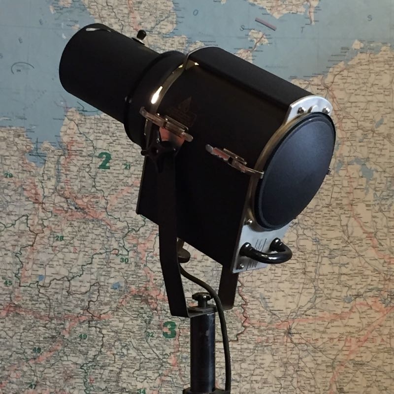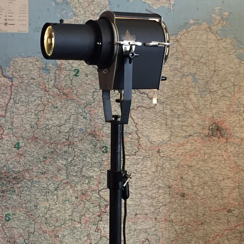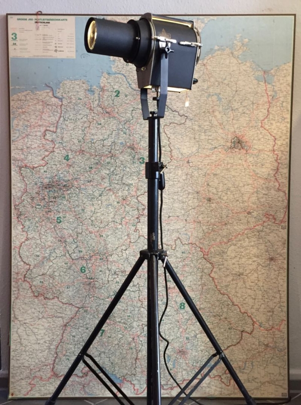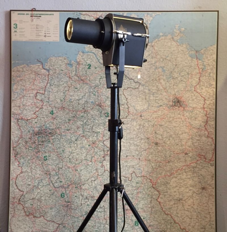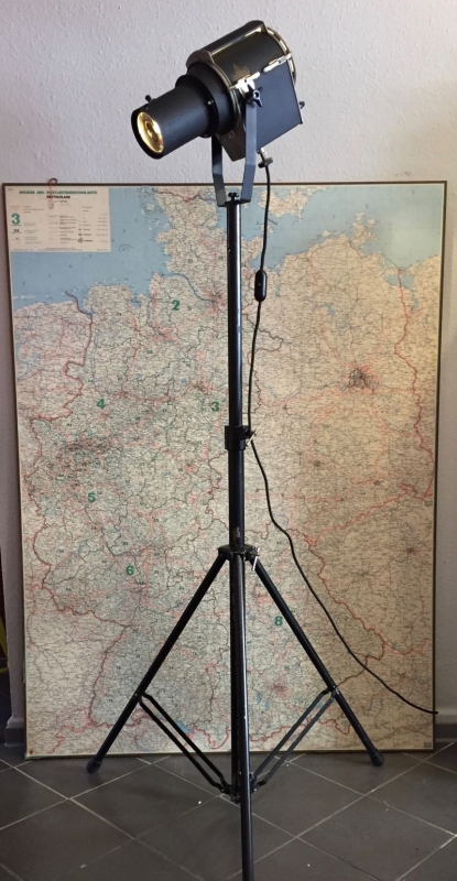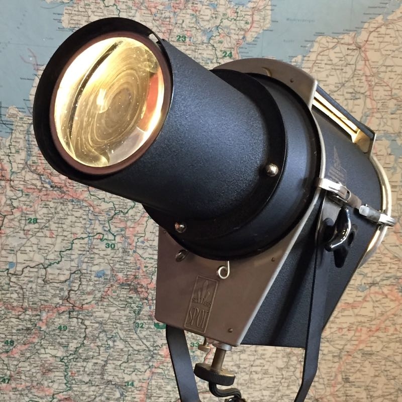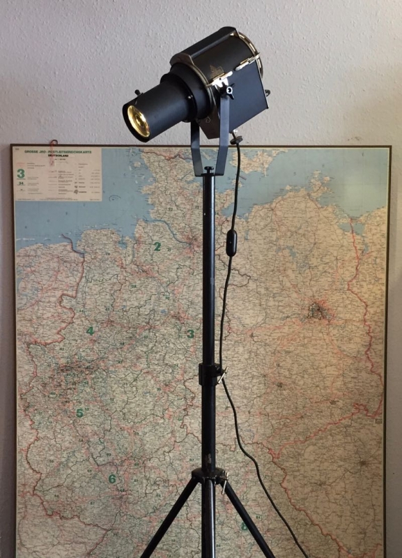 …..vintage THEATER-SPOTSTRAHLER, Firma Scher 50er Jahre….. neu elektrifiziert für handelsübliche Glühbirnen, E27 Fassung sehr guter vintage Zustand verkauft/sold