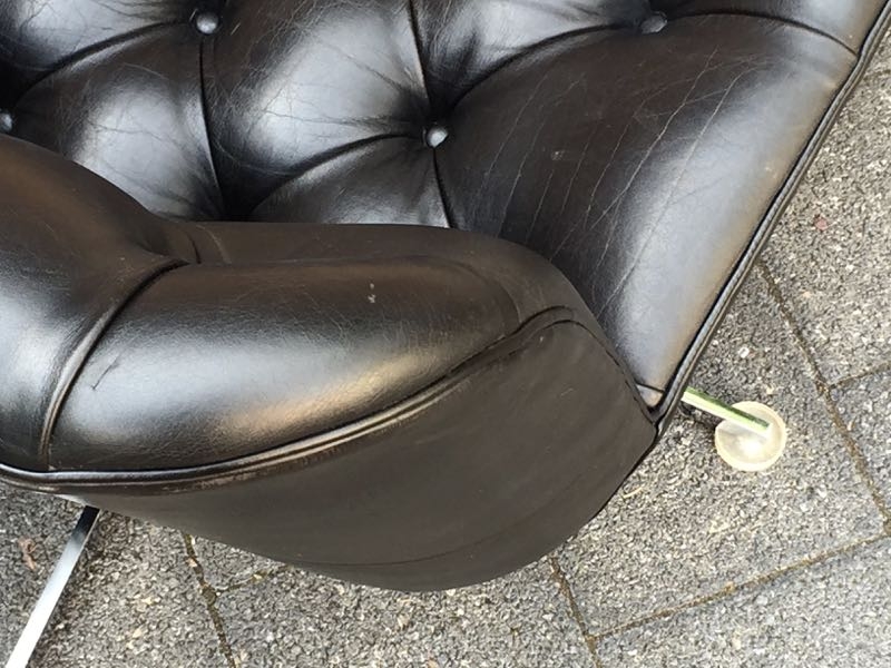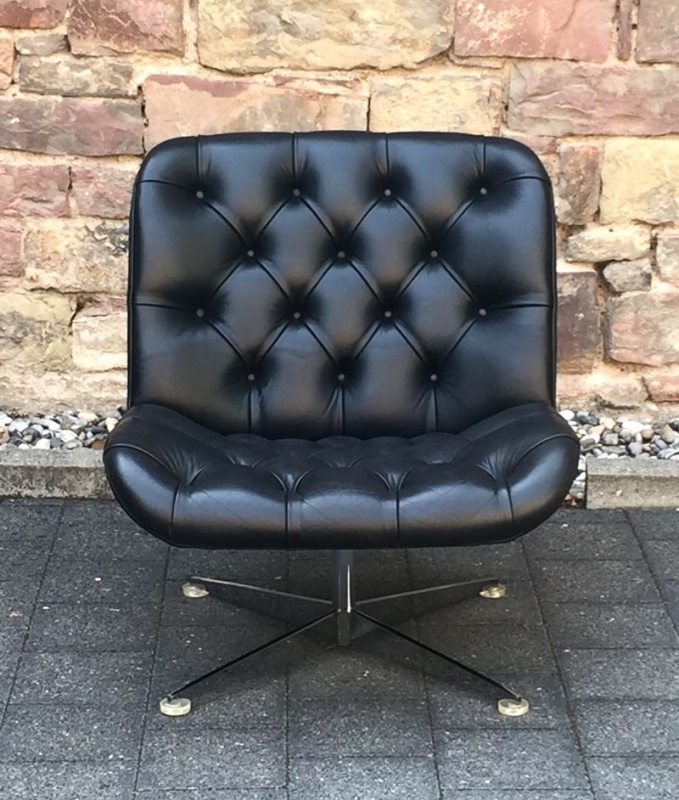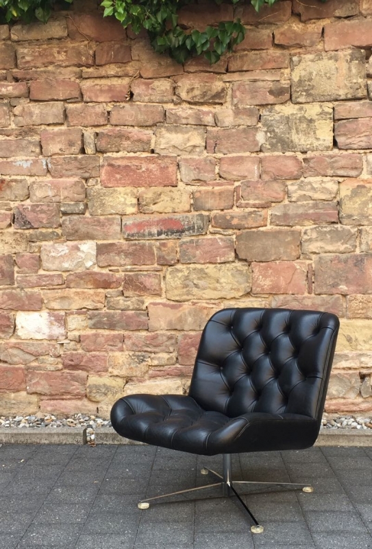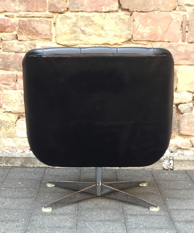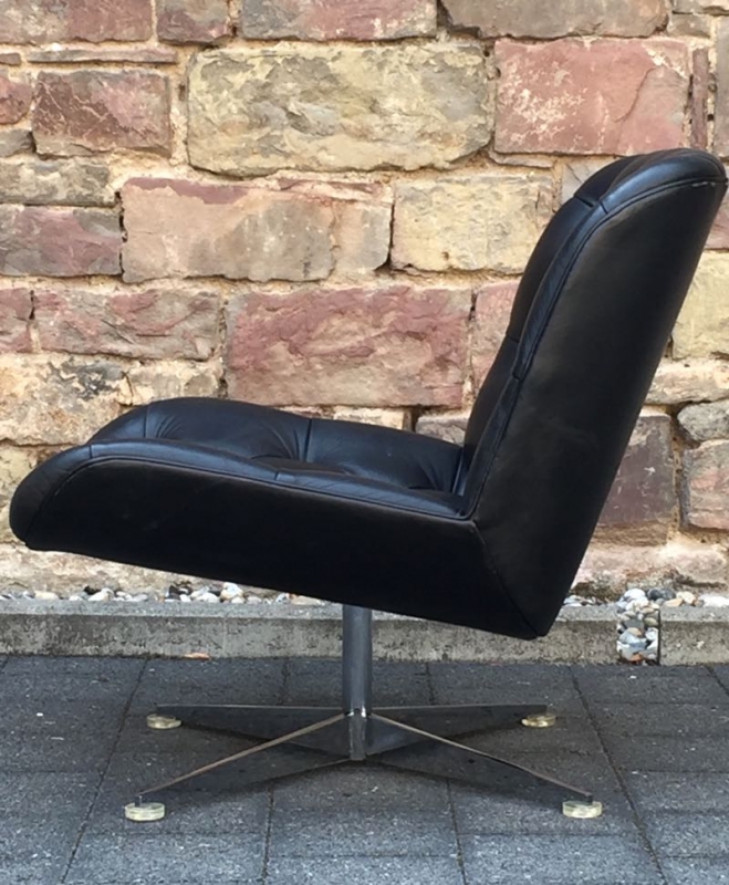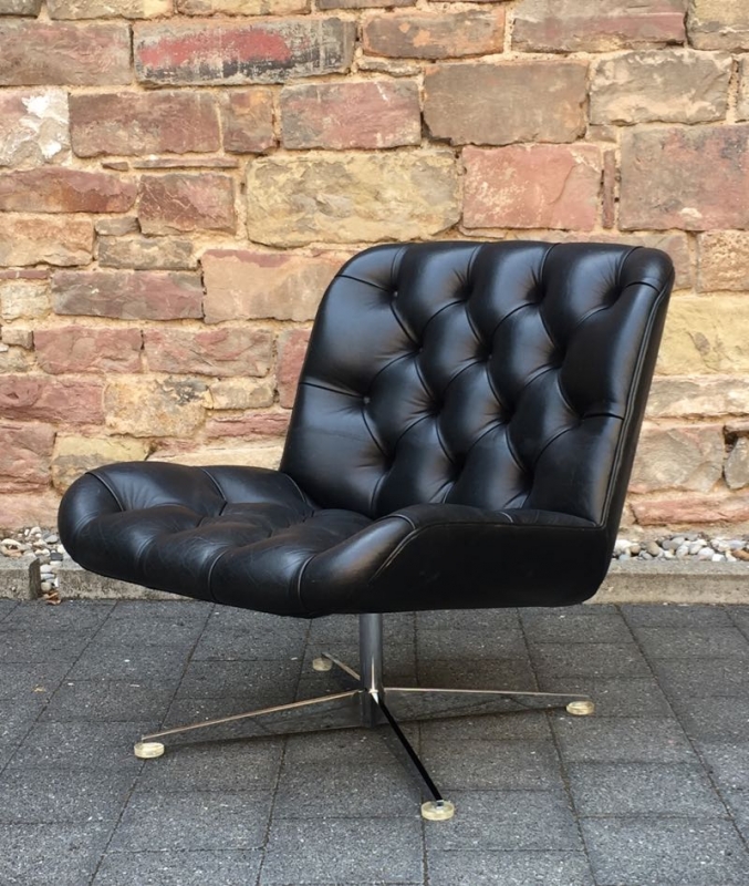 …..vintage SIXTIES LOUNGE CHAIR, Chesterfield-Look, deutsch 60er Jahre….. drehbares Metallgestell, verchromt, schwarzes Leder HxBxT: 72 x 66 x 79, Sitzhöhe ca. 36cm guter vintage Zustand verkauft/sold