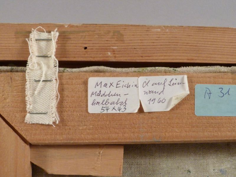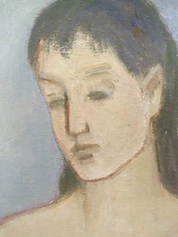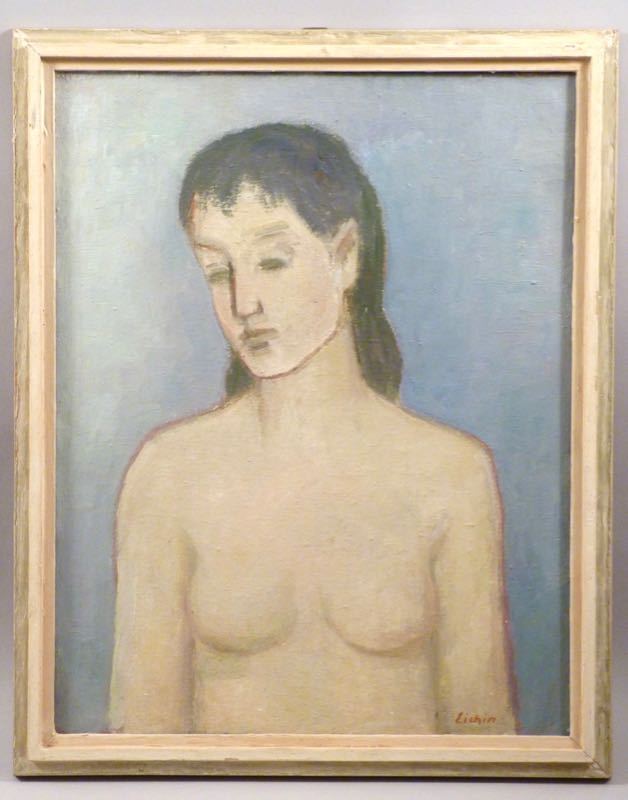 qualitätvolles Gemälde von 1960, Halbakt – Junges Mädchen