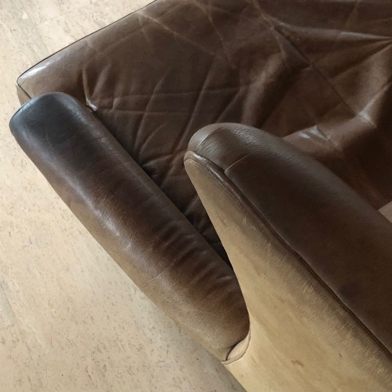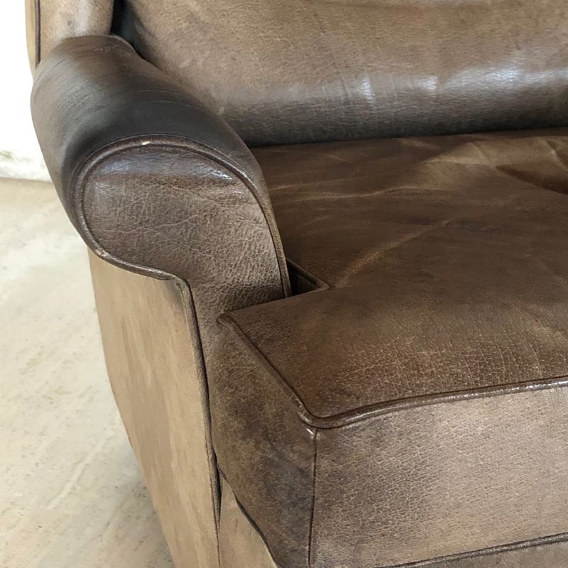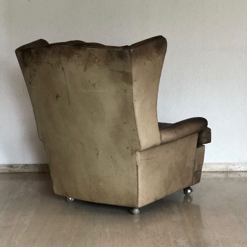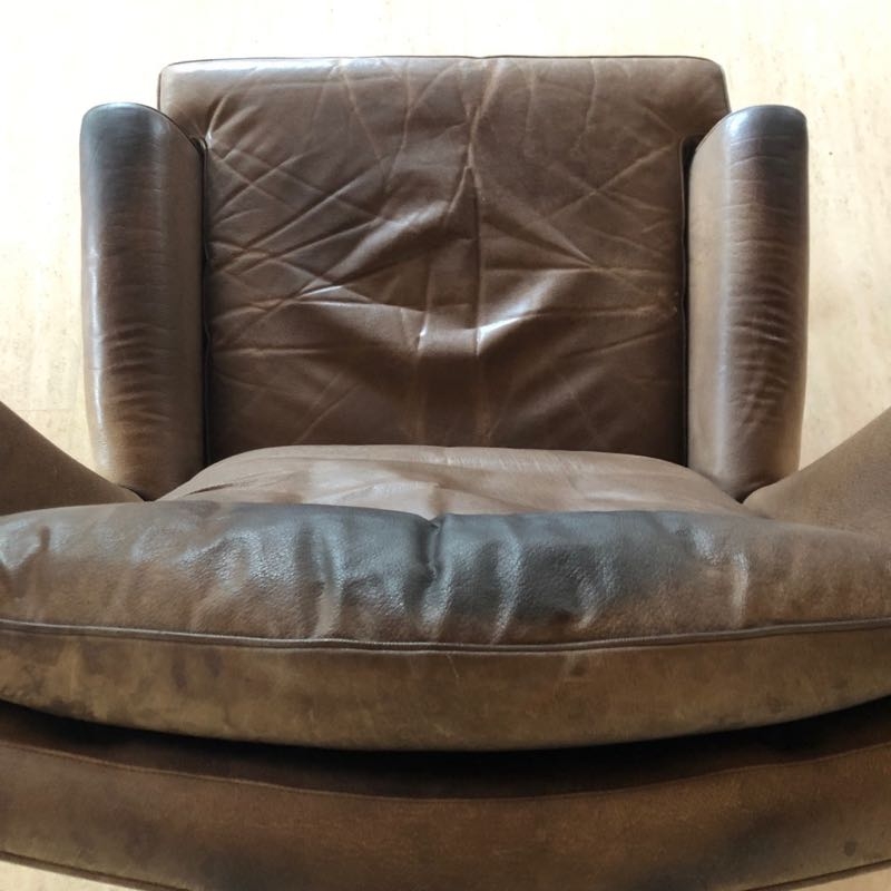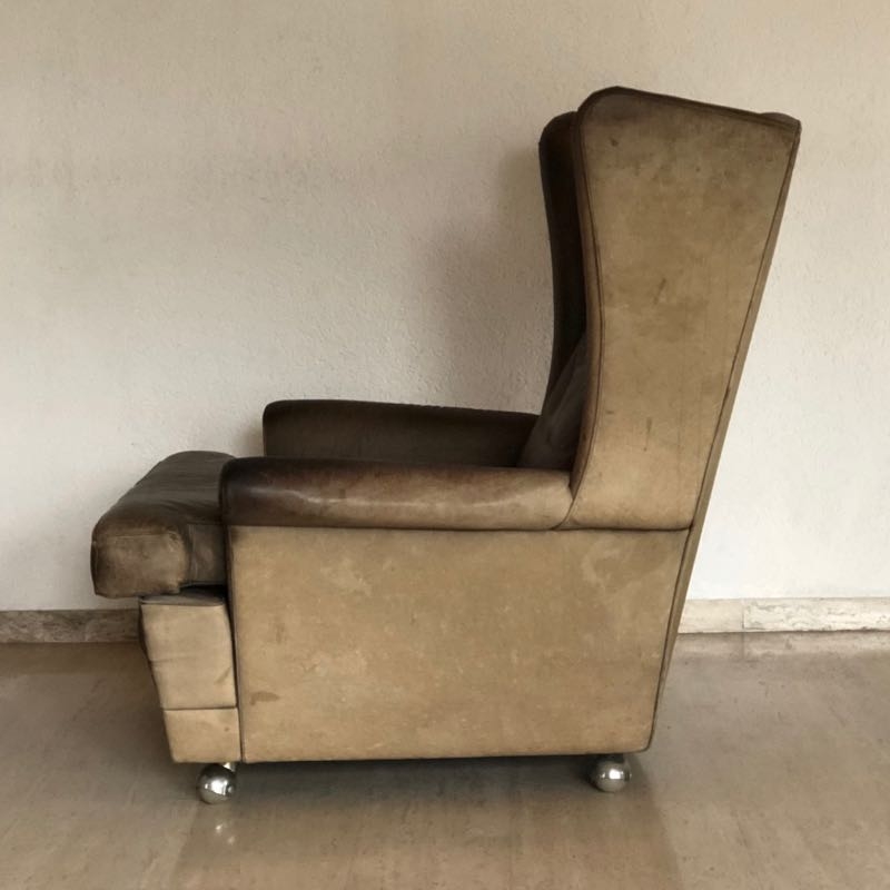 …..vintage OHRENSESSEL, 60er Jahre….. braunes Wasserbüffelleder HxBxT: 97 x 86 x 97cm, Sitzhöhe 42cm auf Rollen vintage Zustand mit Patina verkauft/sold