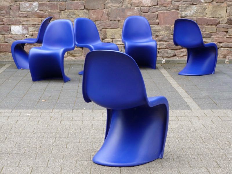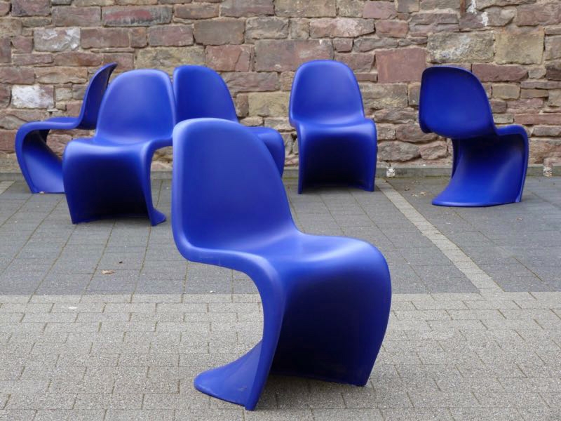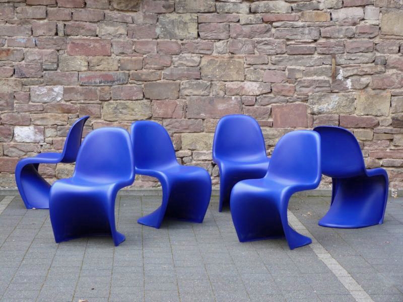 …..6 Panton Chairs, Vitra 2004….. Farbe: ocean blue HxBxT: 83 x 50 x 61cm, Sitzhöhe ca. 41cm bezeichnet mit Künstlersignatur, Firmenmarke und Datumsstempel unbeschädigt mit normalen Gebrauchsspuren, stellenweise leichte Kratzspuren verkauft/sold