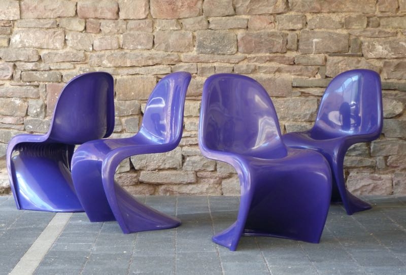 …..4 vintage PANTON CHAIRS, purple, Fehlbaum 70s…..