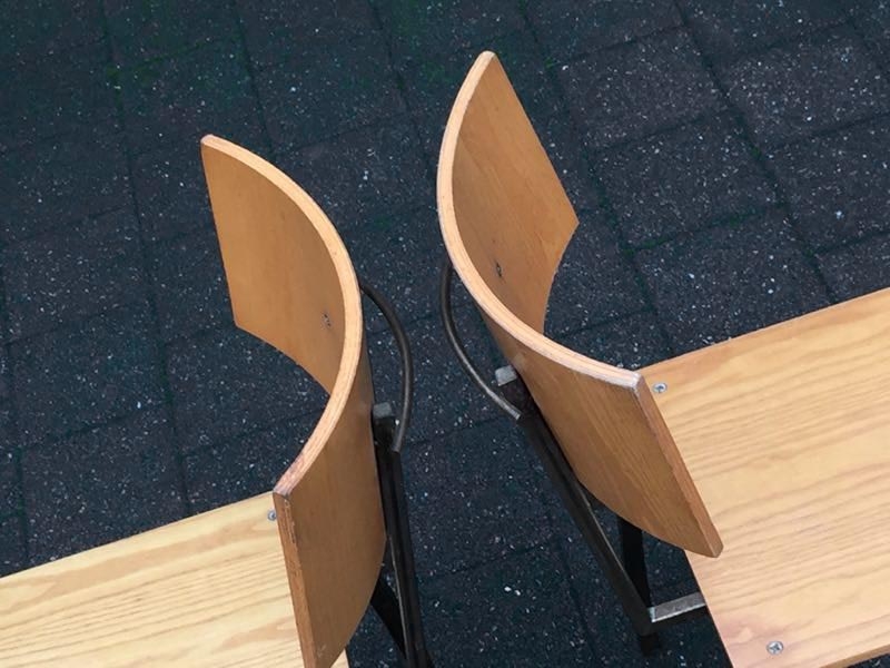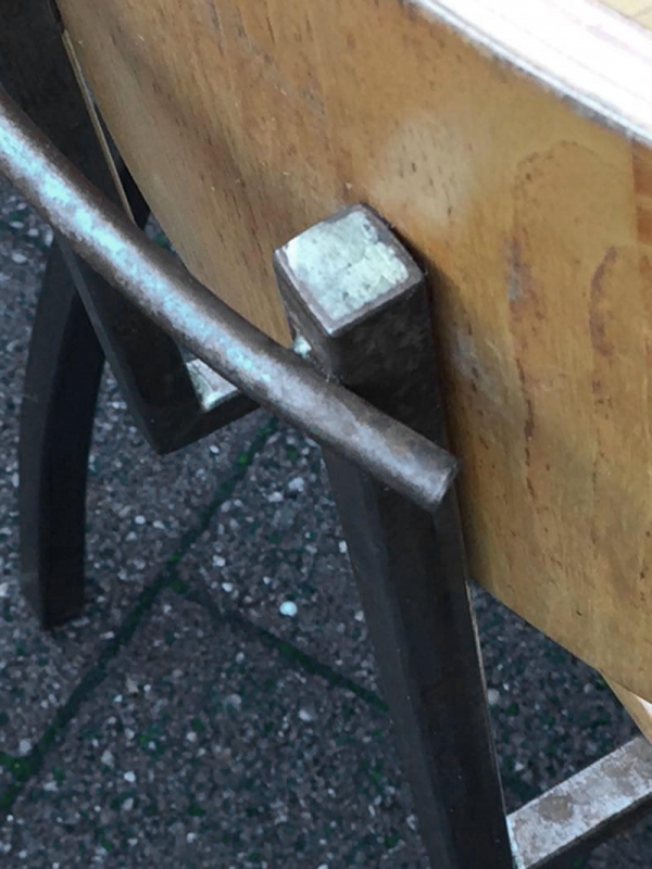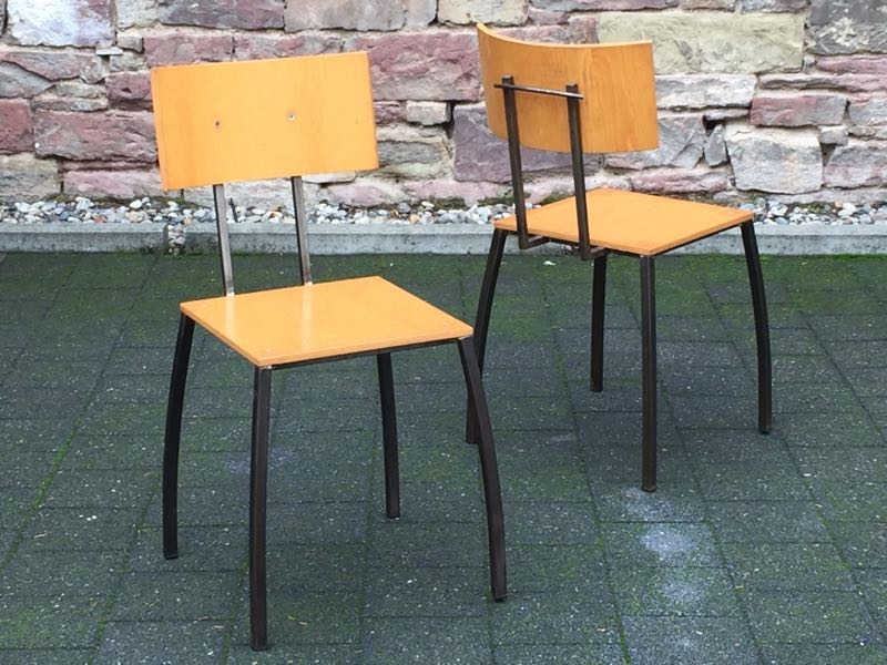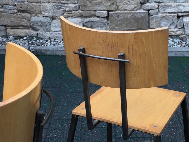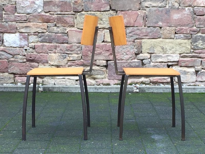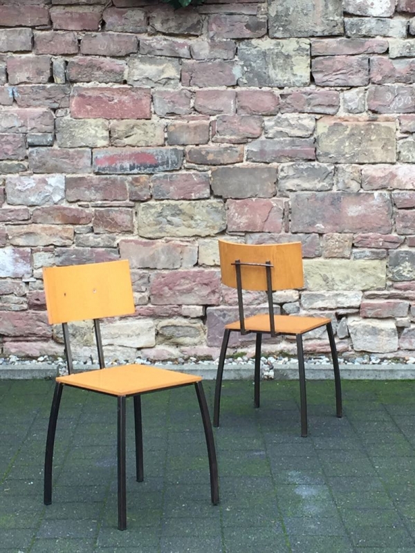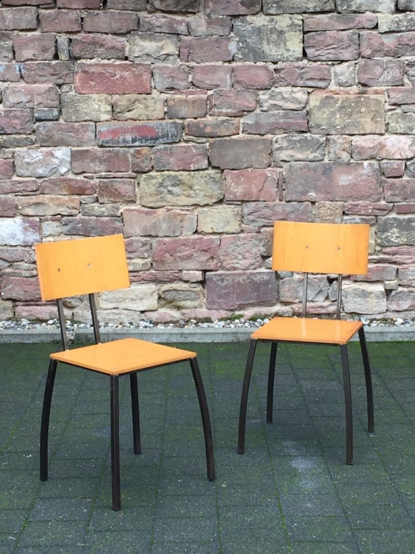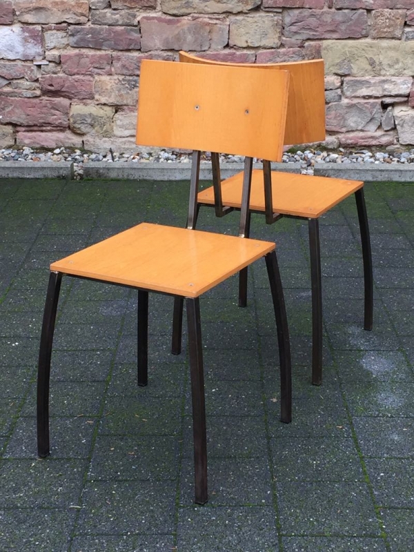 …..2 vintage SCHICHTHOLZ-STÜHLE, Eisengestell, 50er/60er Jahre…..