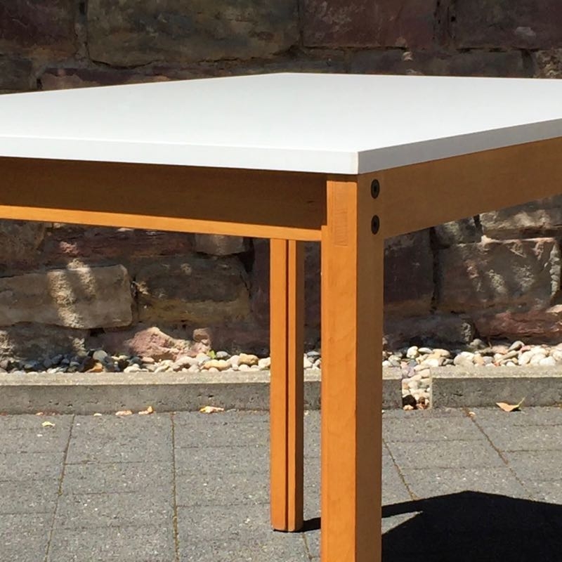 ….. vintage SIXTIES ESSTISCH „CANTO“, Schlapp-Möbel 60er Jahre….. Buche mit weiß beschichteter Platte HxBxT: cm guter vintage Zustand verkauft/sold