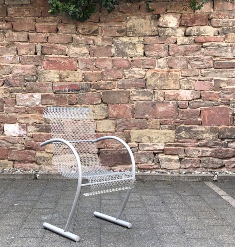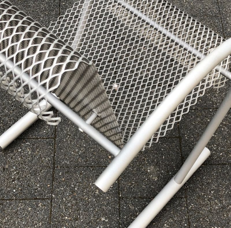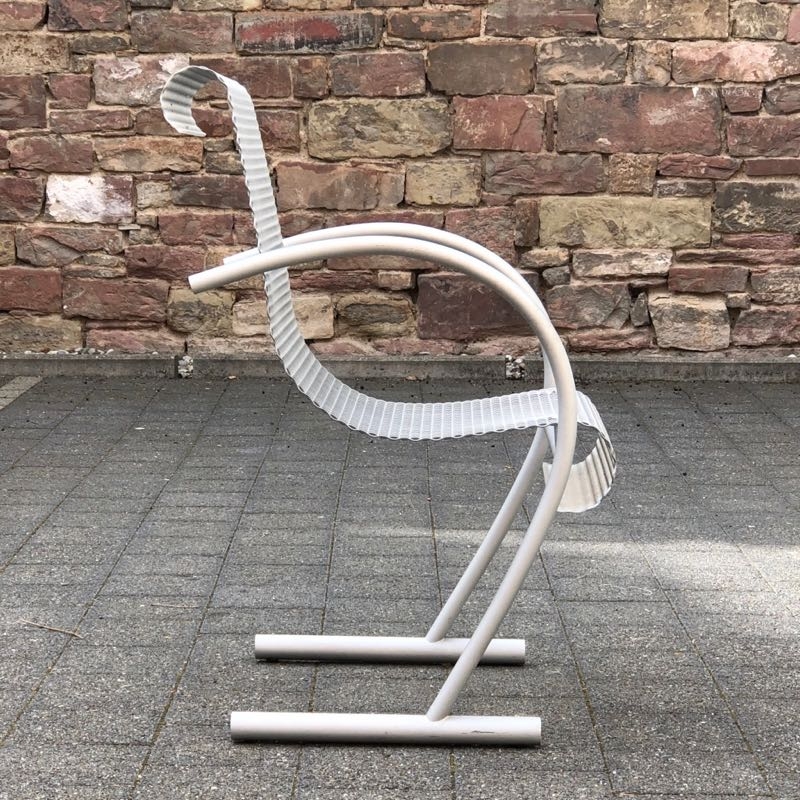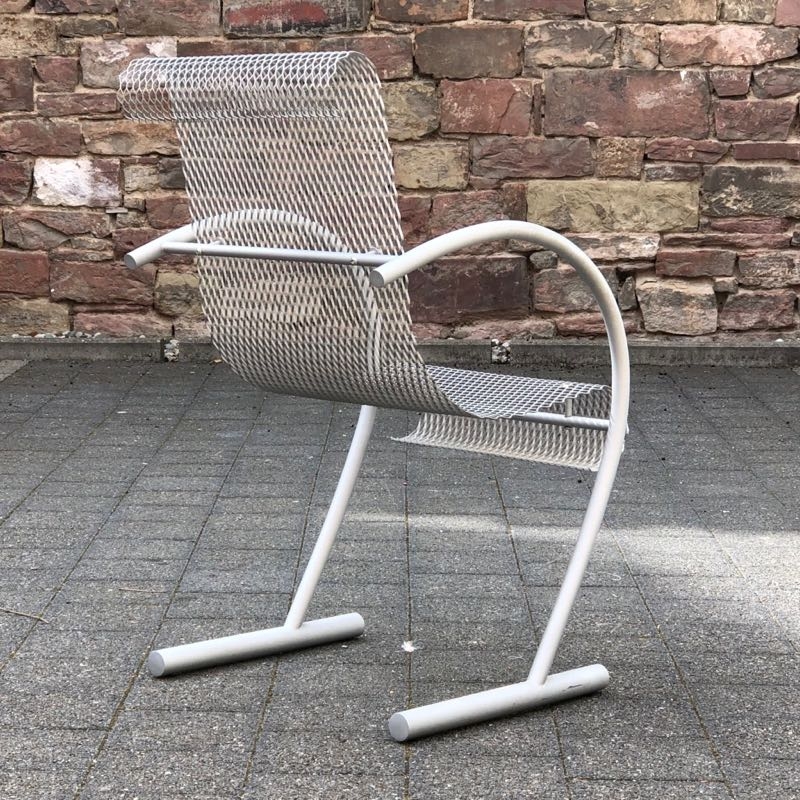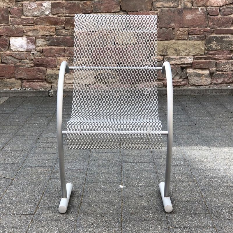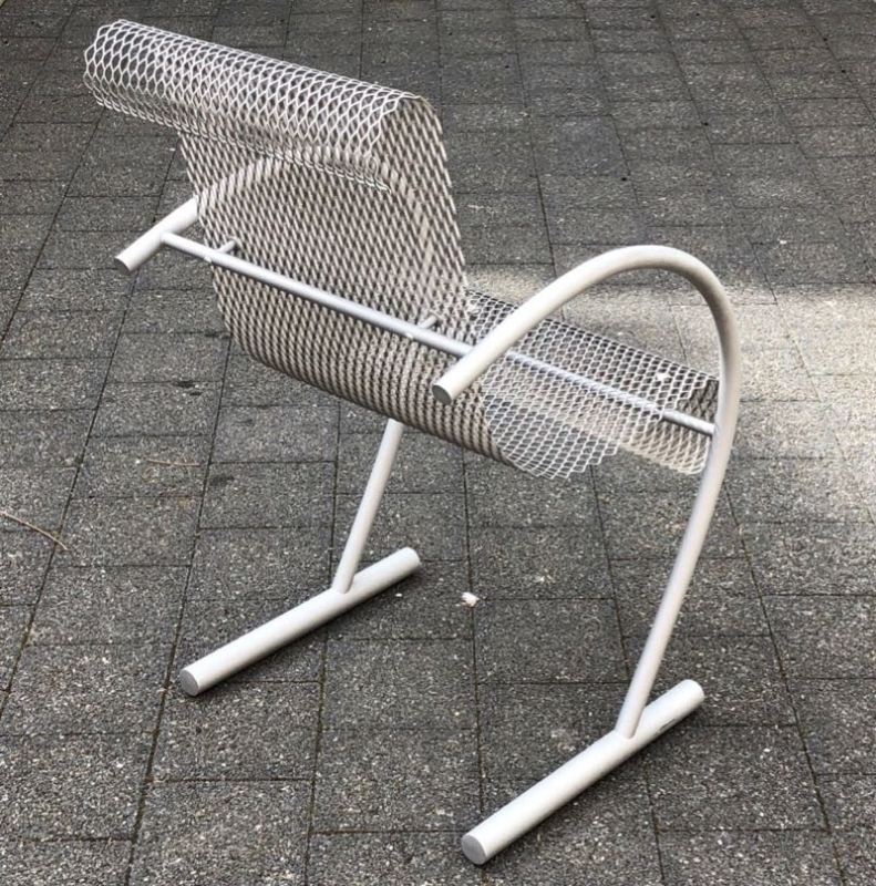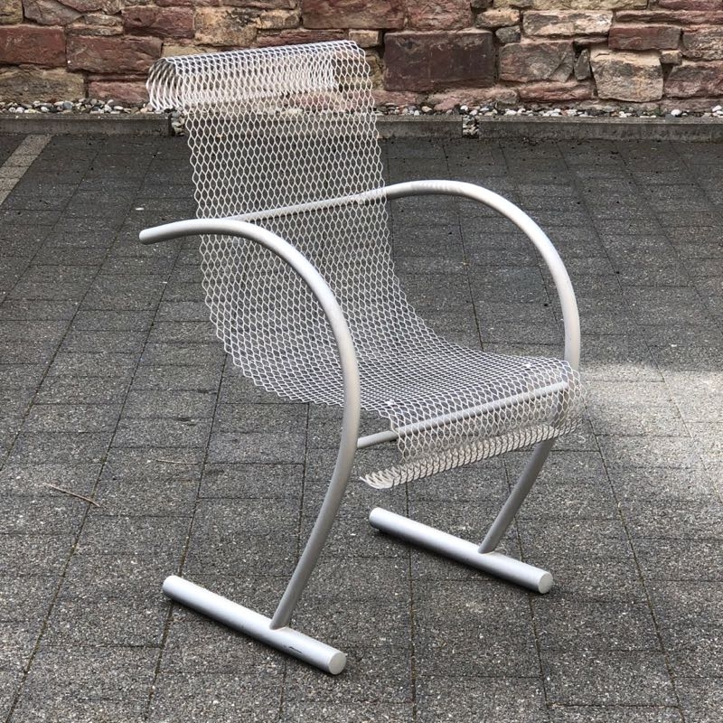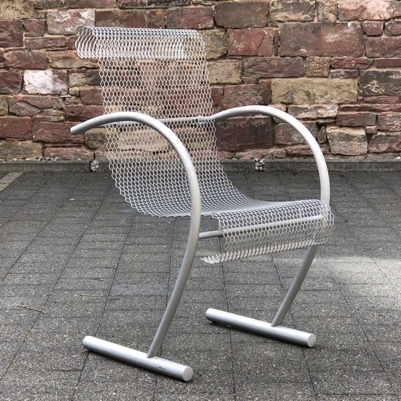 …..vintage Stuhl “SING SING SING”, XO Paris 80er Jahre….. Design: Shiro Kuramata eloxiertes Stahlrohr, Streckmetall HxBxT: 87.5 x 53 x 63.5cm bezeichnet mit Firmenmarke (XO) guter unbeschädigter Zustand verkauft/sold