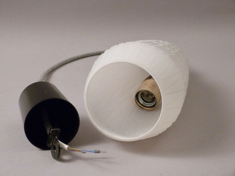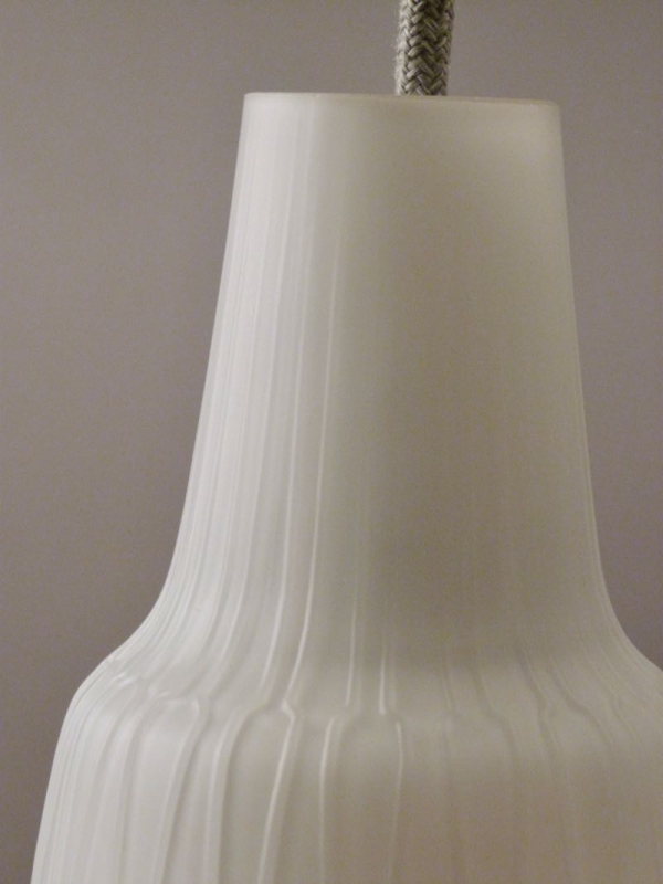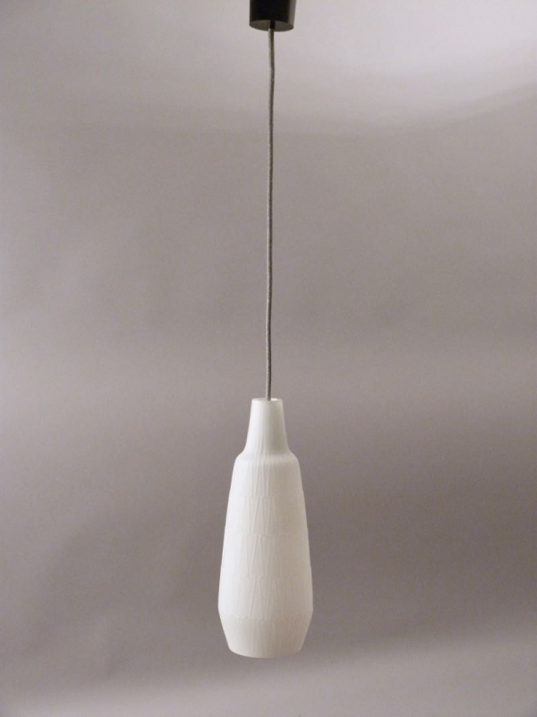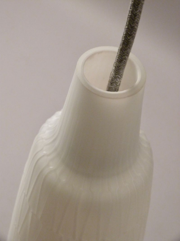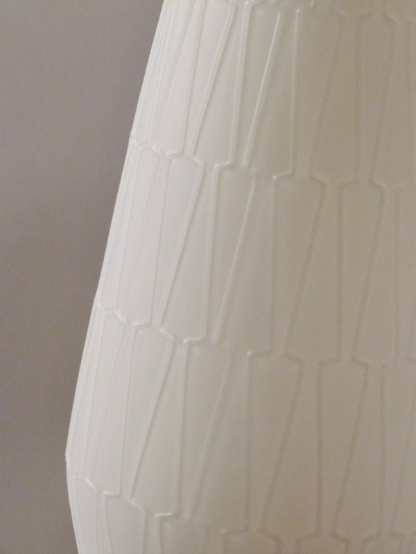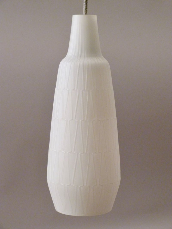 stylische Lampe mit weißem Opalin-Glasschirm, zeittypisches Reliefdekor