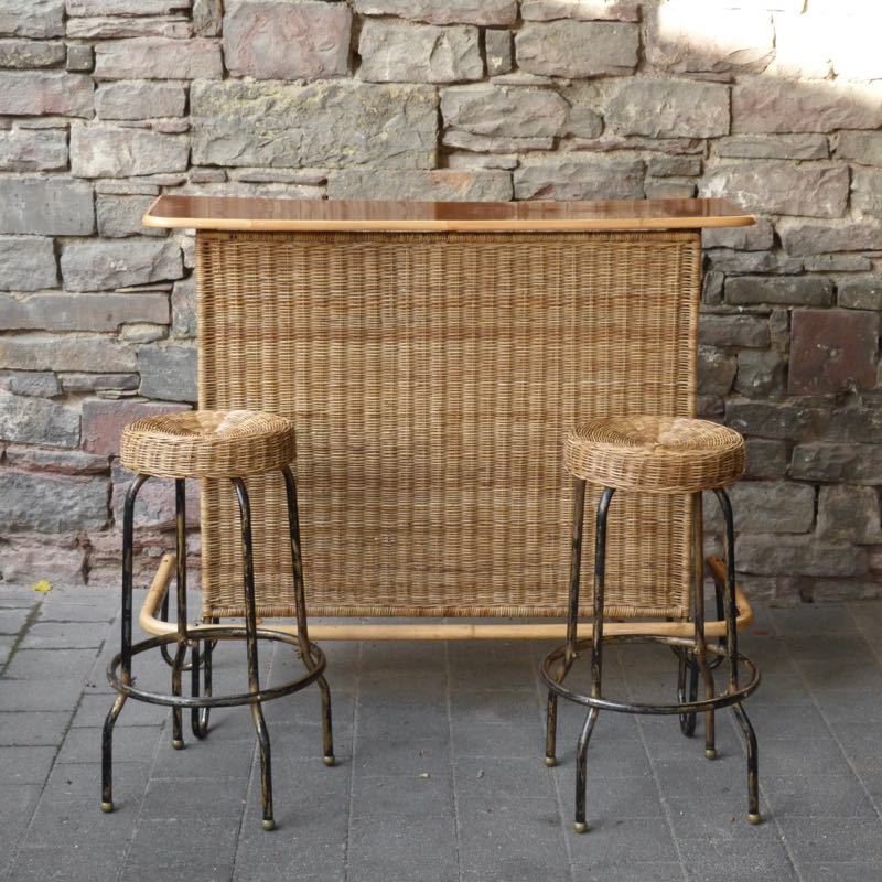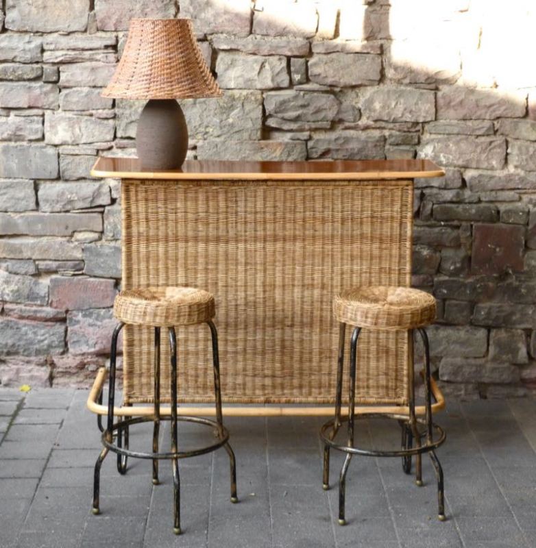 stylische Bar aus Eisen mit Geflecht aus Rattan